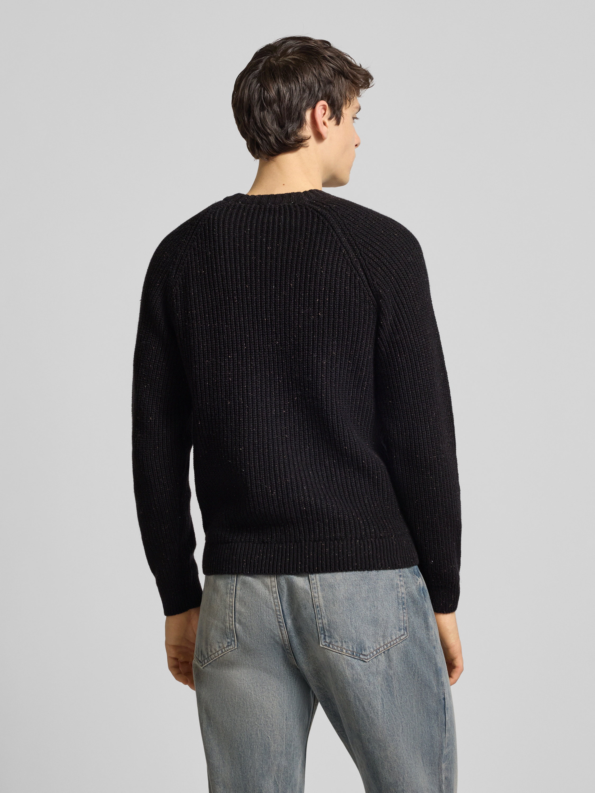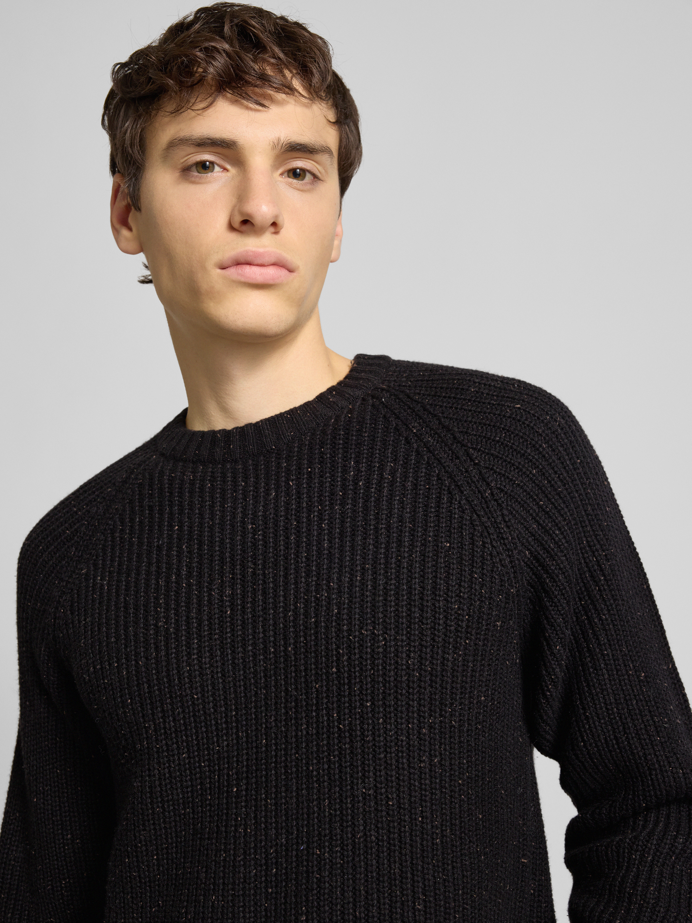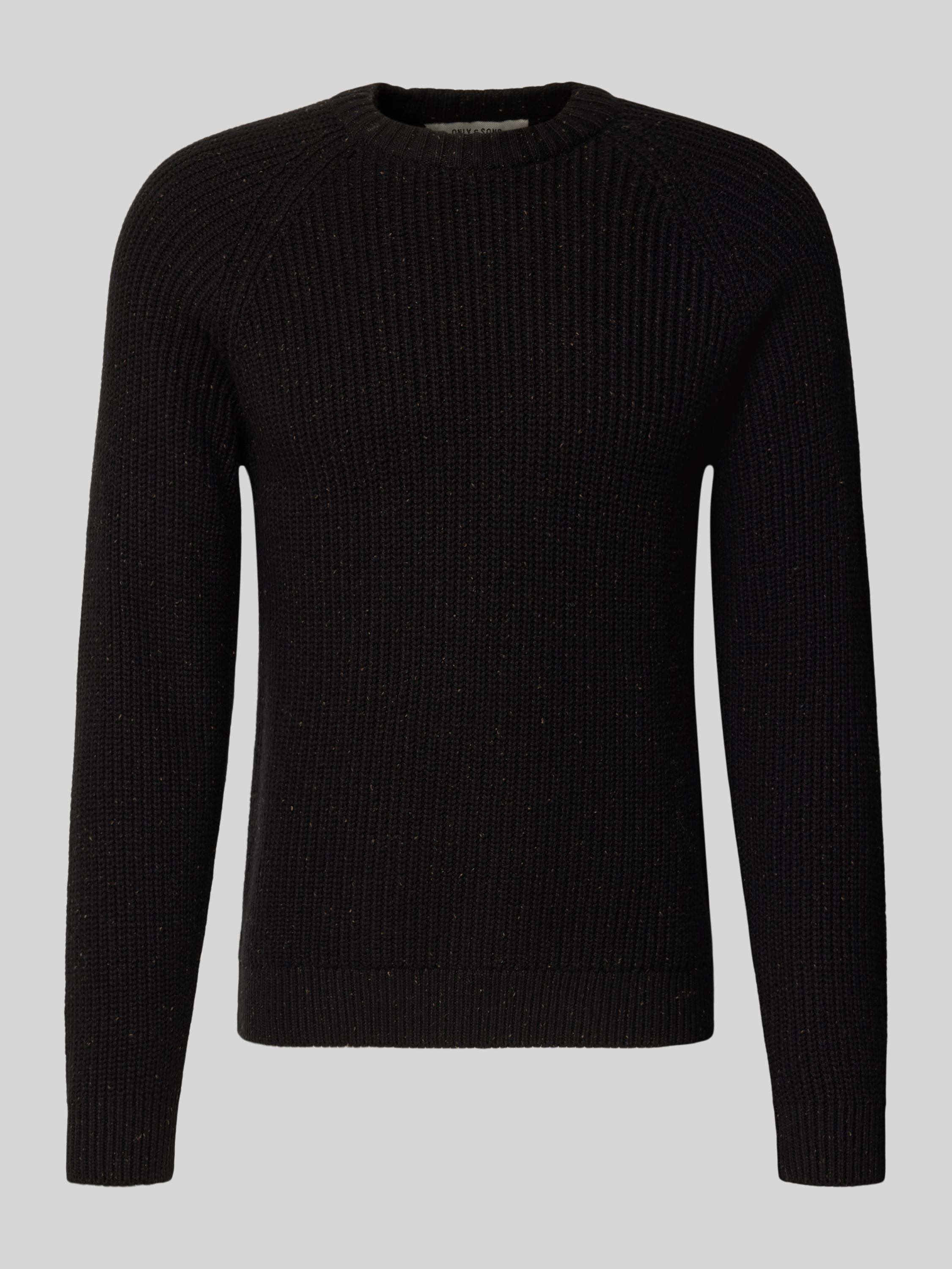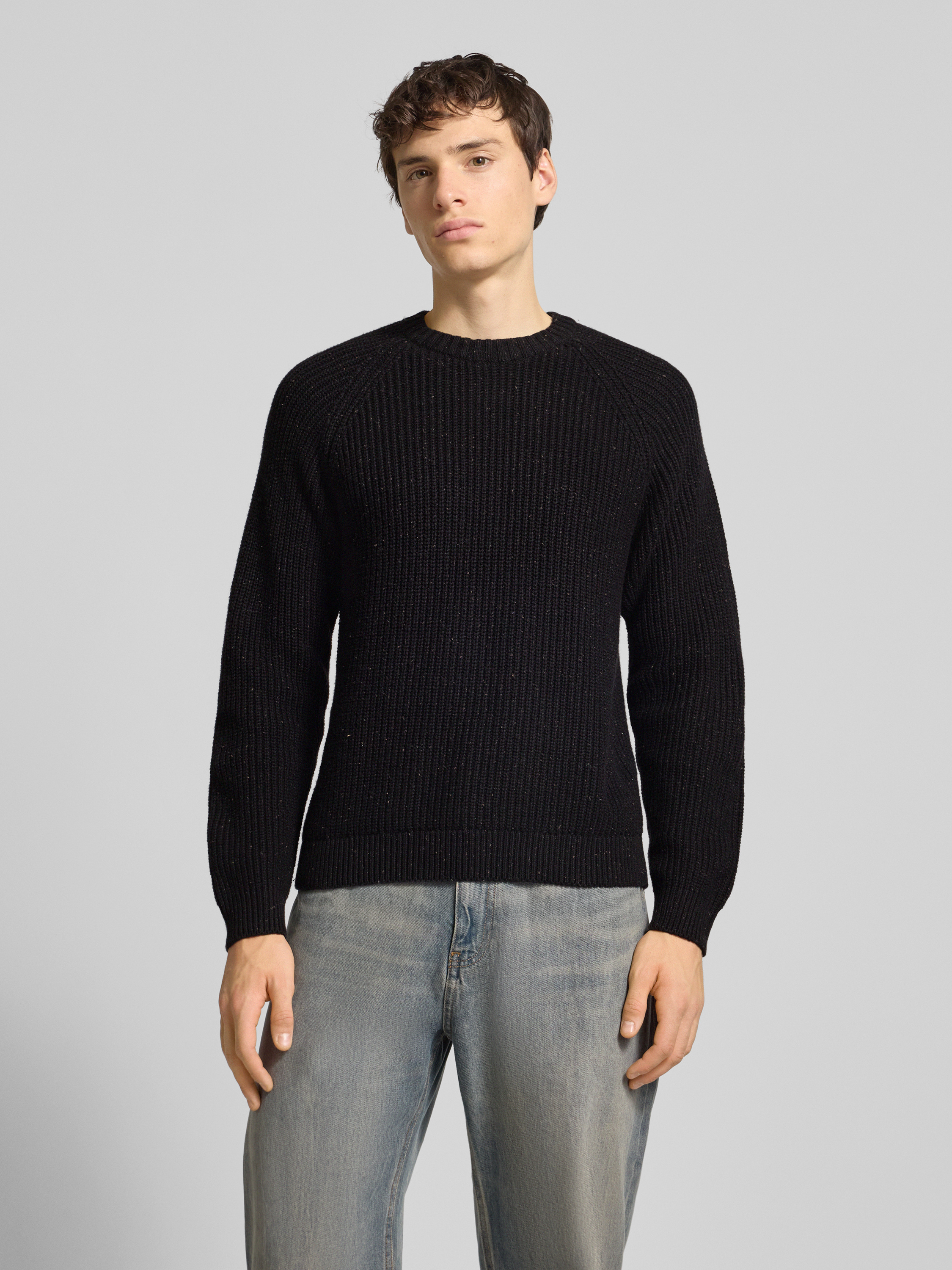 Regular fit gebreide pullover van katoenmix met wol, model 'LITUS' in zwart