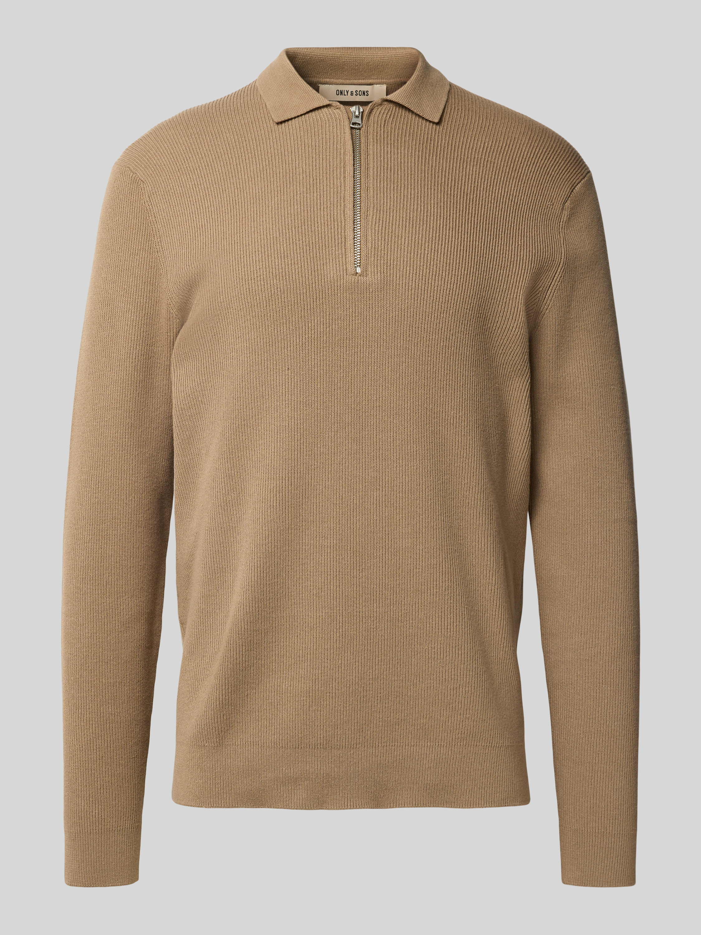Regular fit gebreide pullover van katoenmix, model 'PHIL' in lichtbruin