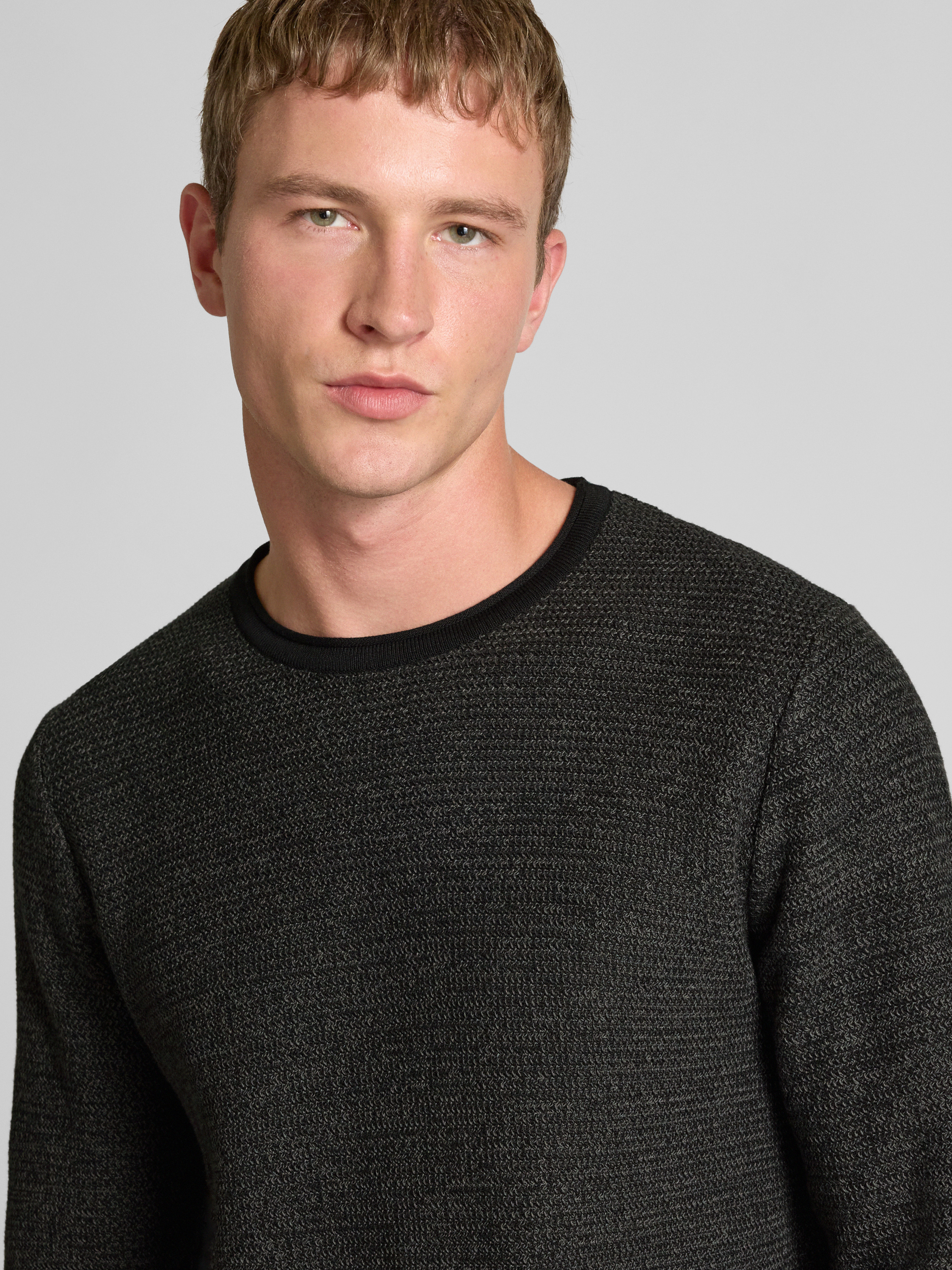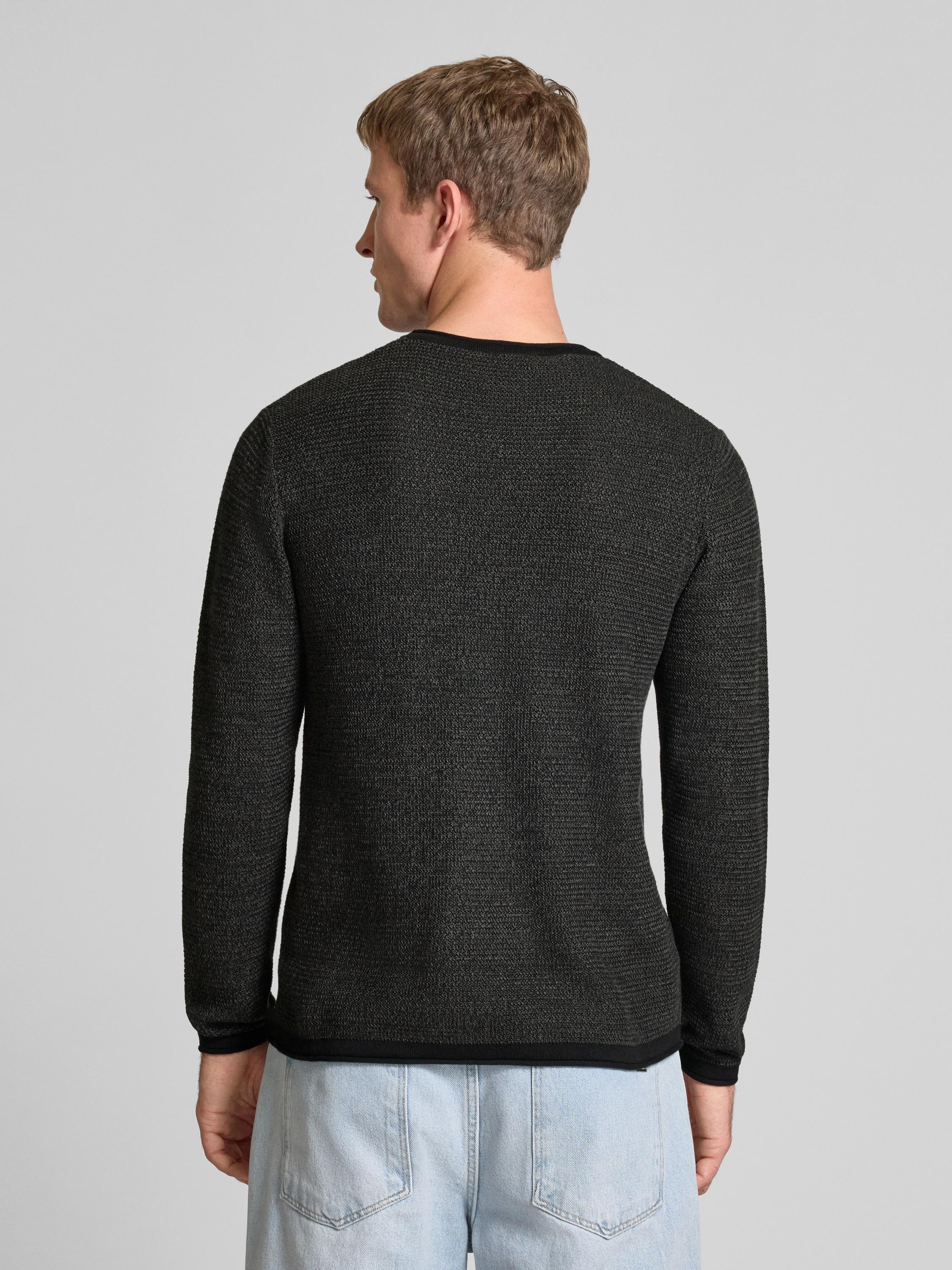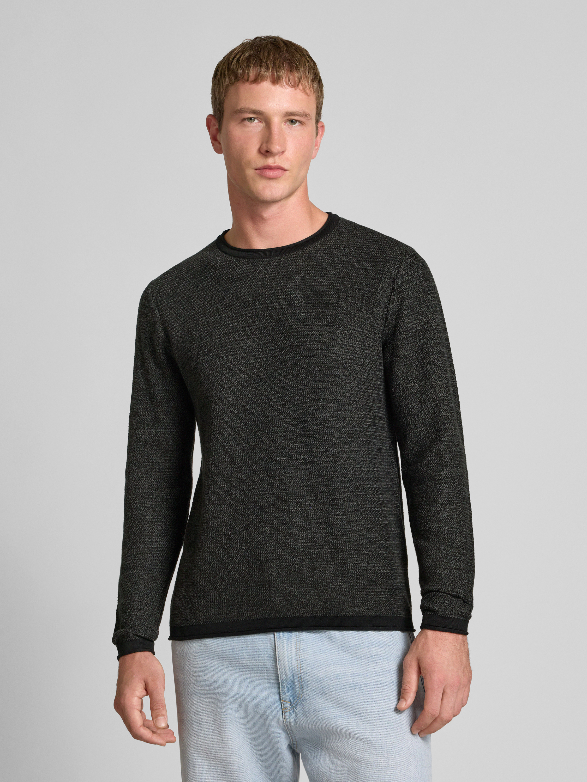 Regular fit gebreide pullover van puur katoen, model 'ERIC' in antraciet gemêleerd