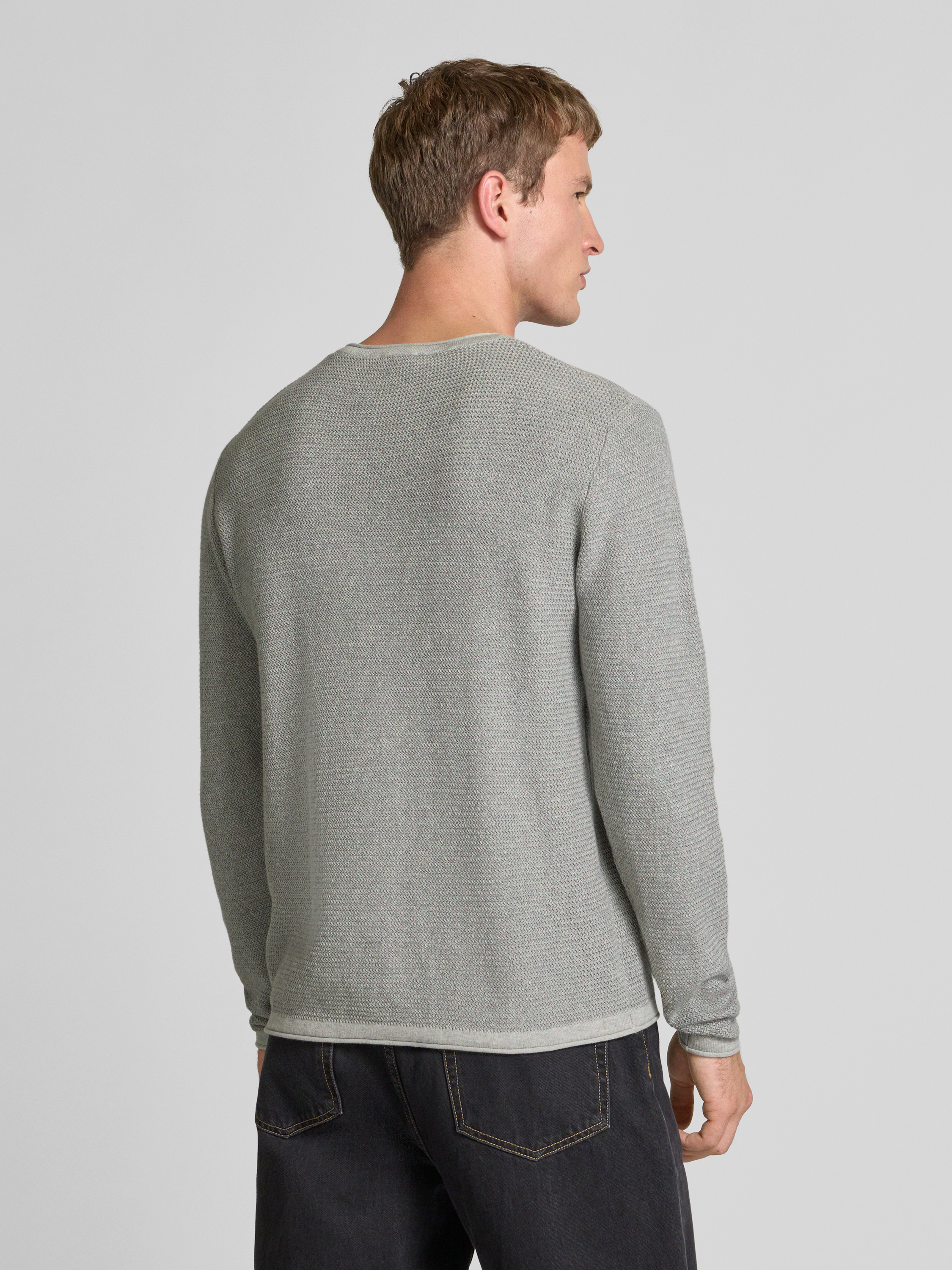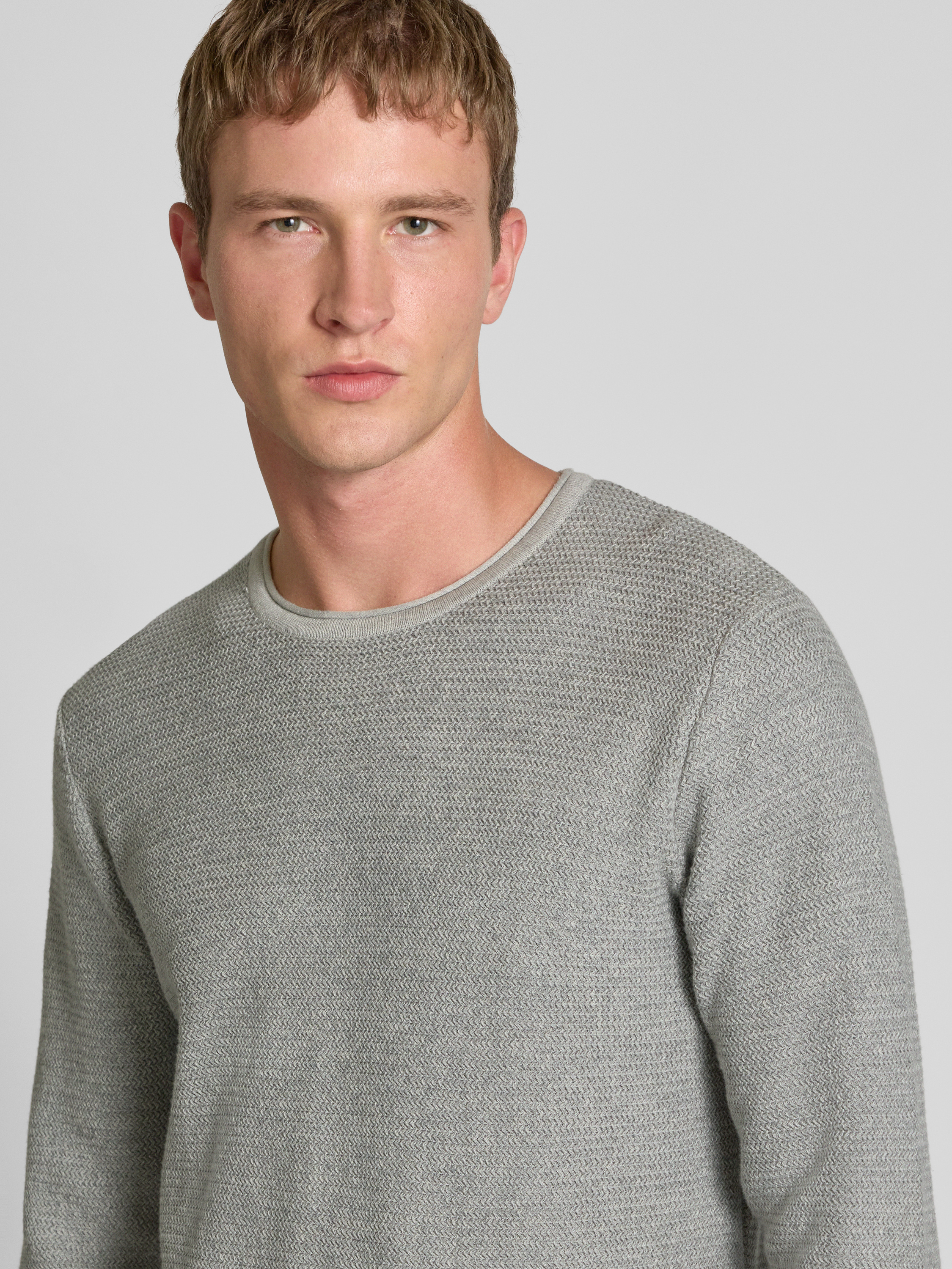 Regular fit gebreide pullover van puur katoen, model 'ERIC' in lichtgrijs gemêleerd