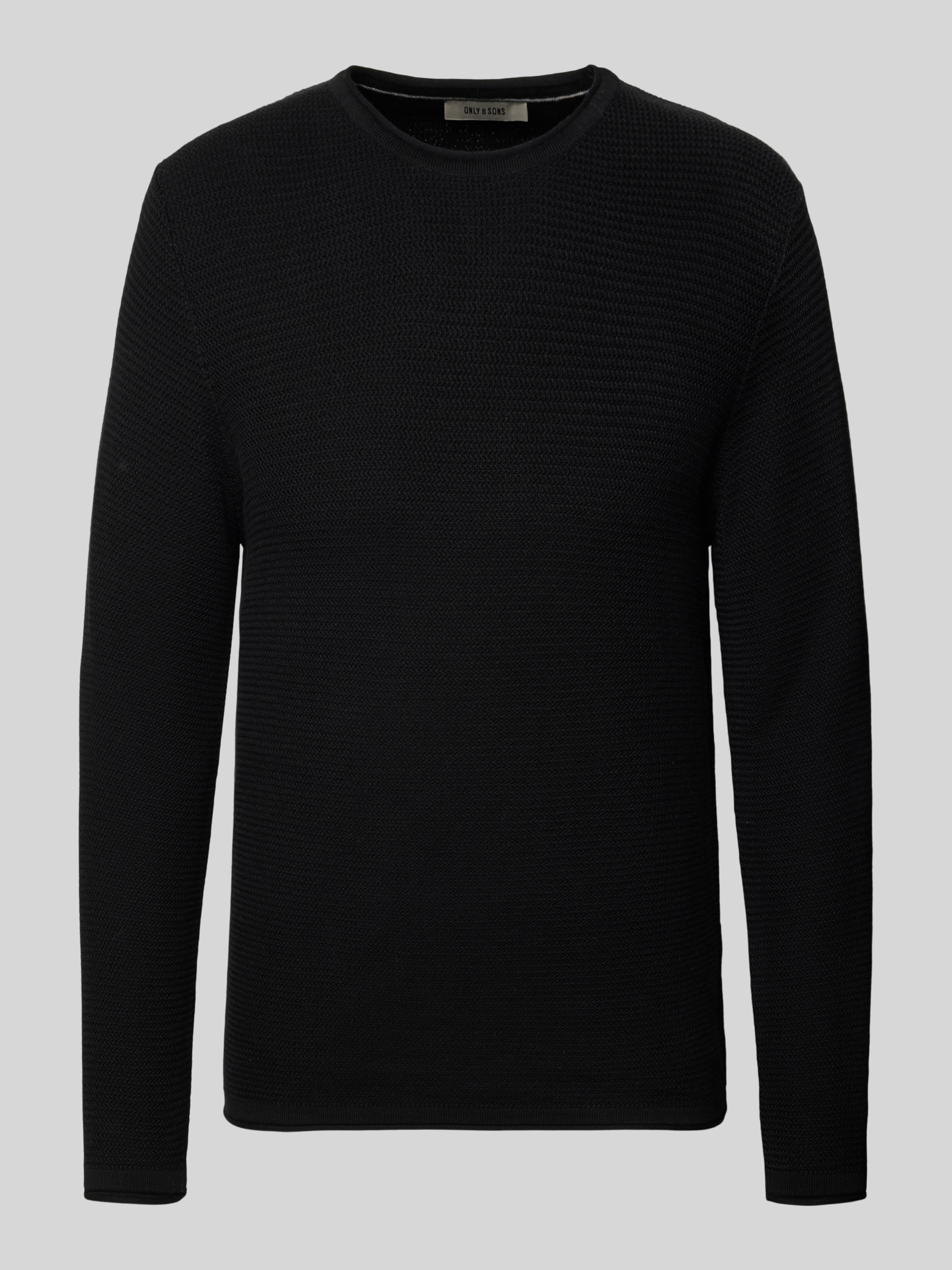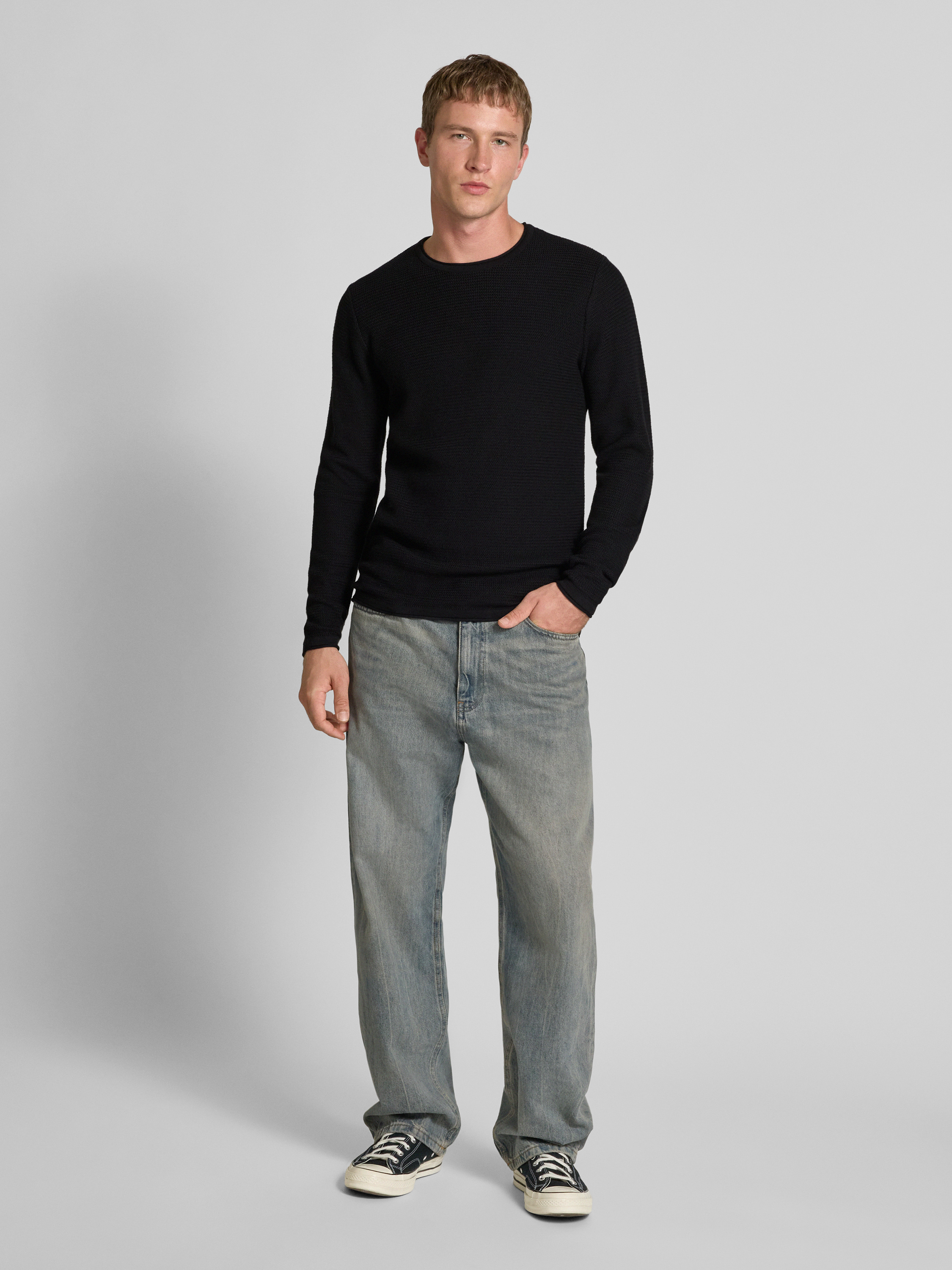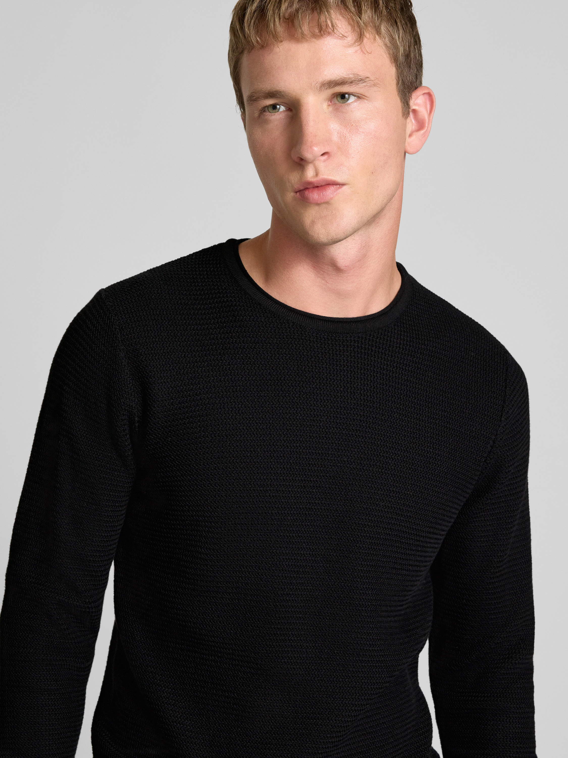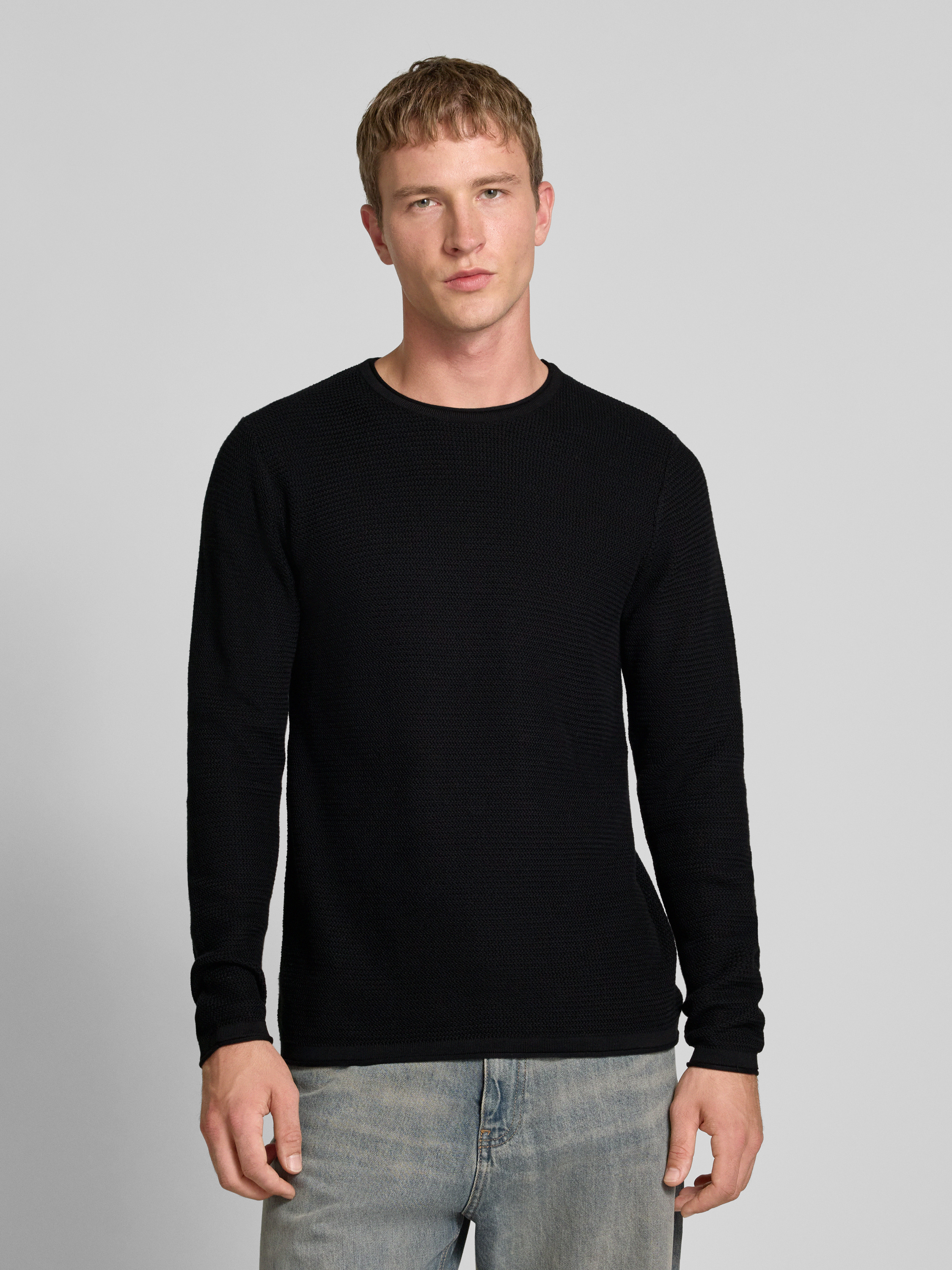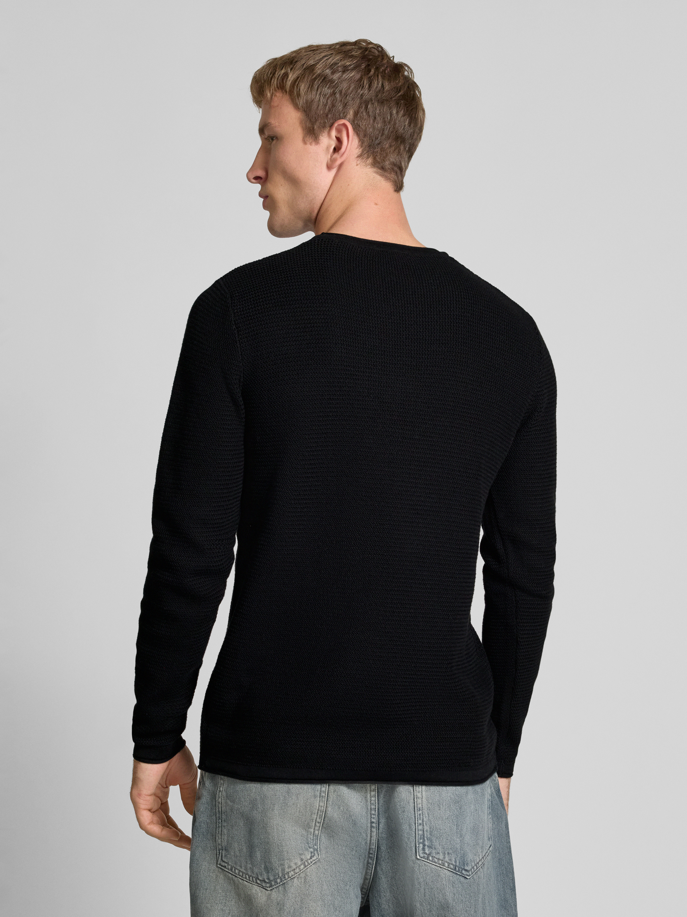 Regular fit gebreide pullover van puur katoen, model 'ERIC' in zwart