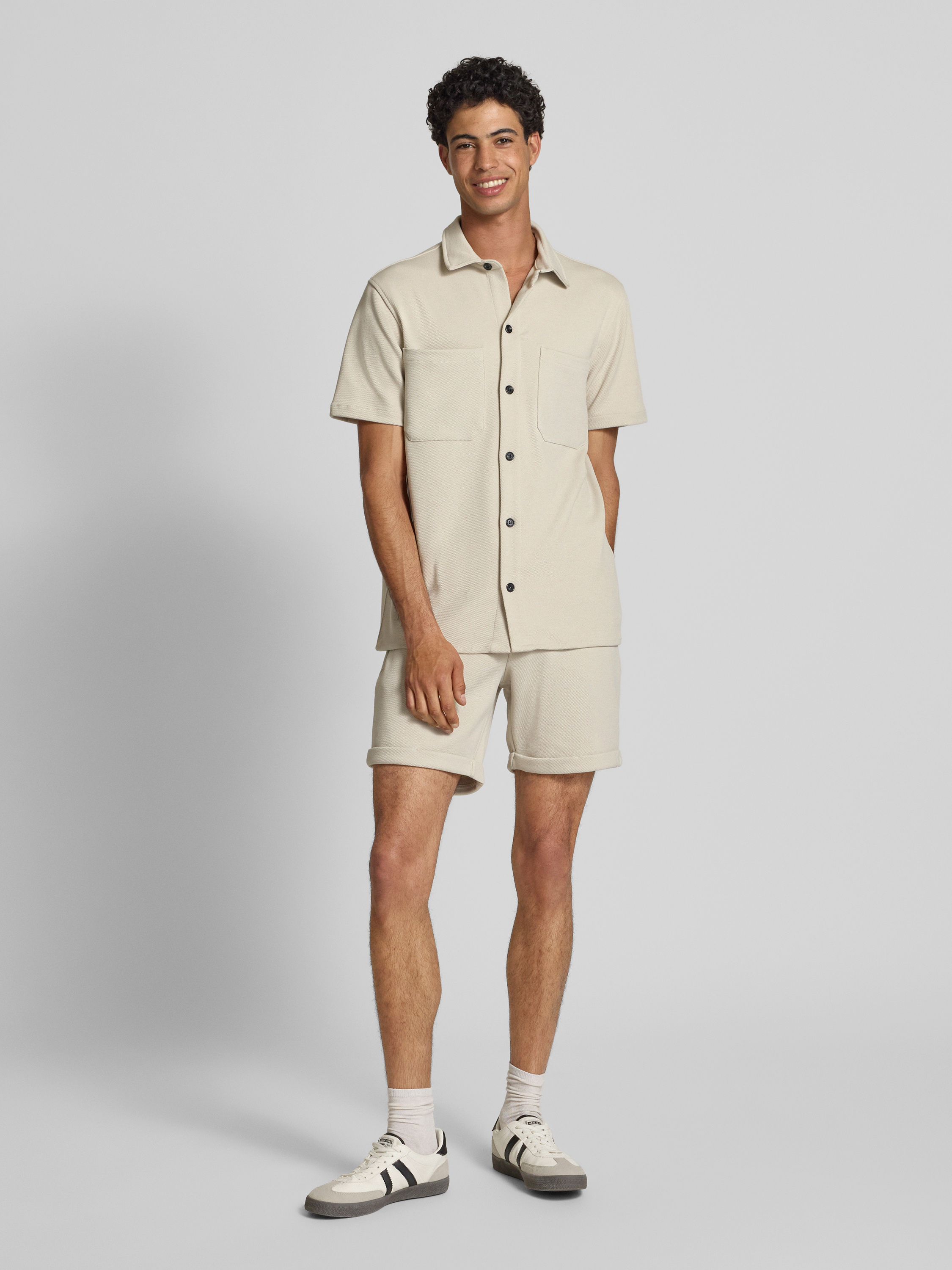 Regular fit overhemdjack met licht structuurmotief, model 'NEWKODYL' in offwhite