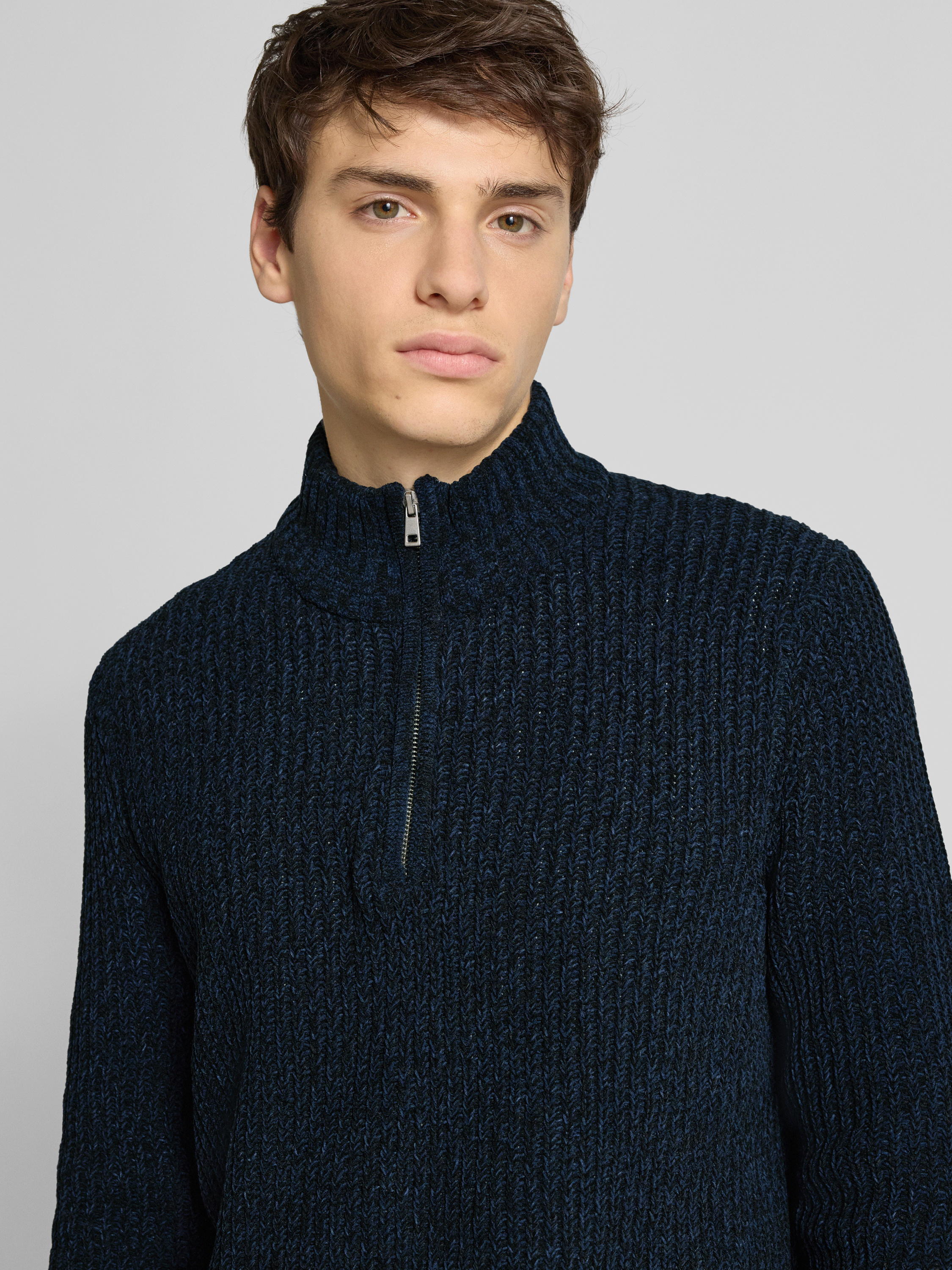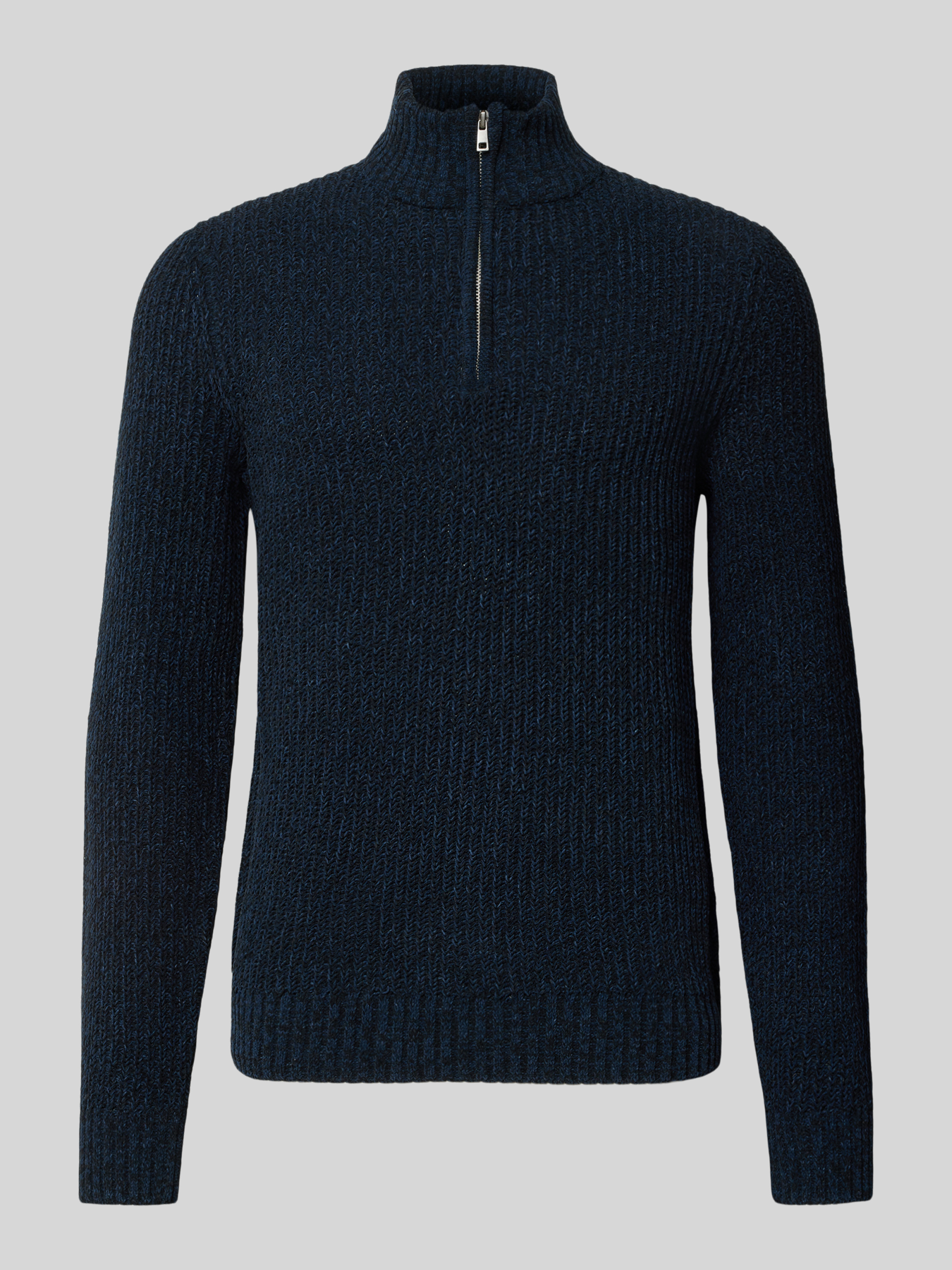 Regular fit schipperstrui met korte ritssluiting, model 'JOIN' in marineblauw