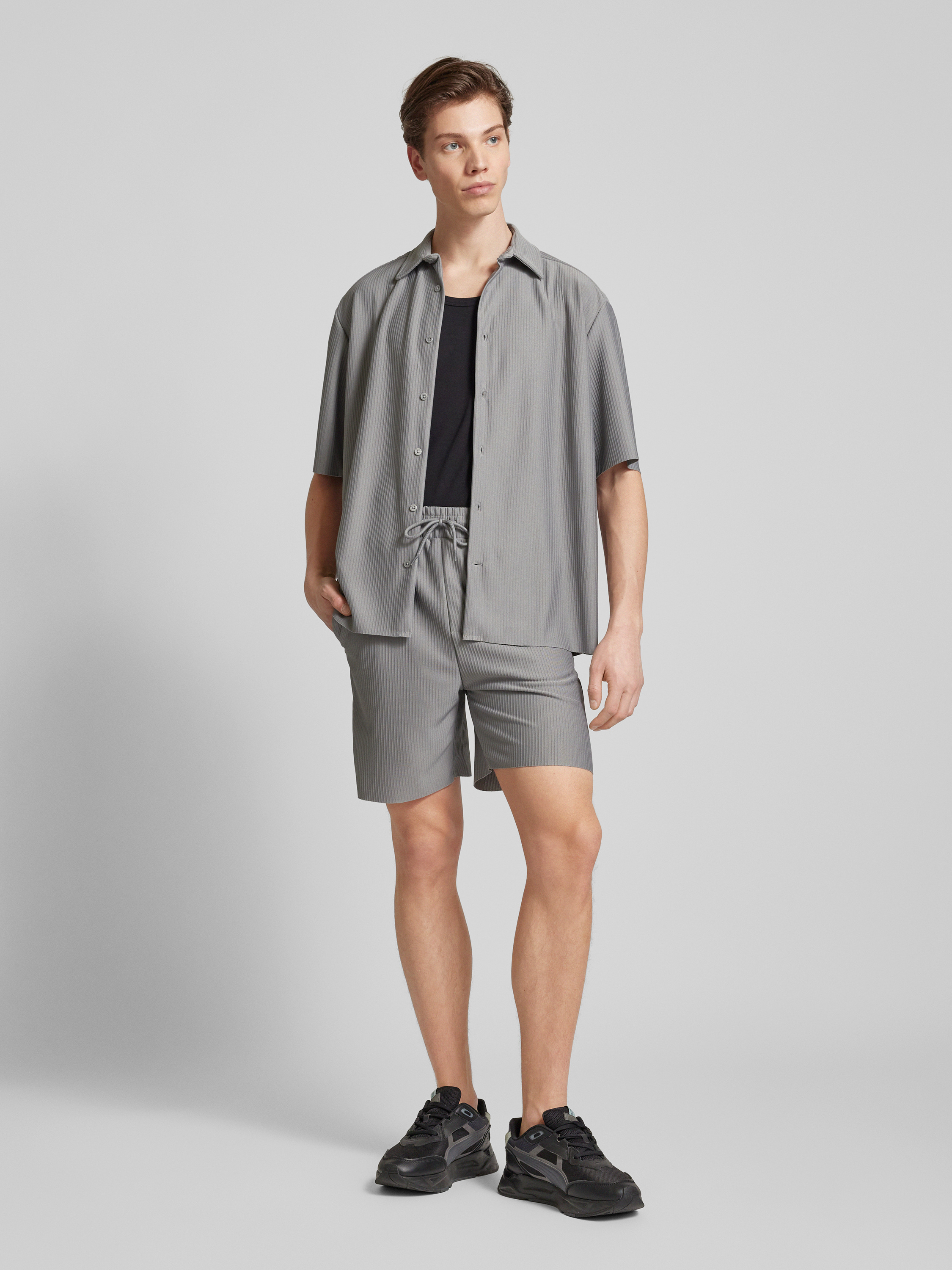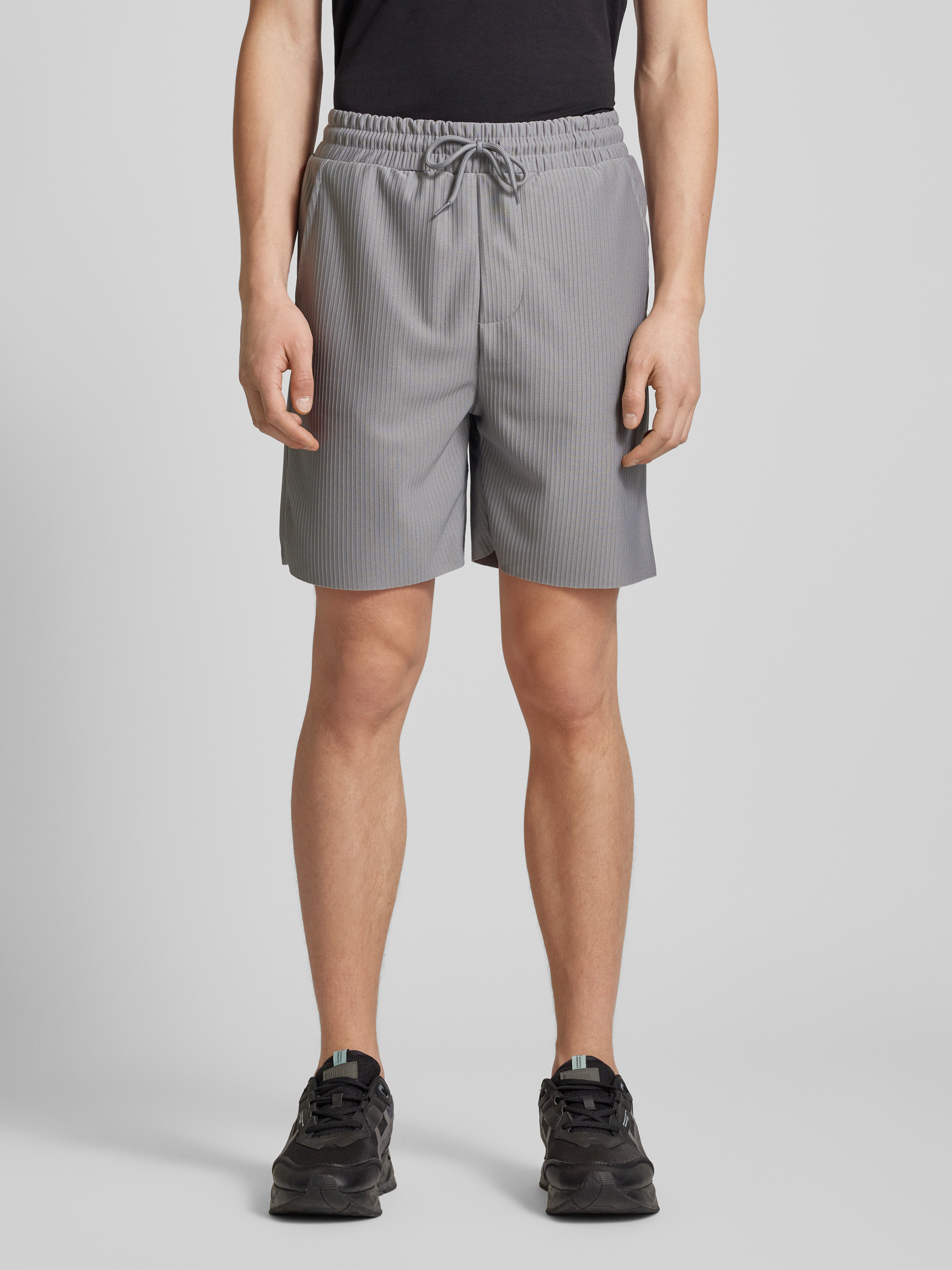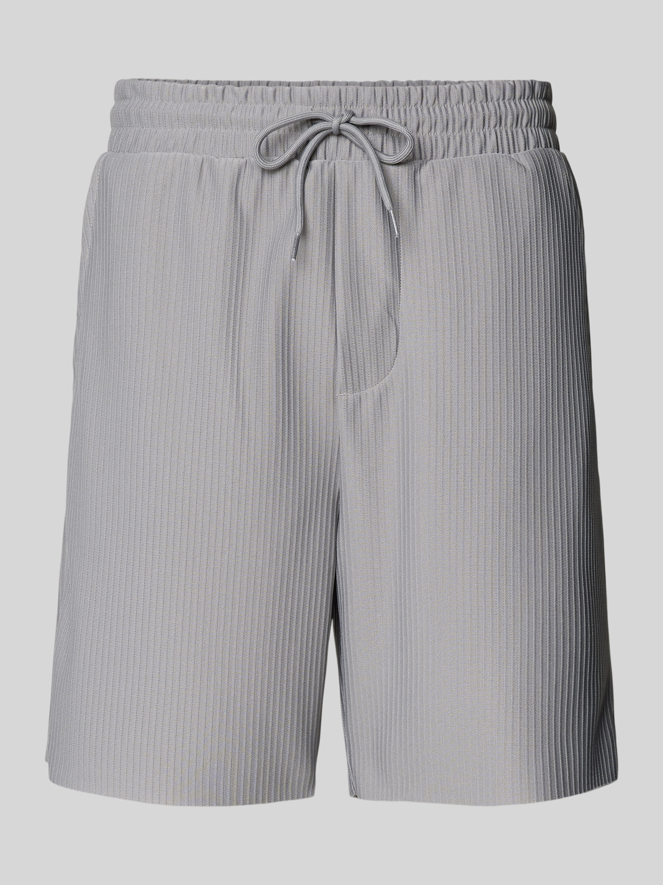 Regular fit sweatshorts met fijnrib, model 'DRUM LIFE' in lichtgrijs