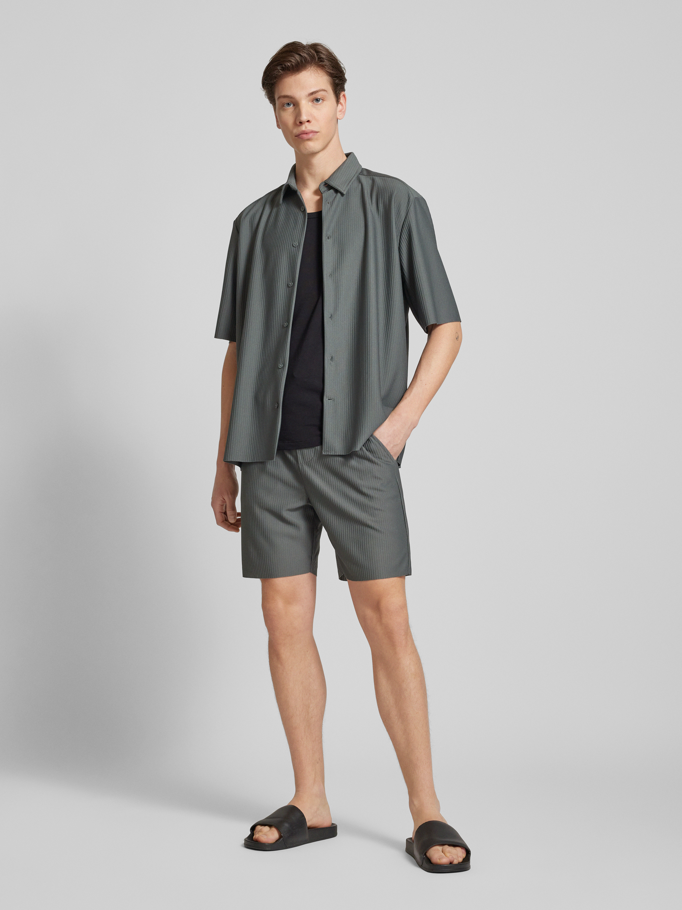 Regular fit sweatshorts met fijnrib, model 'DRUM LIFE' in petrol
