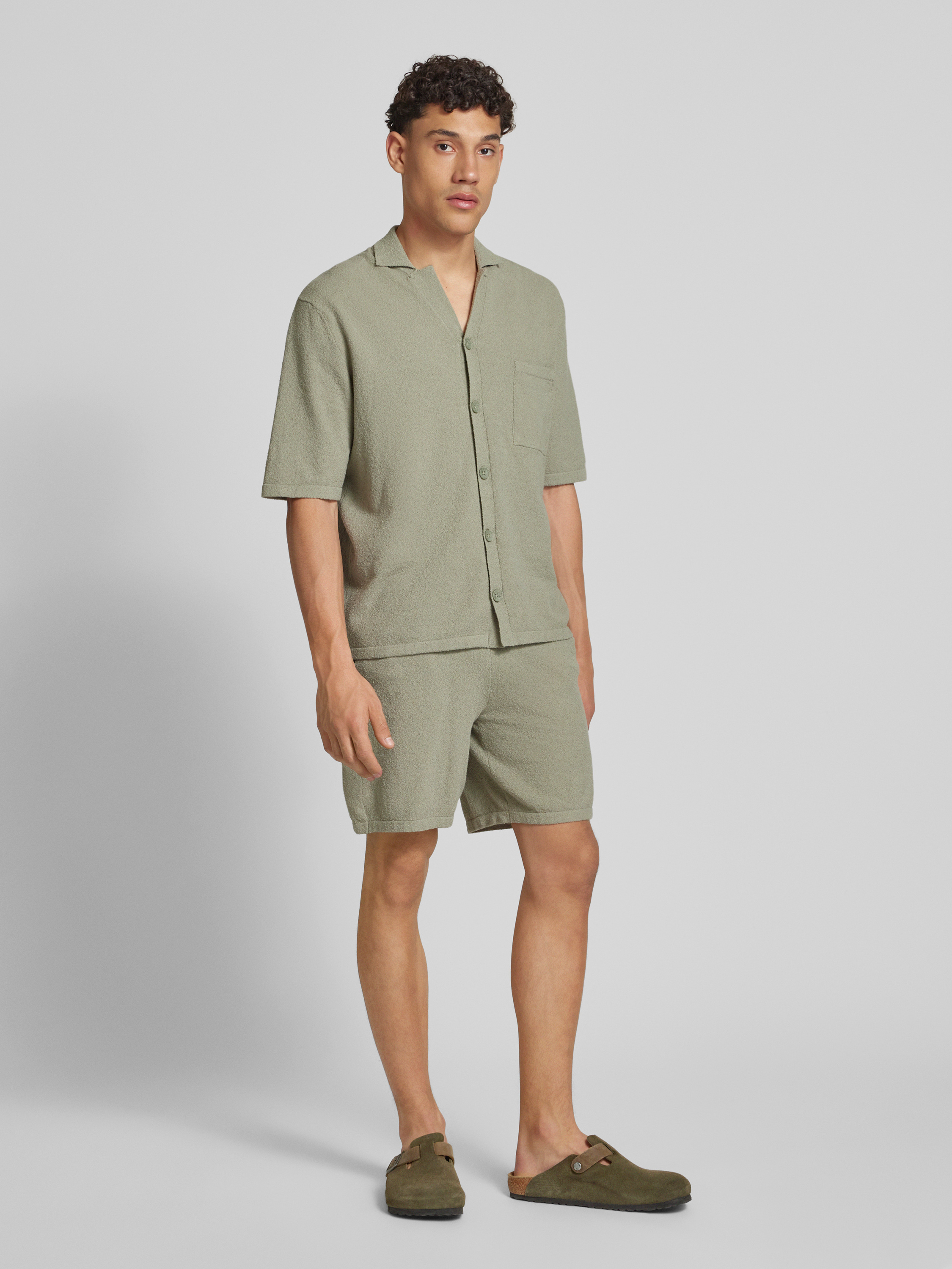 Regular fit sweatshorts met structuurmotief, model 'FRANKIE' in lichtgroen