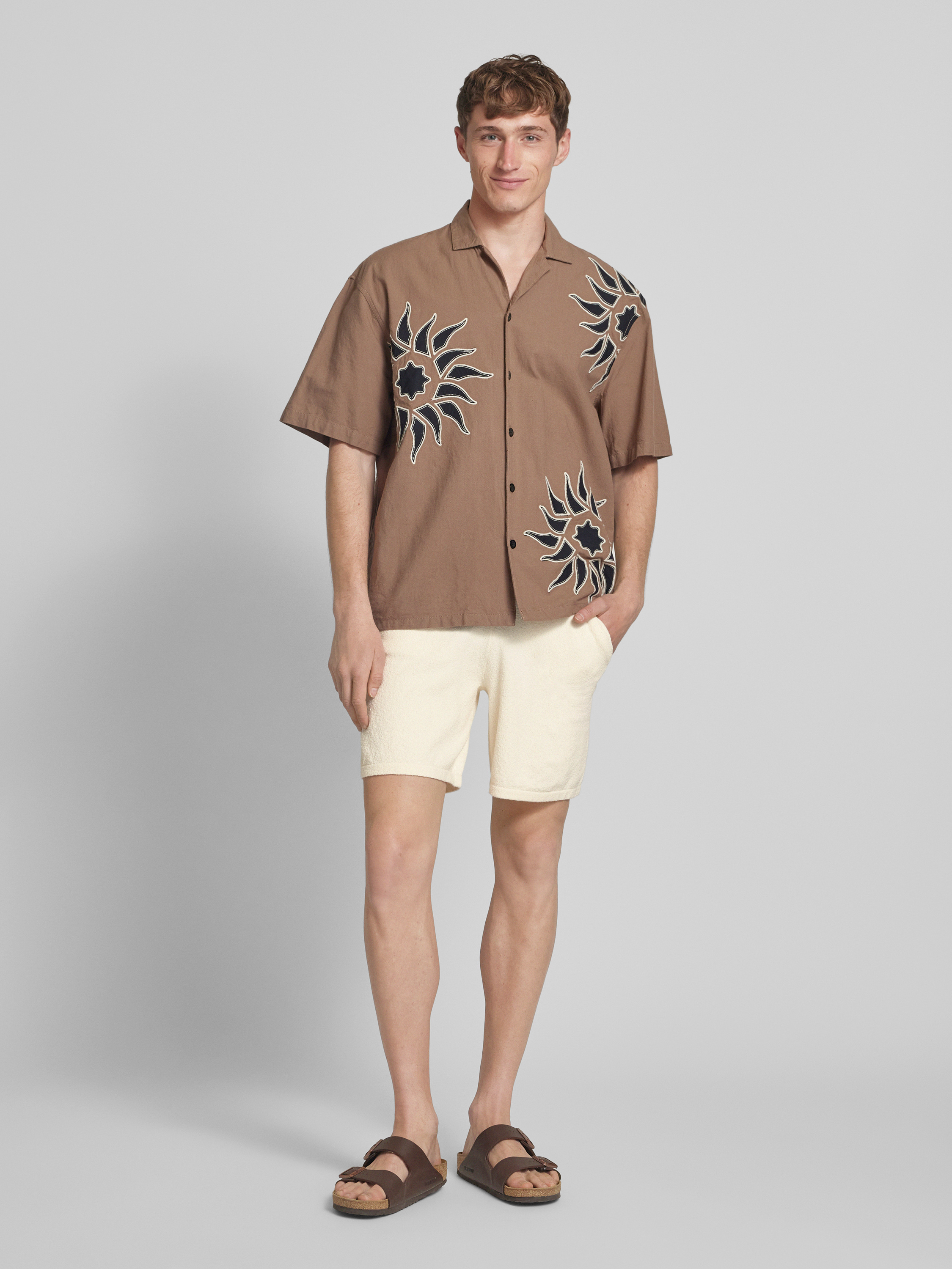 Regular fit sweatshorts met structuurmotief, model 'FRANKIE' in offwhite