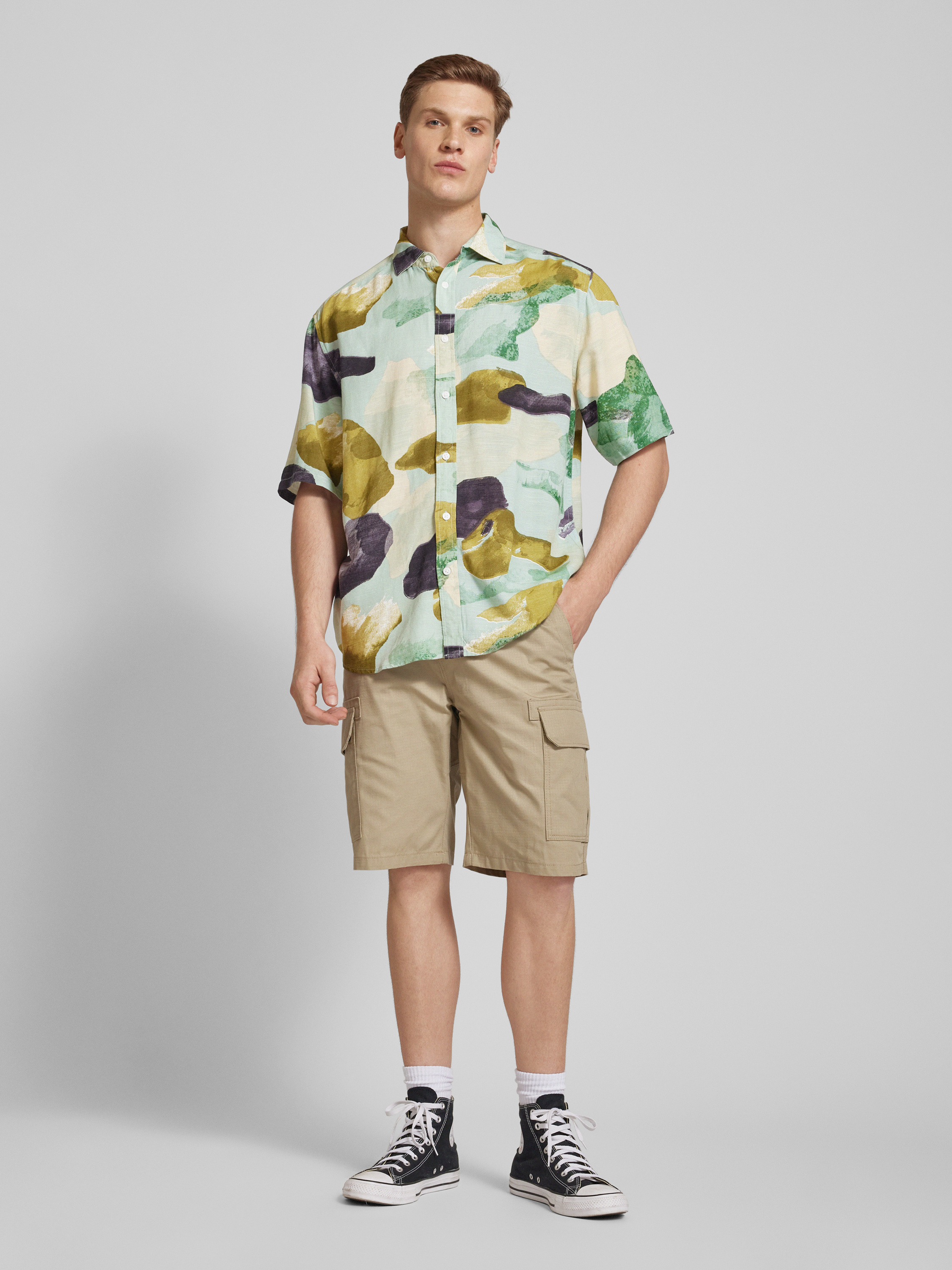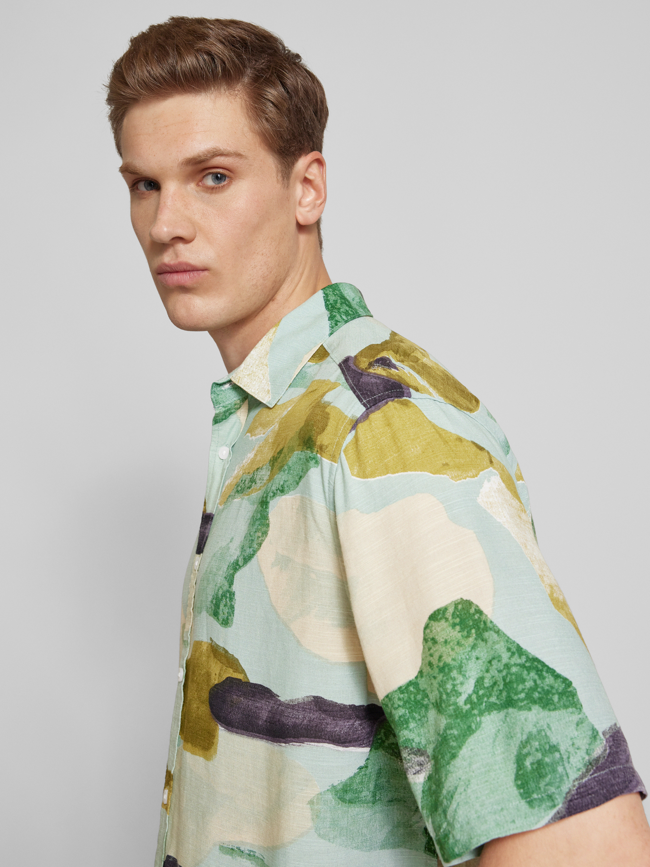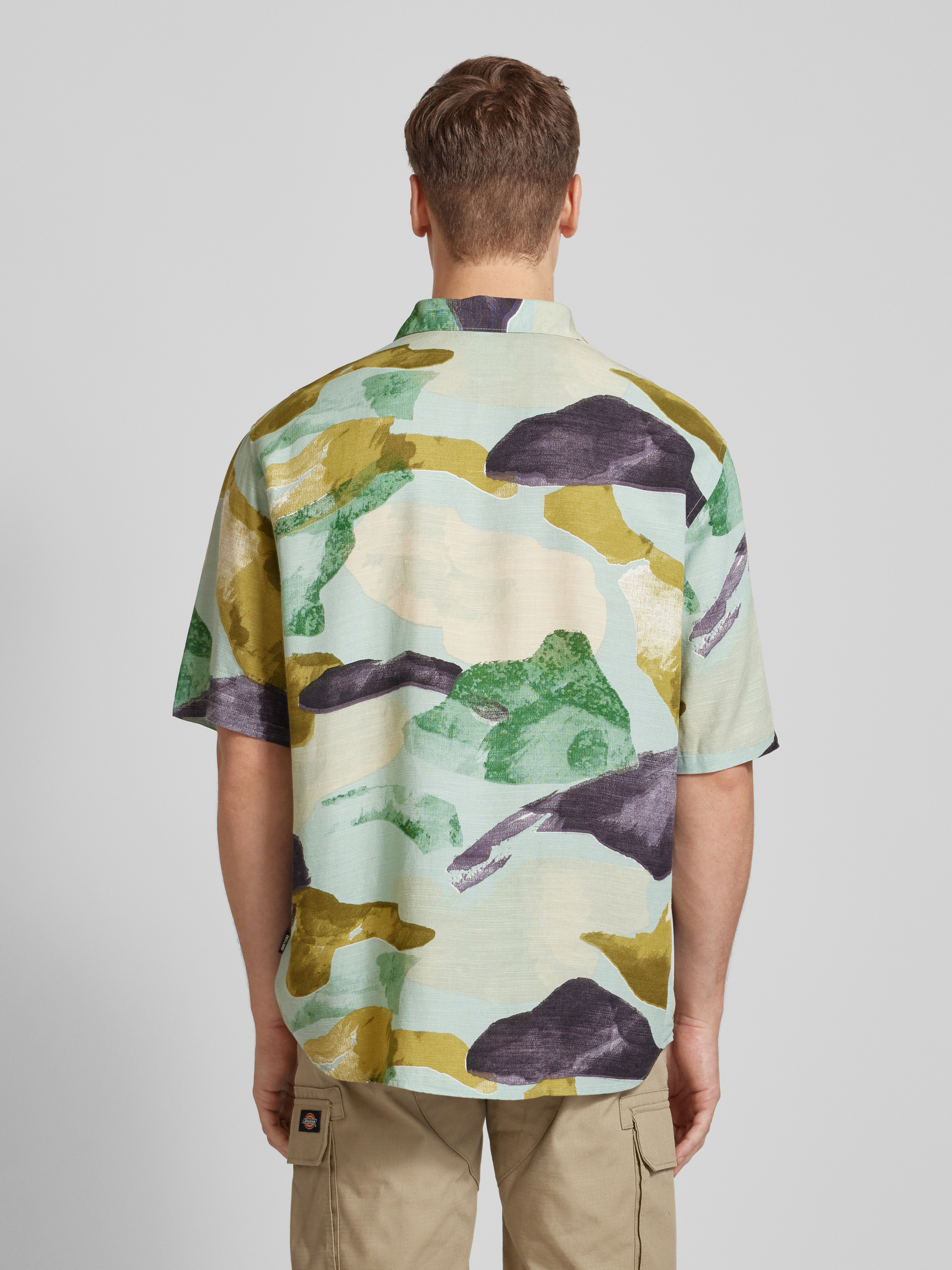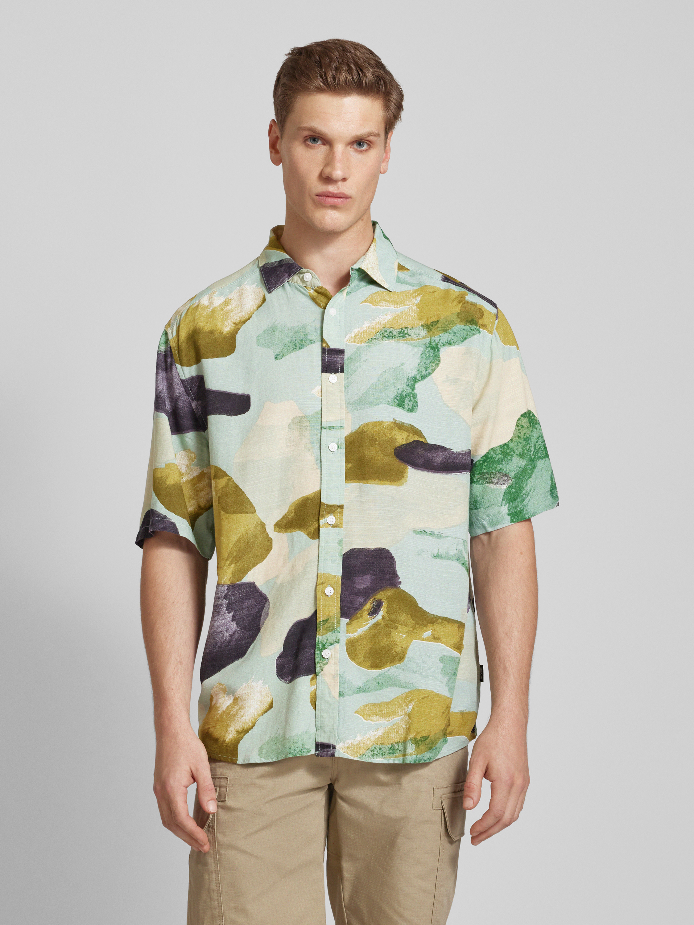 Regular fit vrijetijdsoverhemd met all-over motief, model 'BUD' in lindegroen