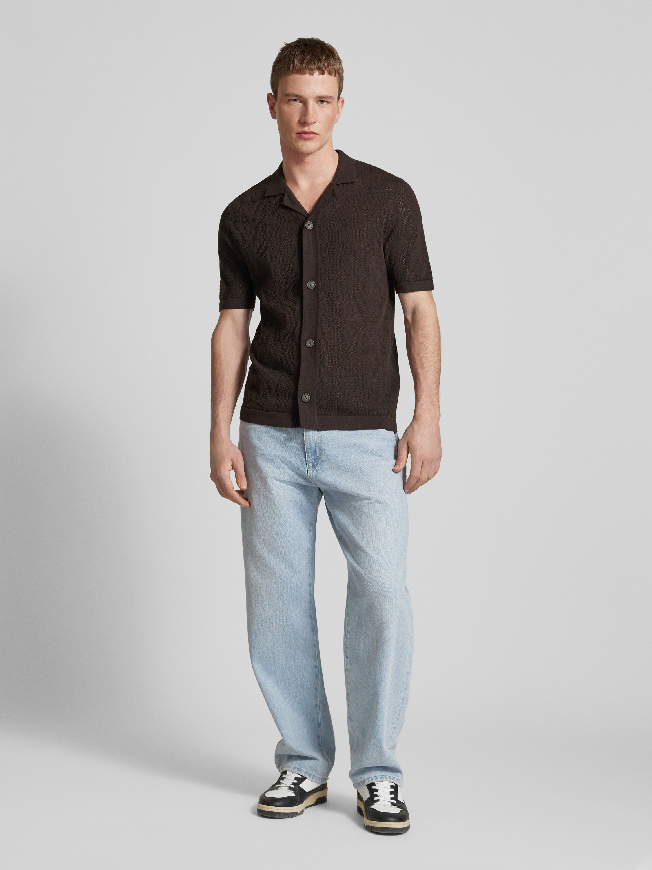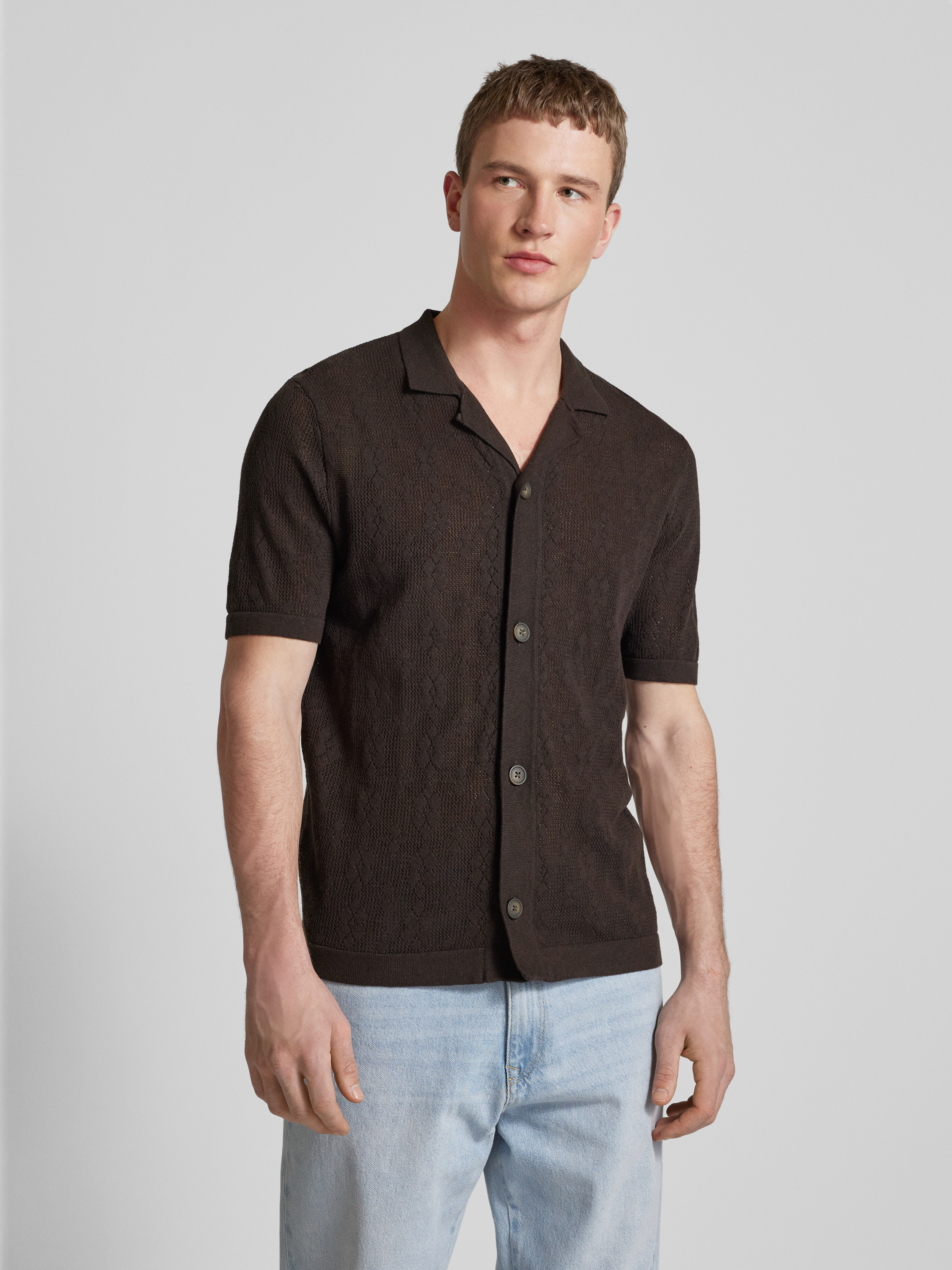 Regular fit vrijetijdsoverhemd met resortkraag, model 'KEN LIFE' in zwart