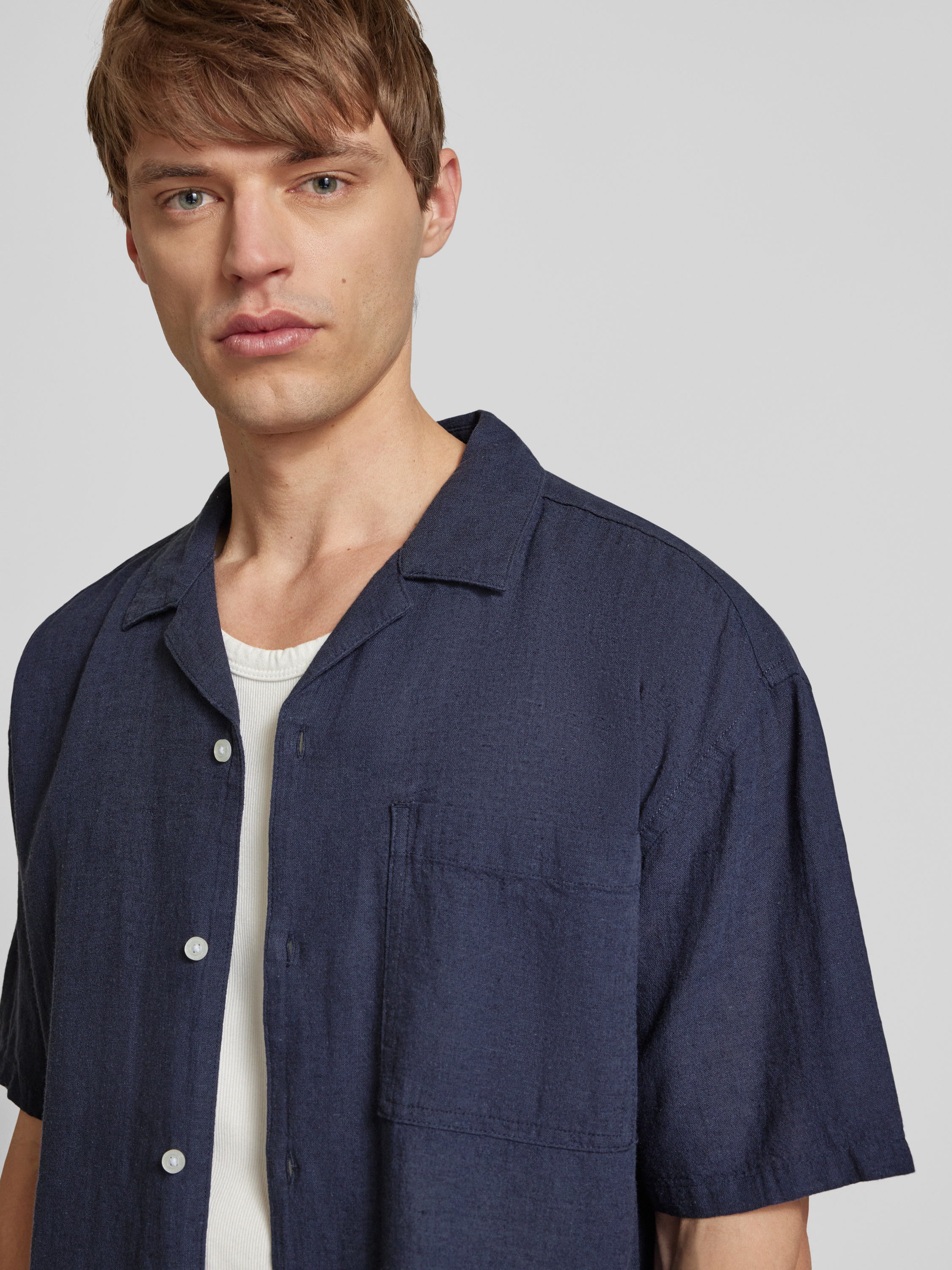 Only & SonsRelaxed fit vrijetijdsoverhemd met 1/2-mouwen, model 'CAIDEN' in marineblauw