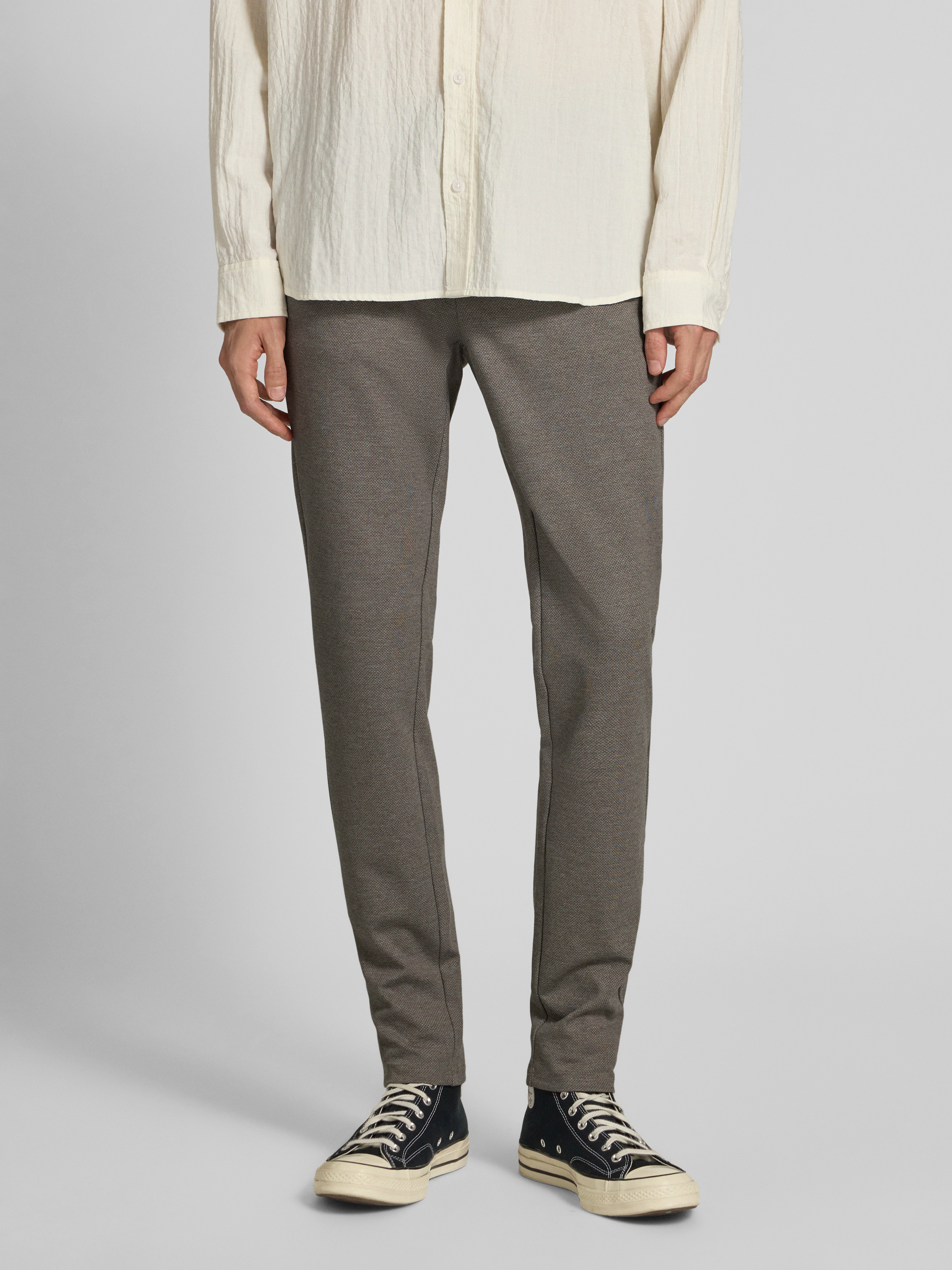 Slim fit chino van viscosemix, model 'MARK' in lichtbruin