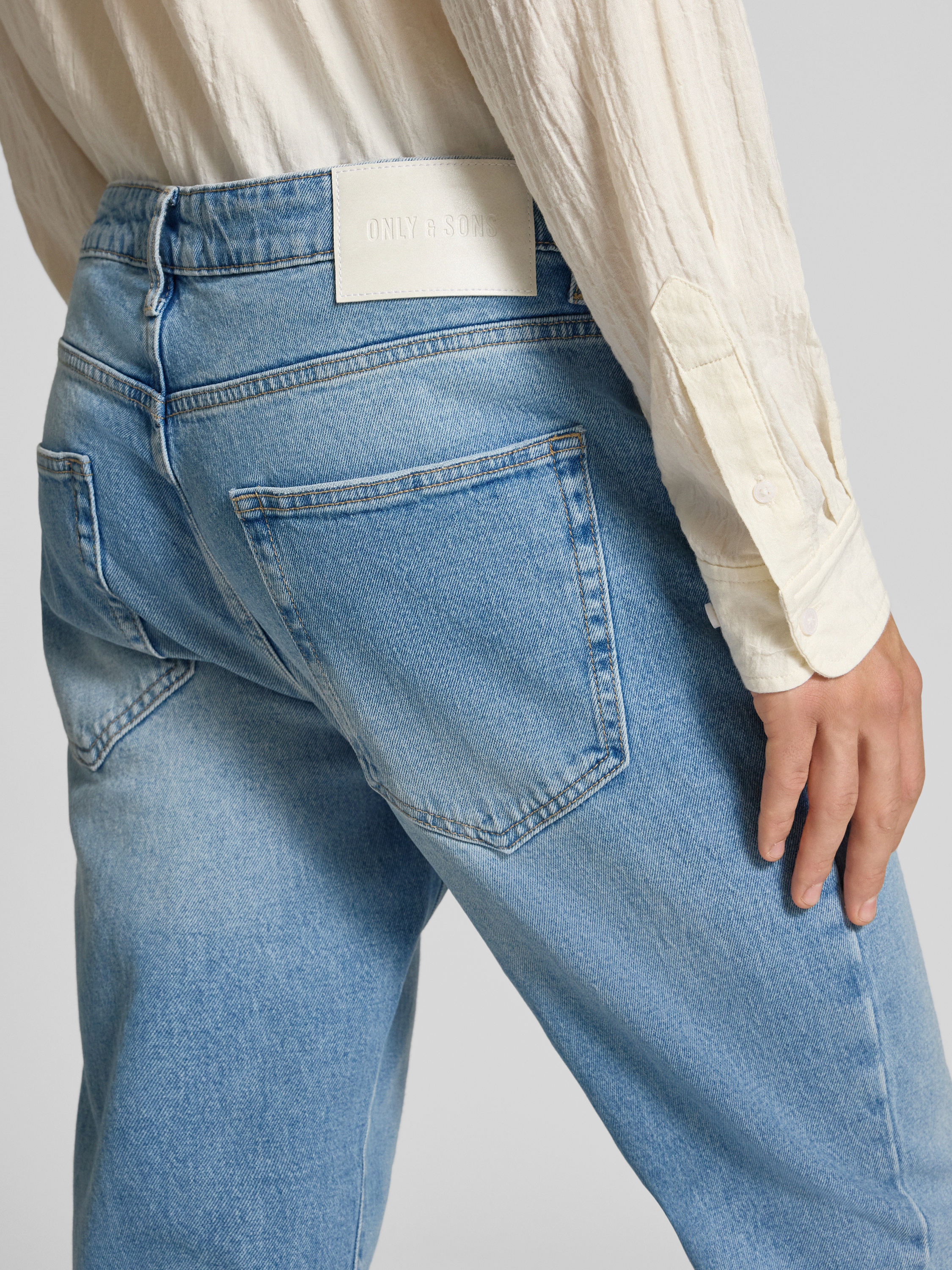 Tapered fit jeans van katoenmix, model 'YOKE' in jeansblauw