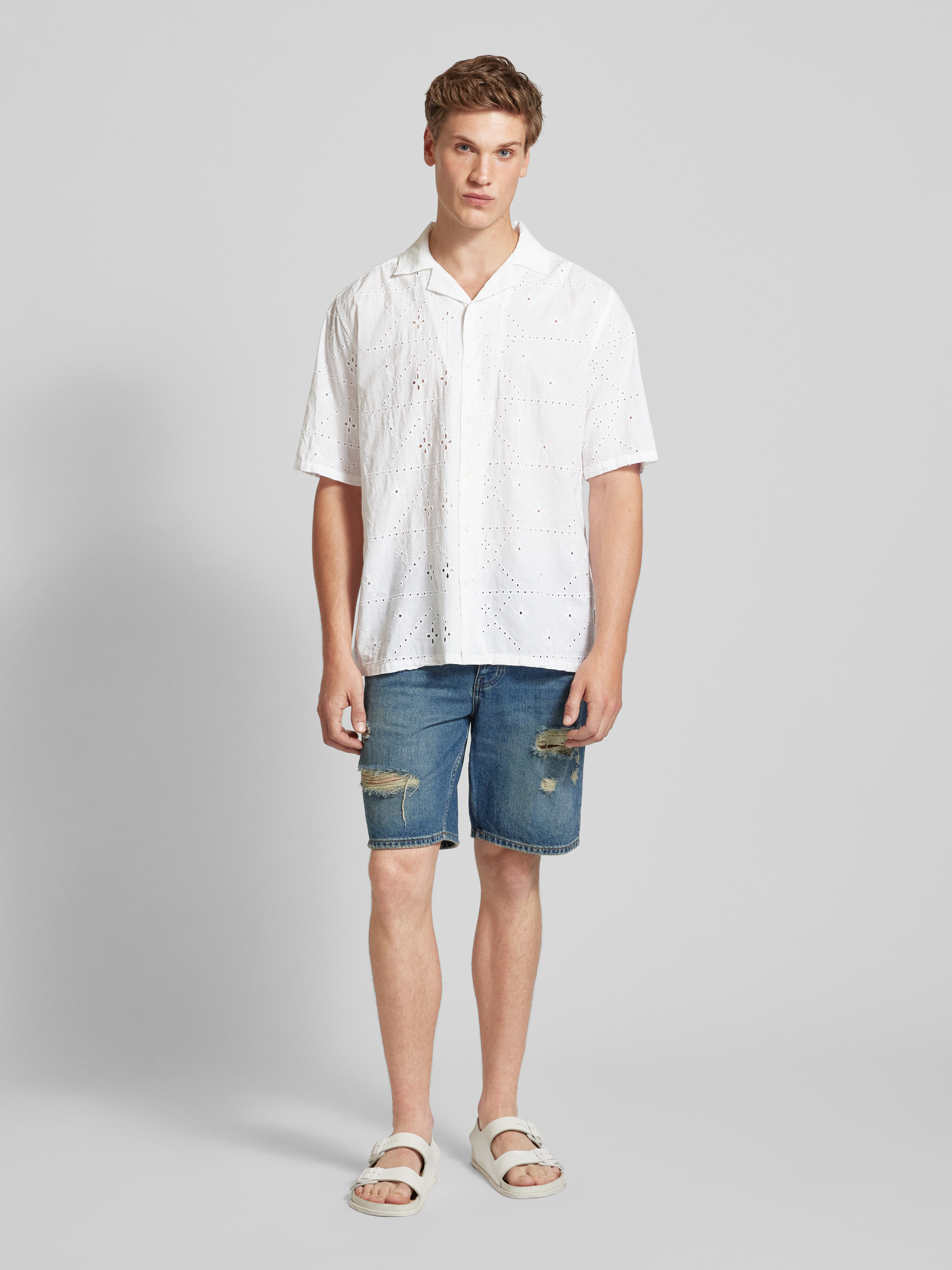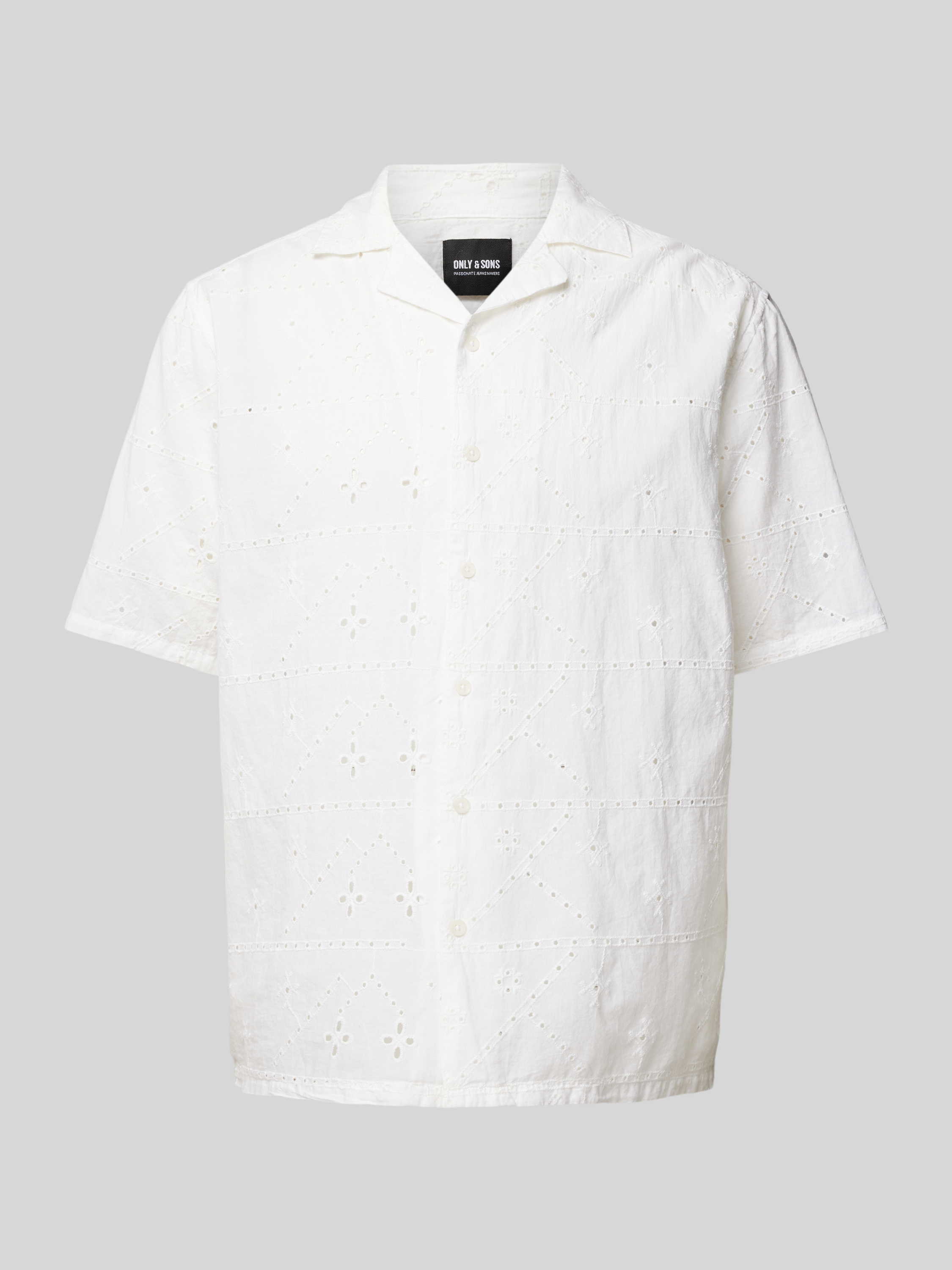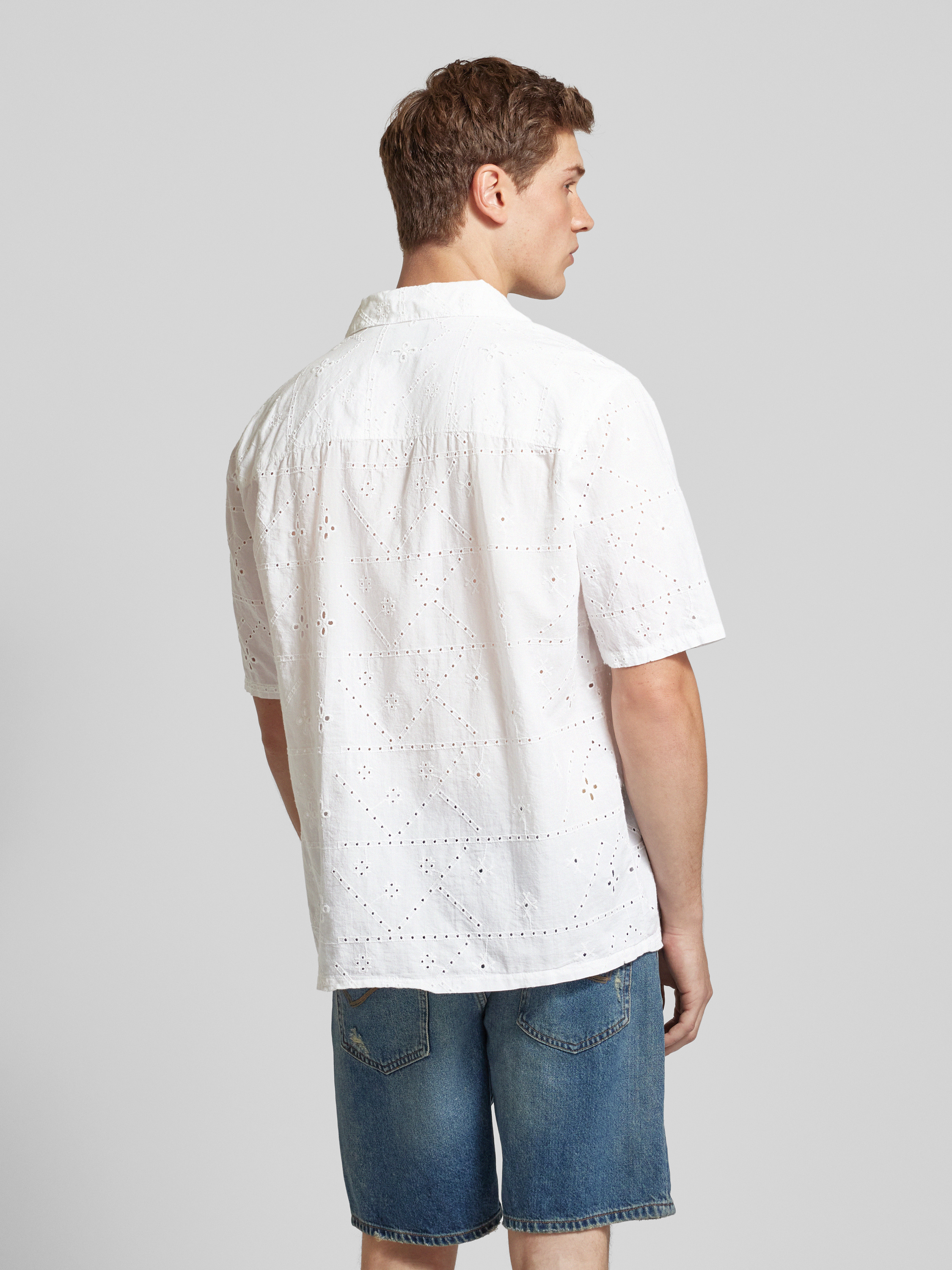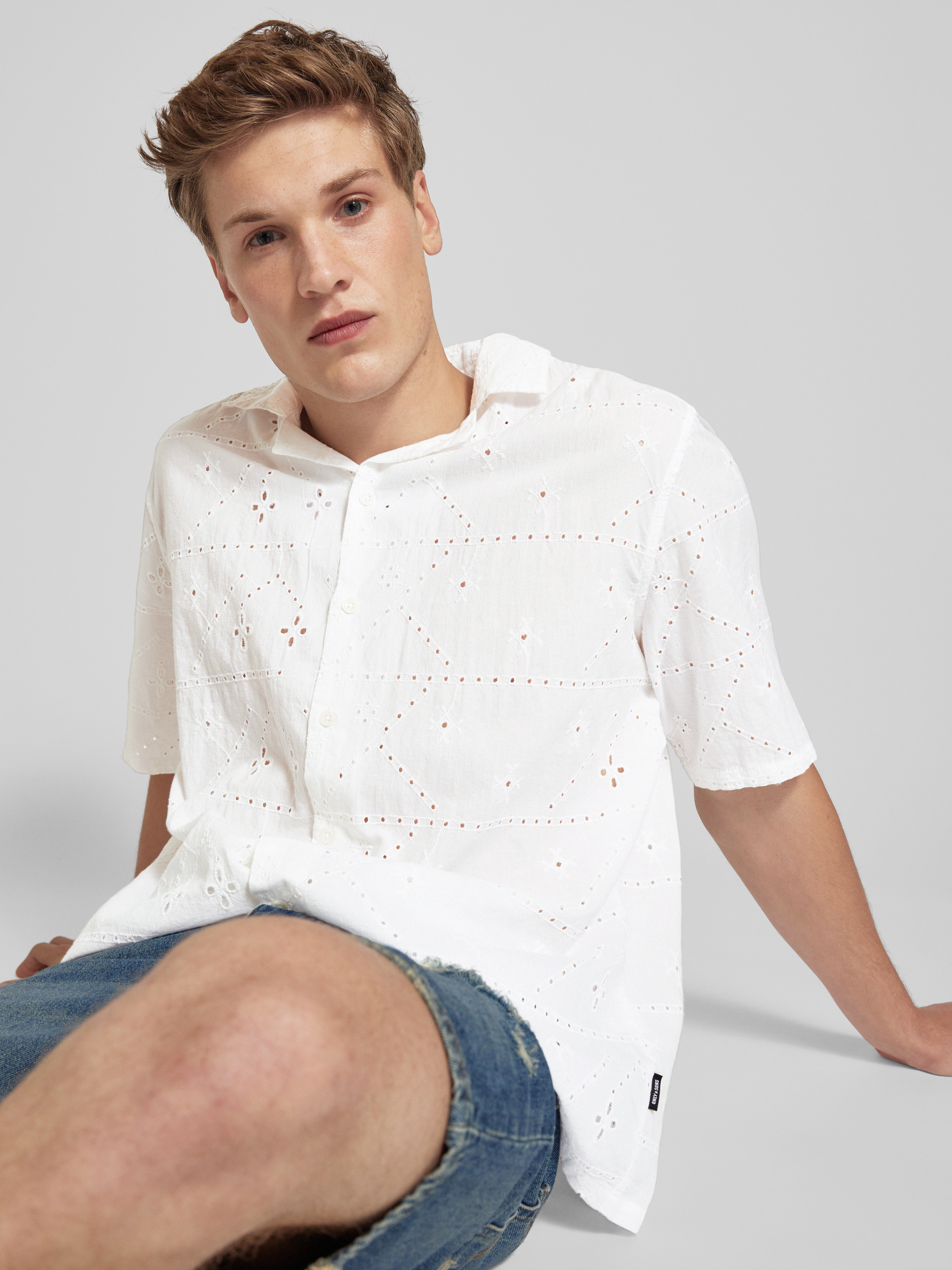 Vrijetijdsoverhemd met ajourpatroon, model 'ARON' in wit