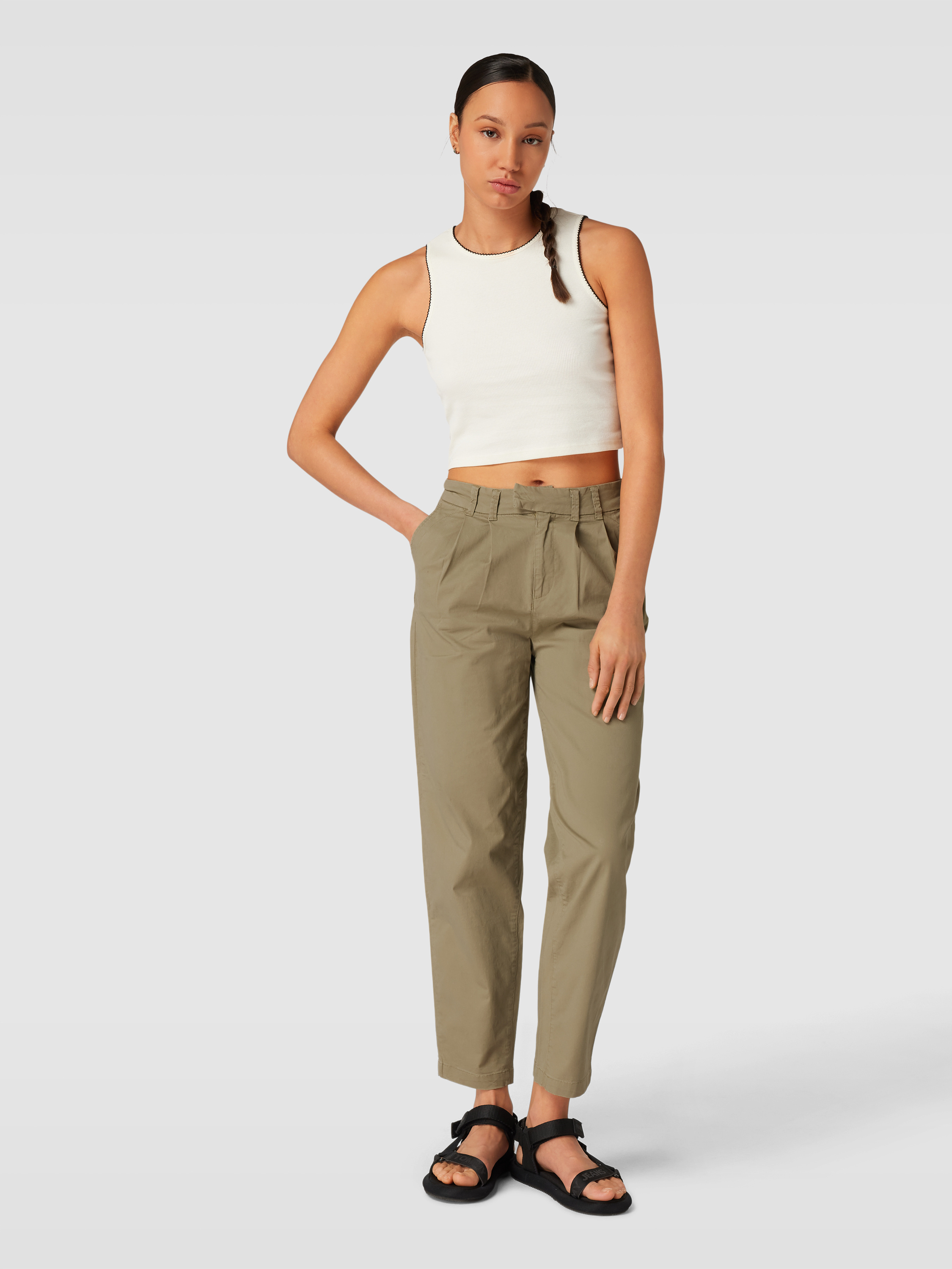 Stoffen broek met bandplooien, model 'EVELYN' in olijfgroen