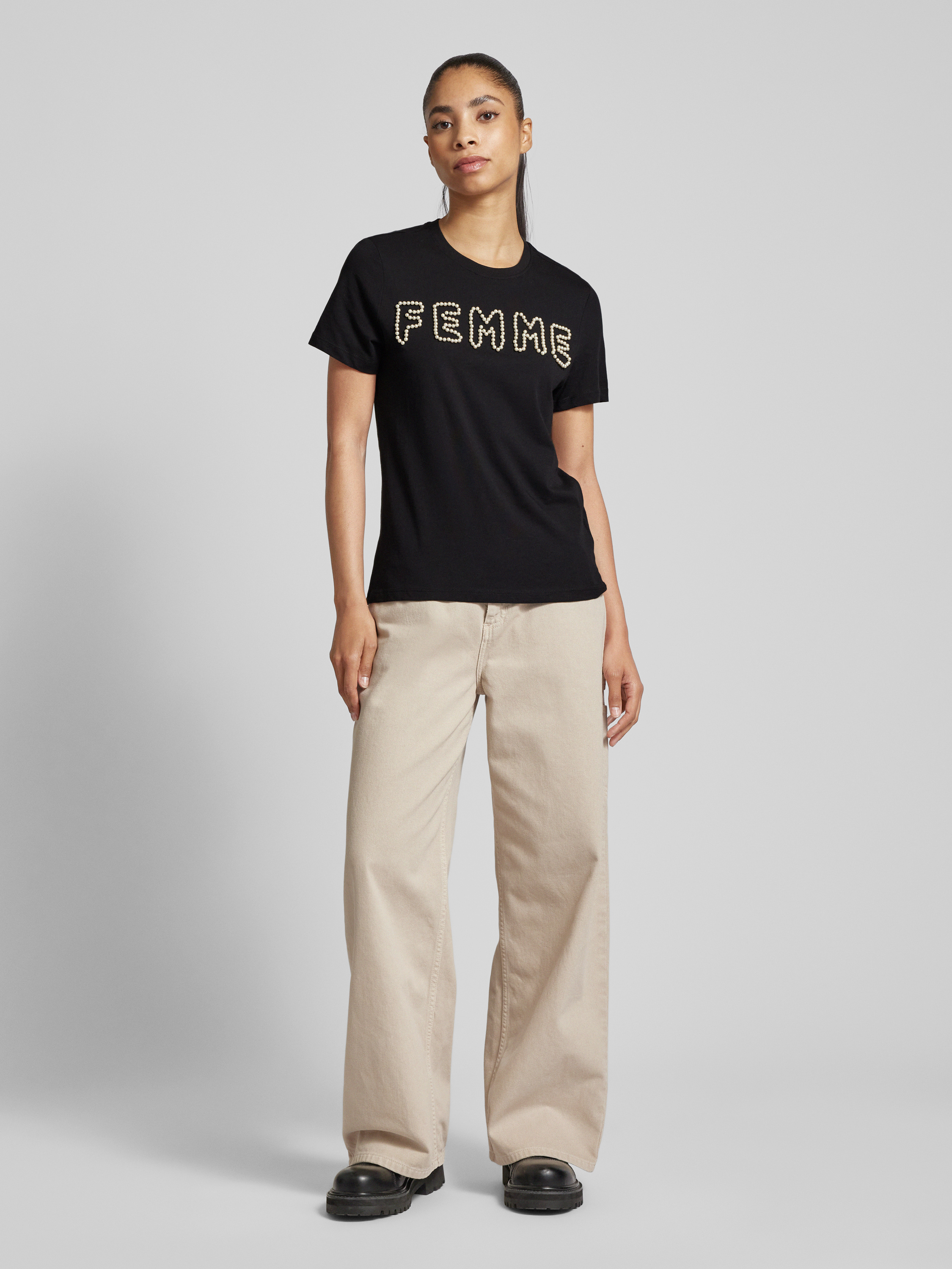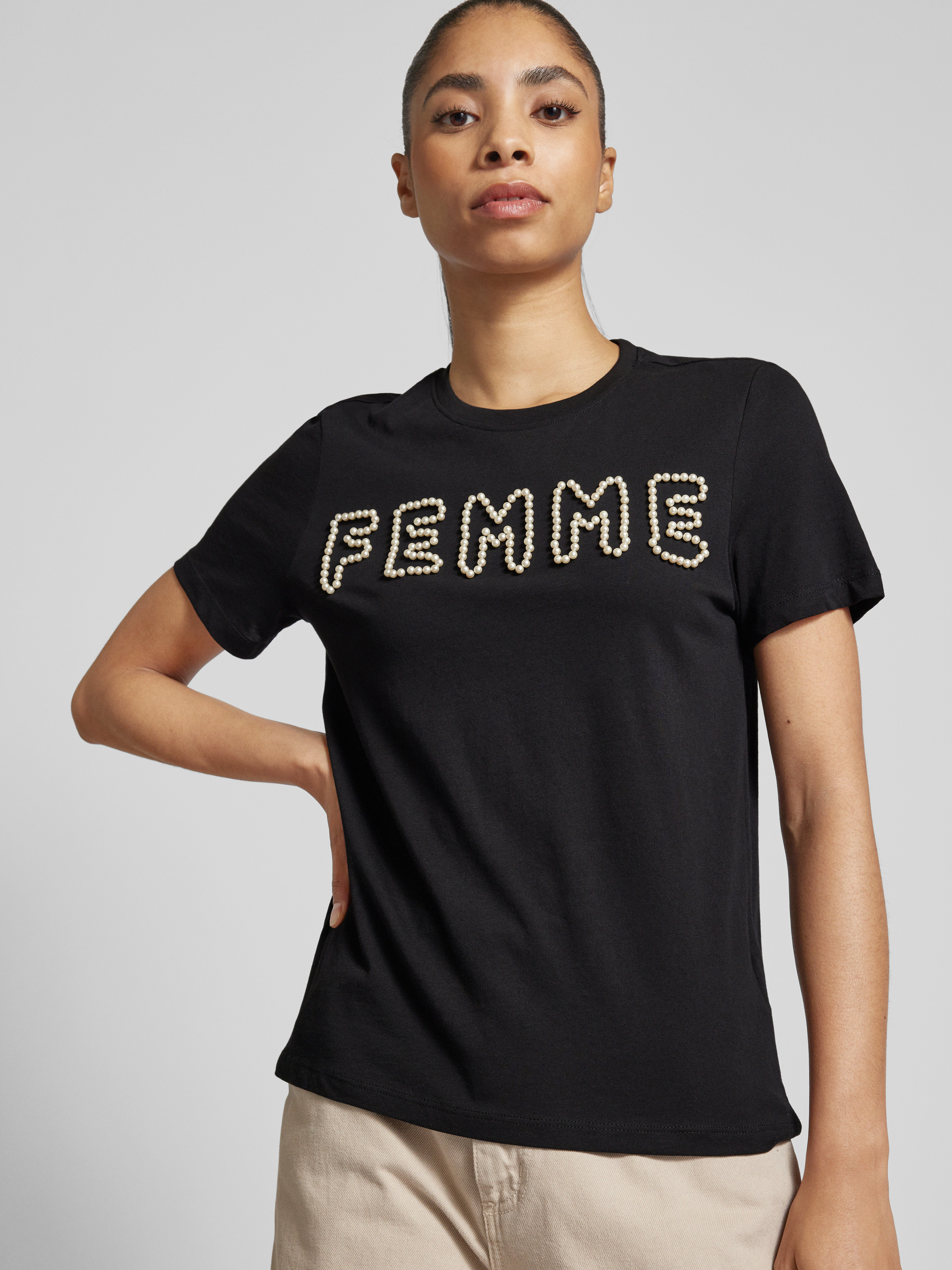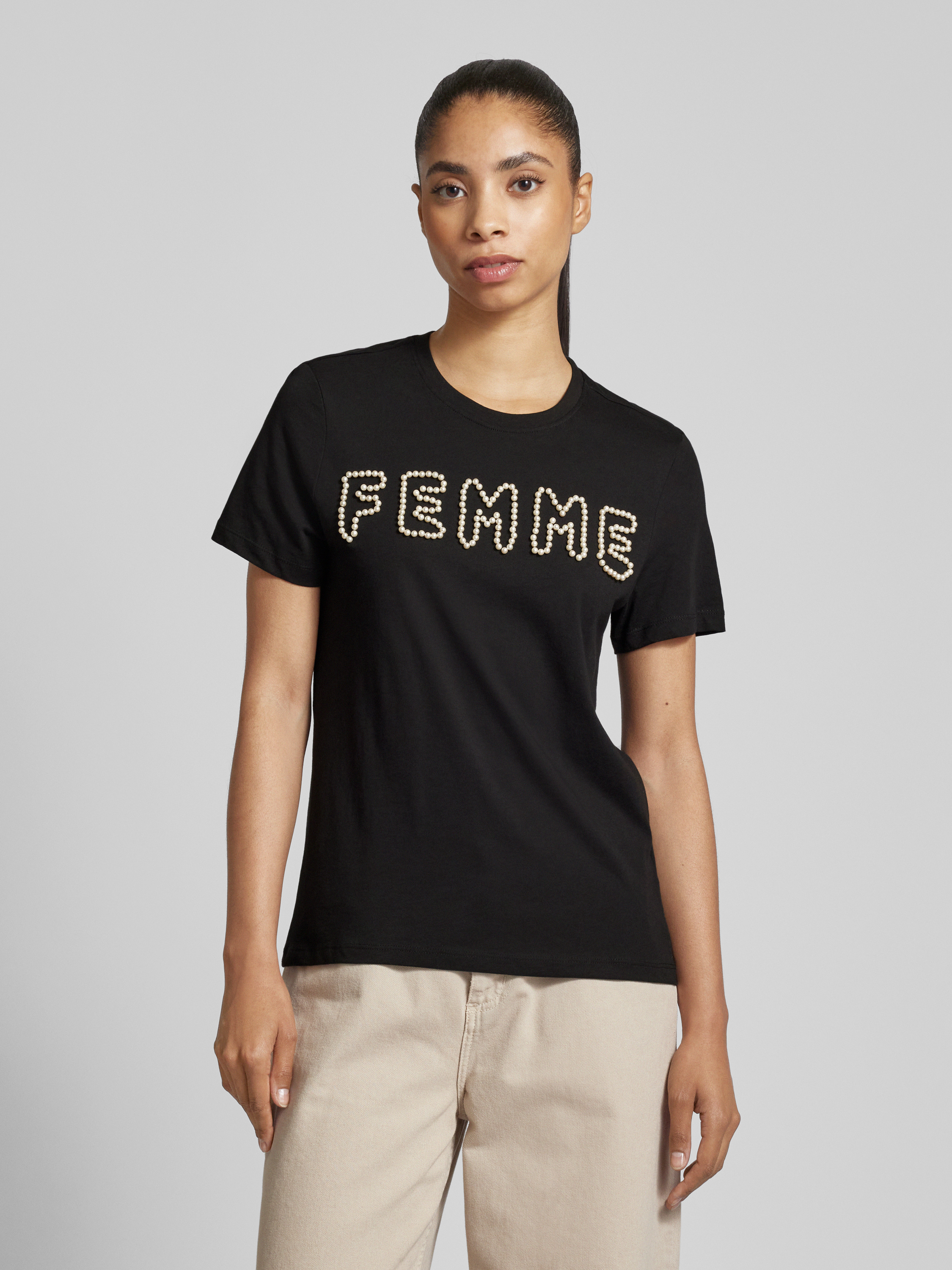 T-shirt met kralen, model 'NANNA' in zwart