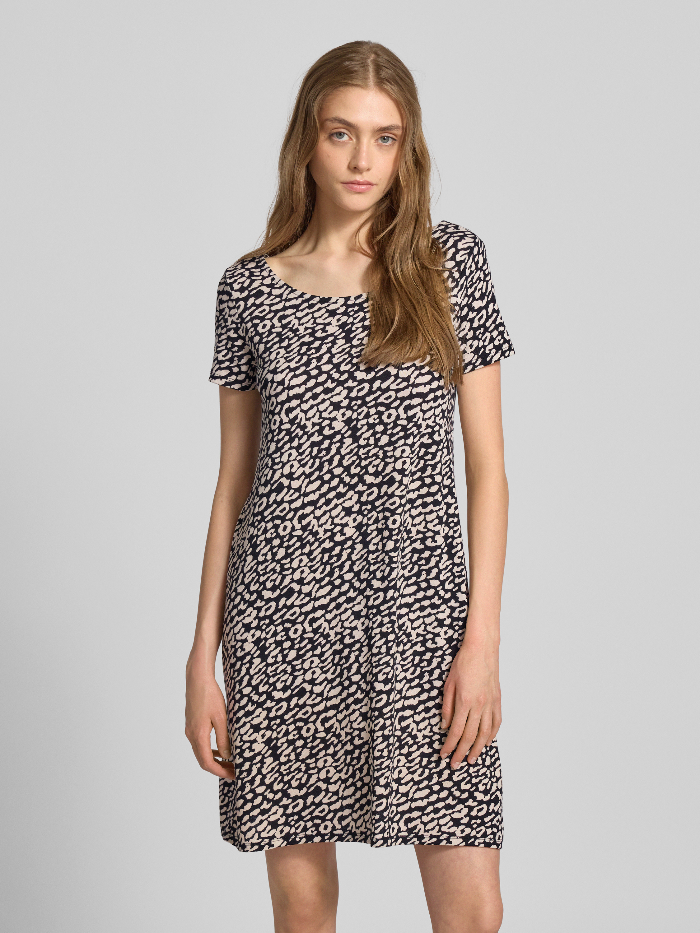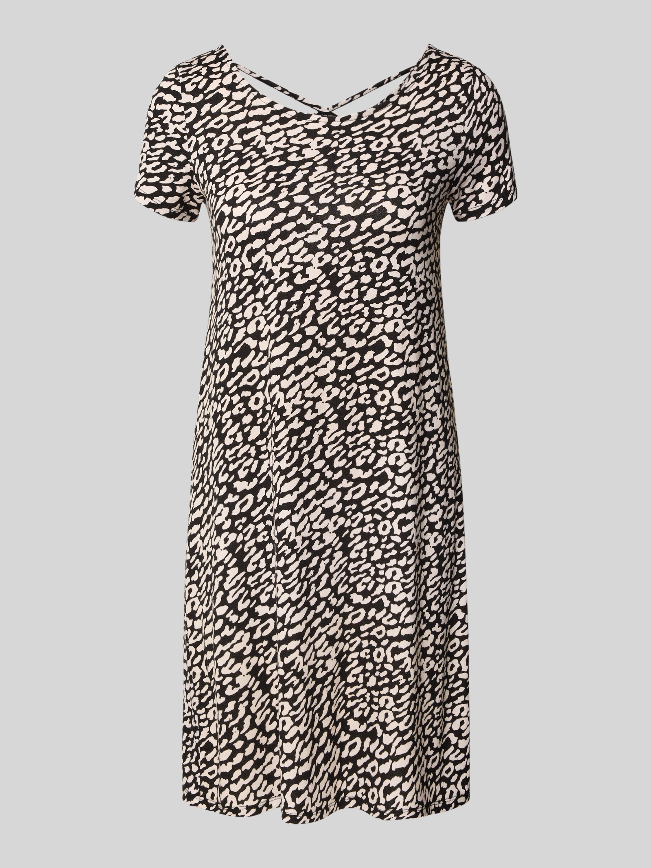 Uitlopende mini-jurk met all-over motief, model 'BERA' in zwart