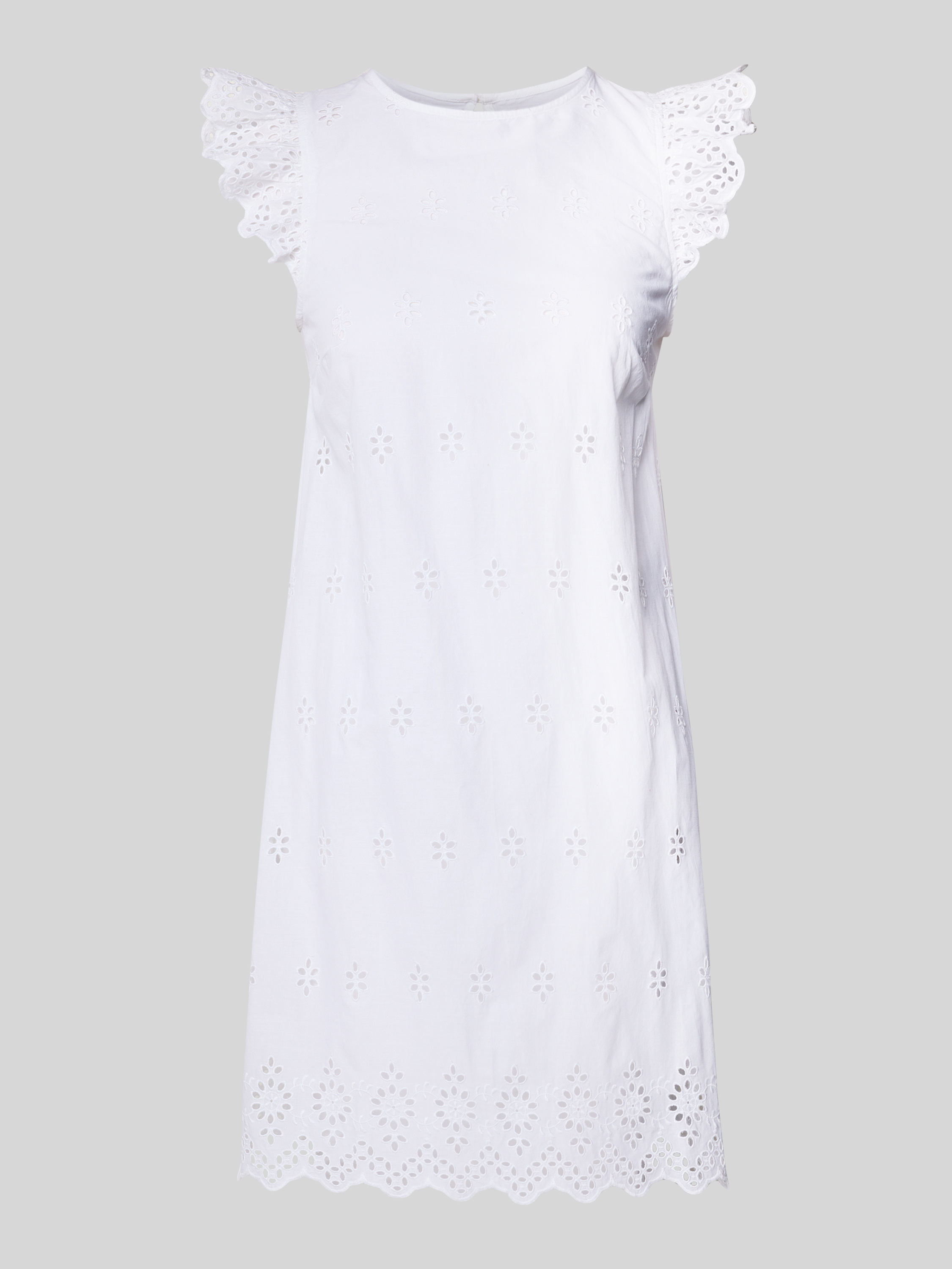 Uitlopende mini-jurk met broderie anglaise, model 'LOU' in wit