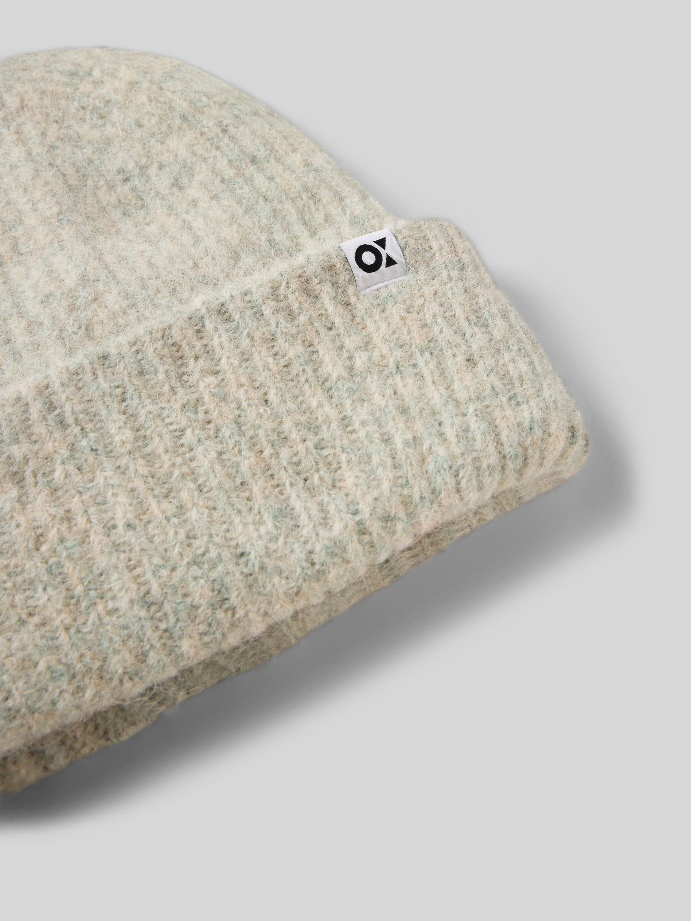 Beanie met labeldetail, model 'Afello' in rietgroen