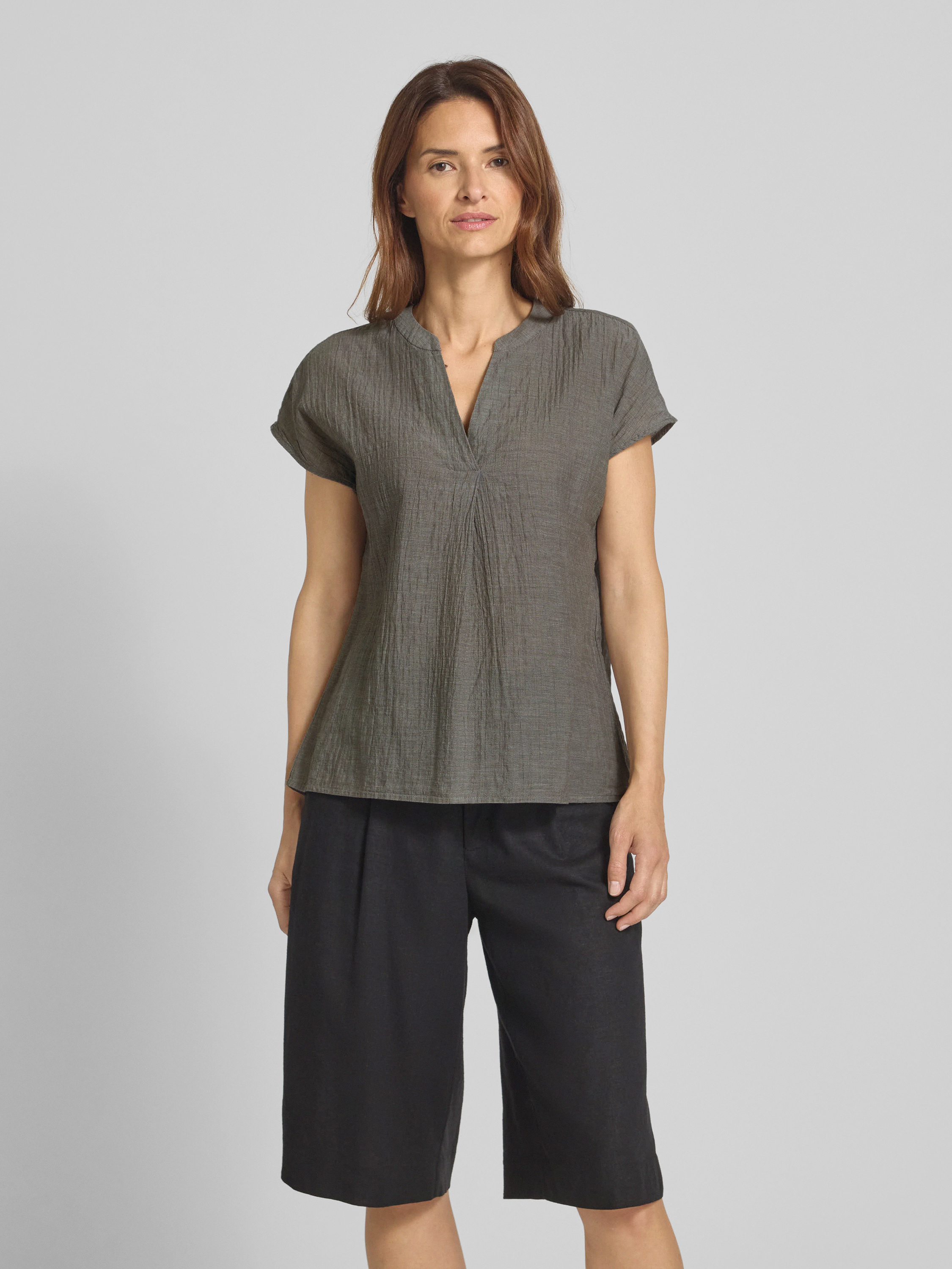 Blouseshirt met V-hals, model 'Famita' in olijfgroen