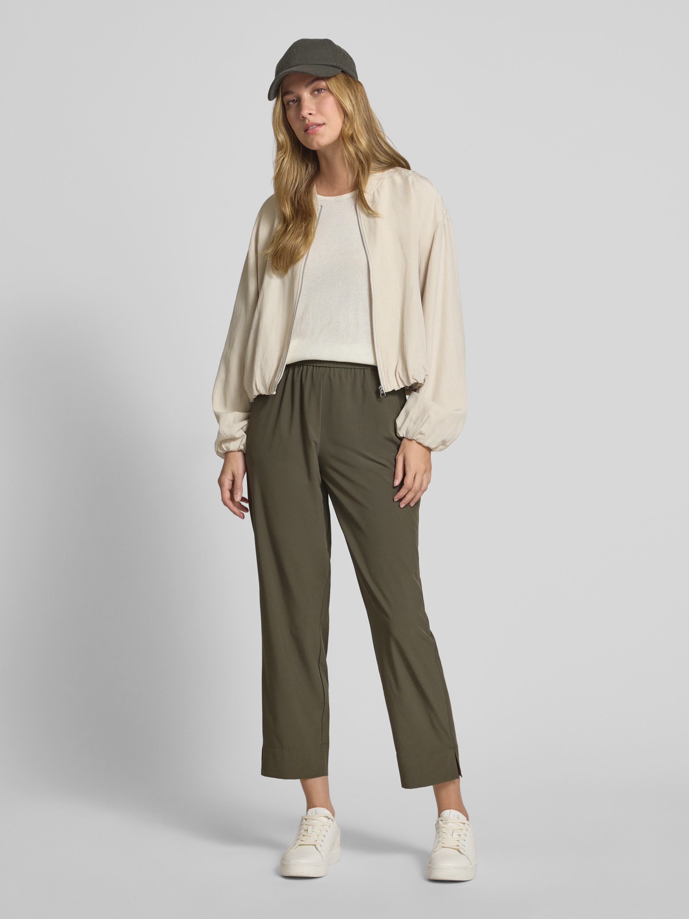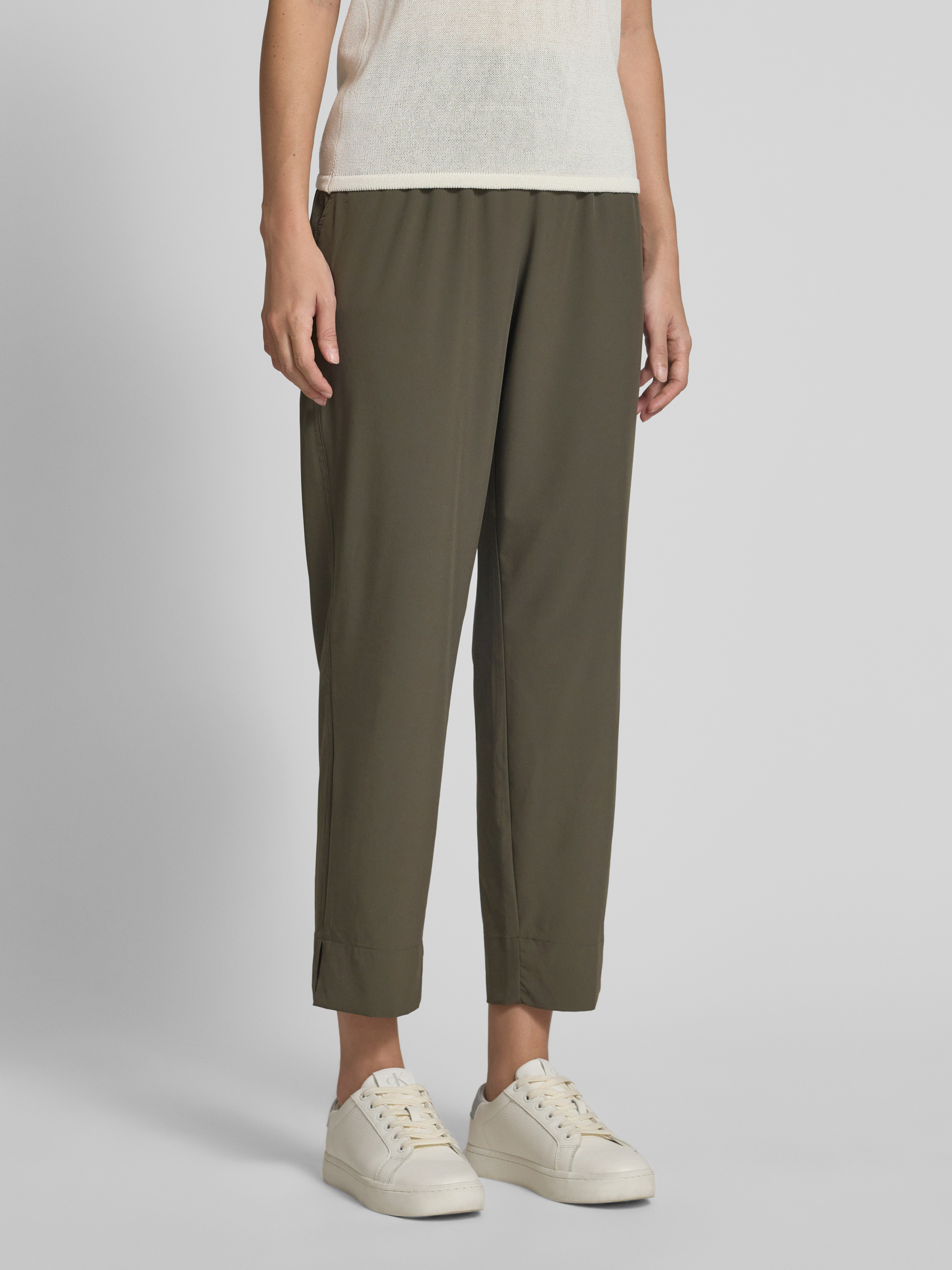 Broek met elastische band, model 'Mefini' in olijfgroen