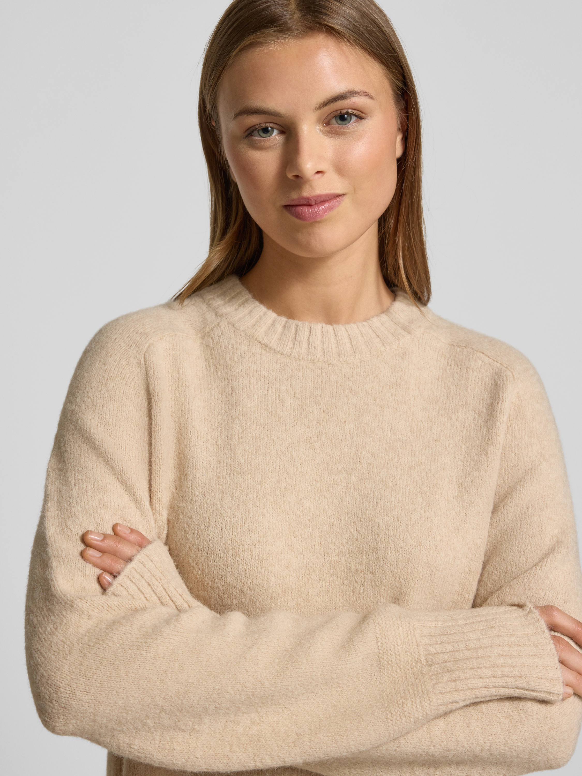 Gebreide pullover met ronde hals, model 'Passy' in beige