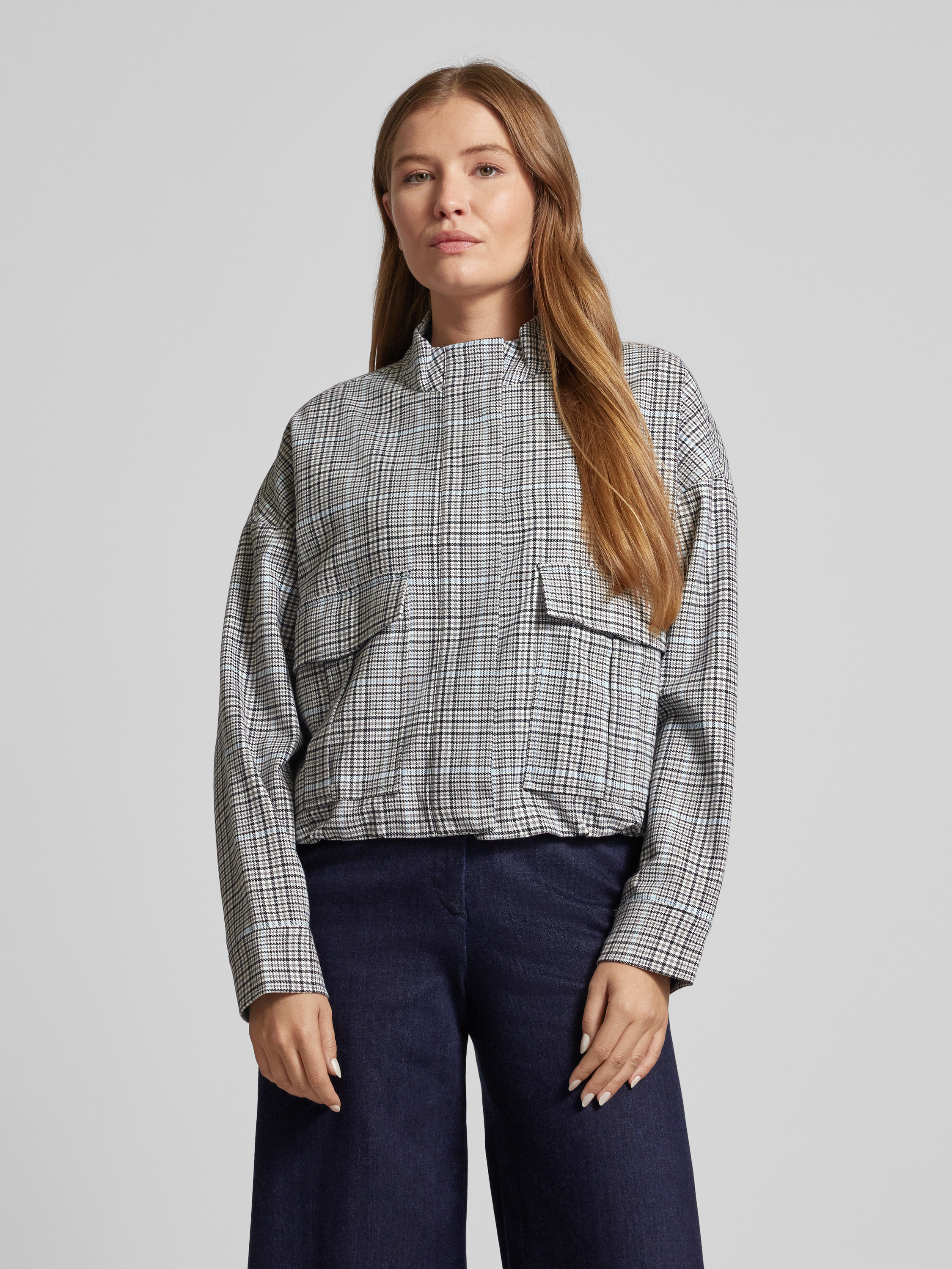 Jack met opstaande kraag, model 'Hemma' in lichtgrijs gemêleerd