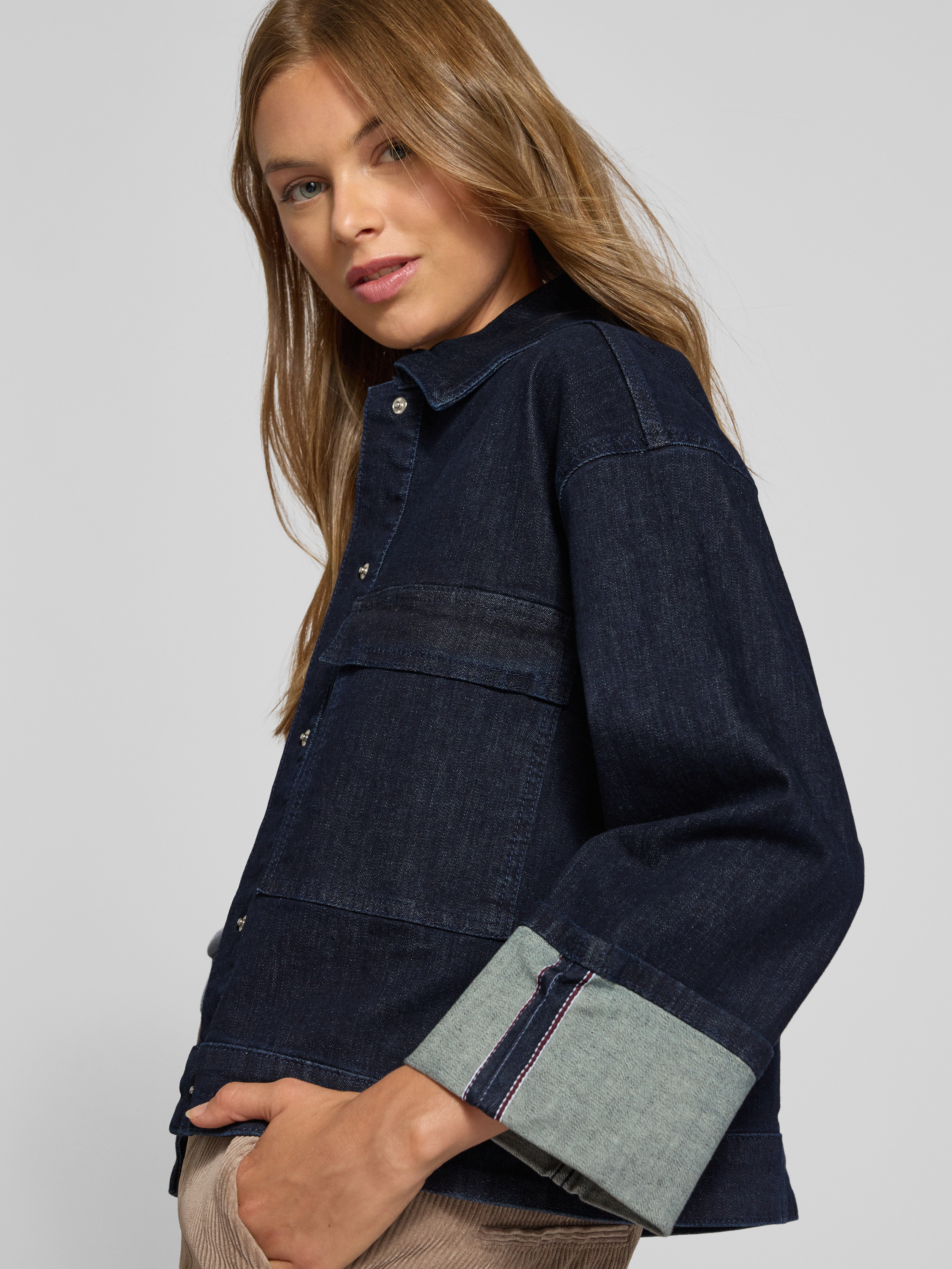 Jeansjack met platte kraag, model 'Hollice' in jeansblauw