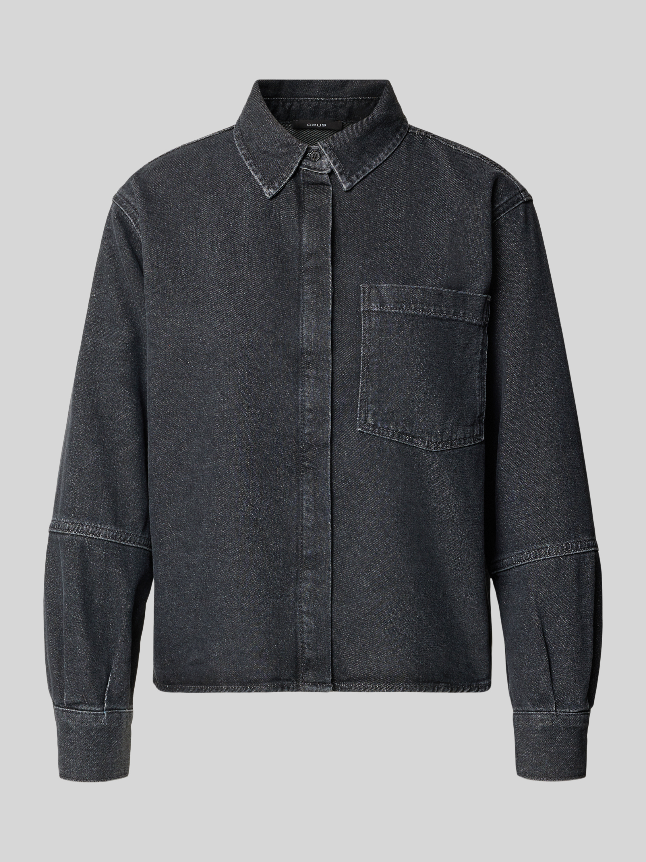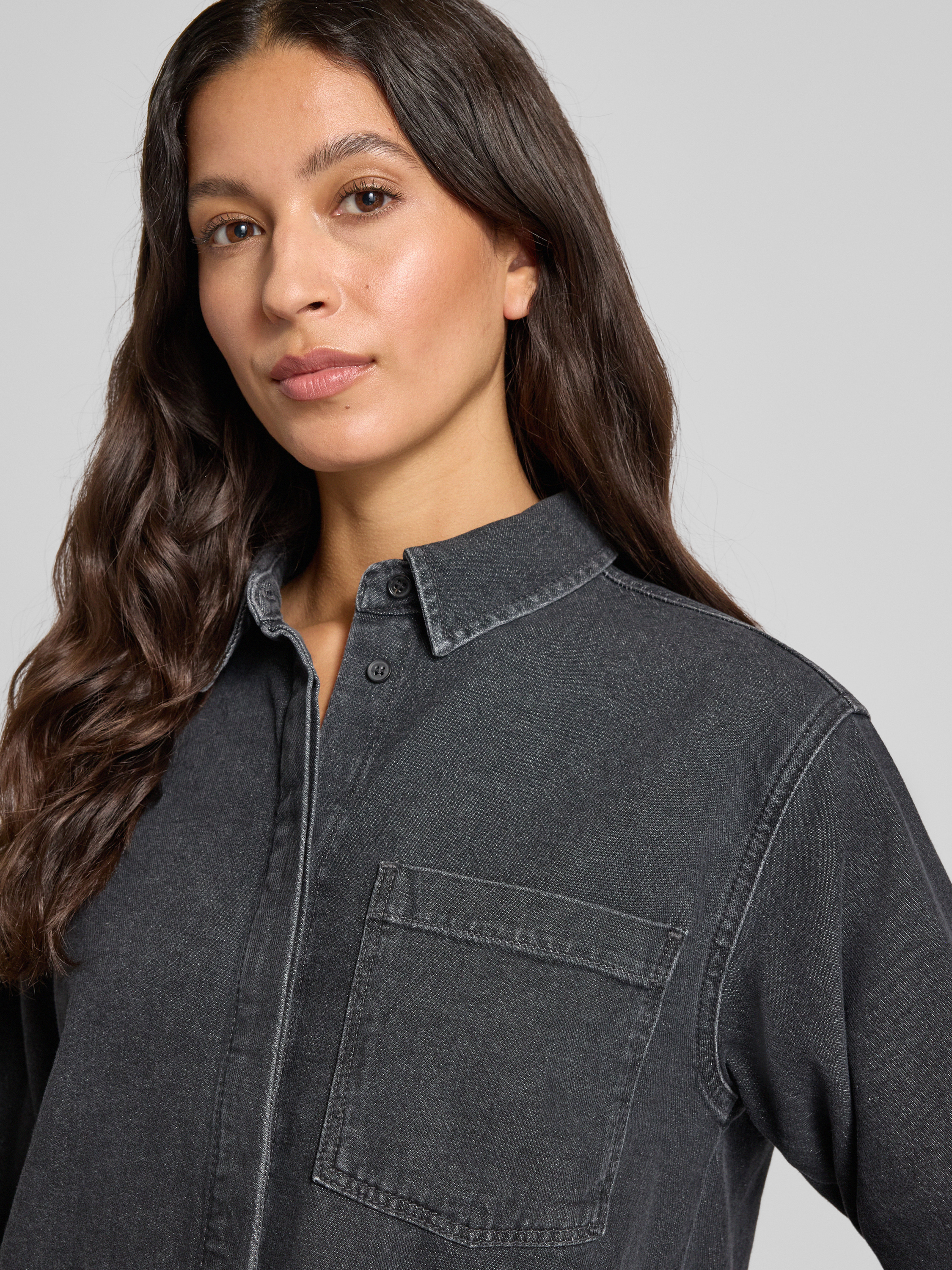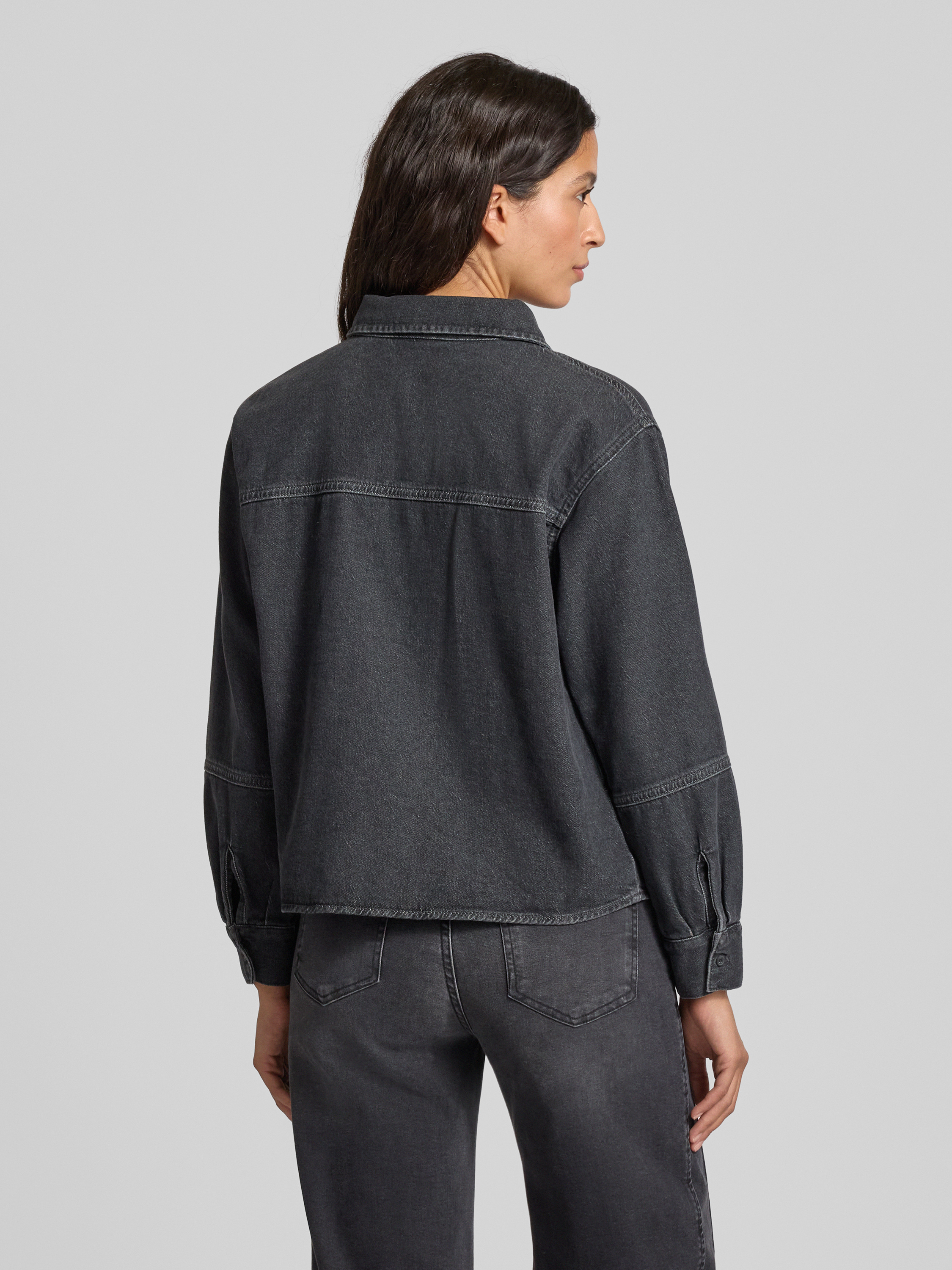 Overhemdblouse in denimlook, model 'Femori' in donkergrijs