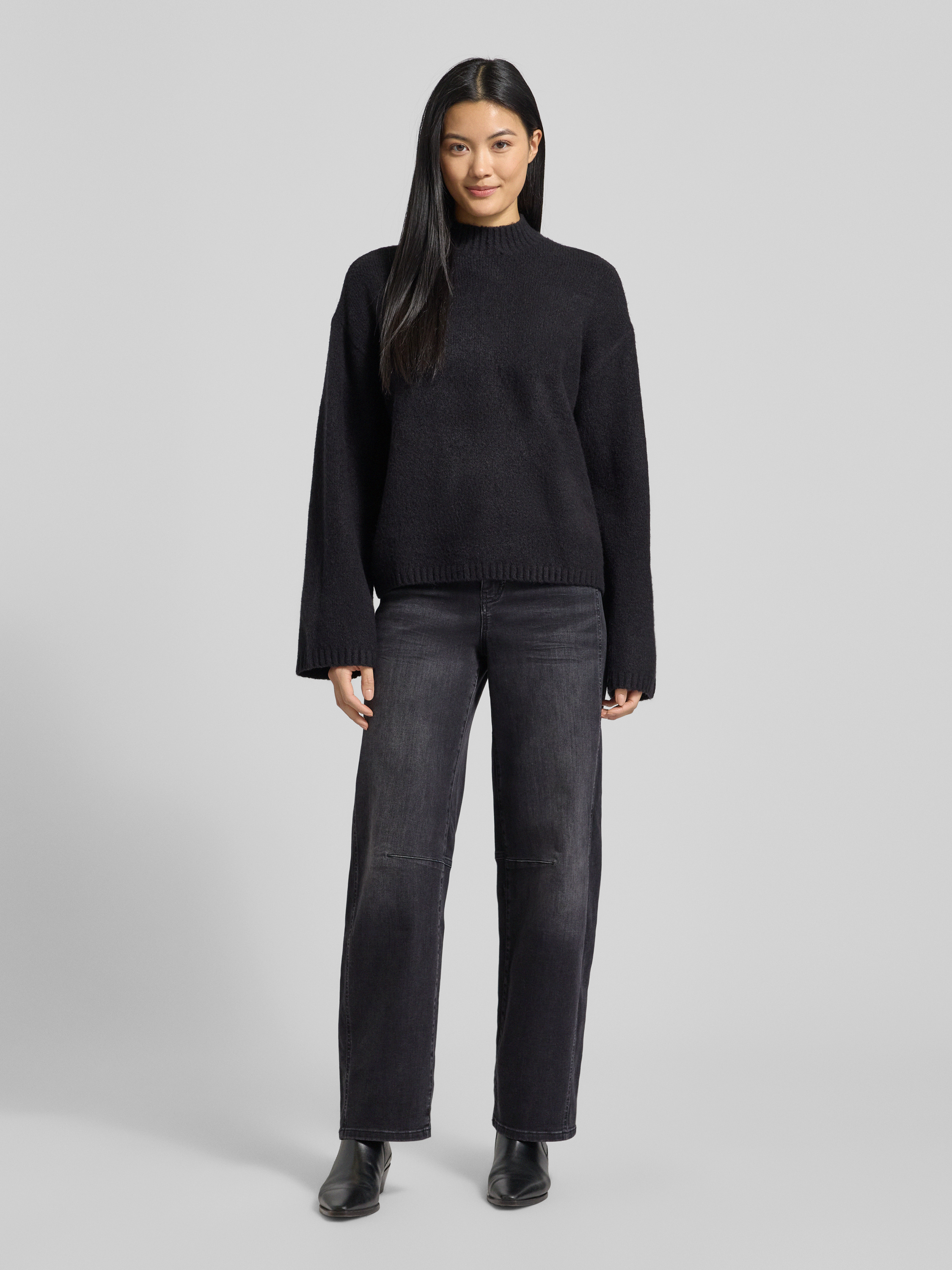 Gebreide pullover met opstaande kraag en extra brede schouders