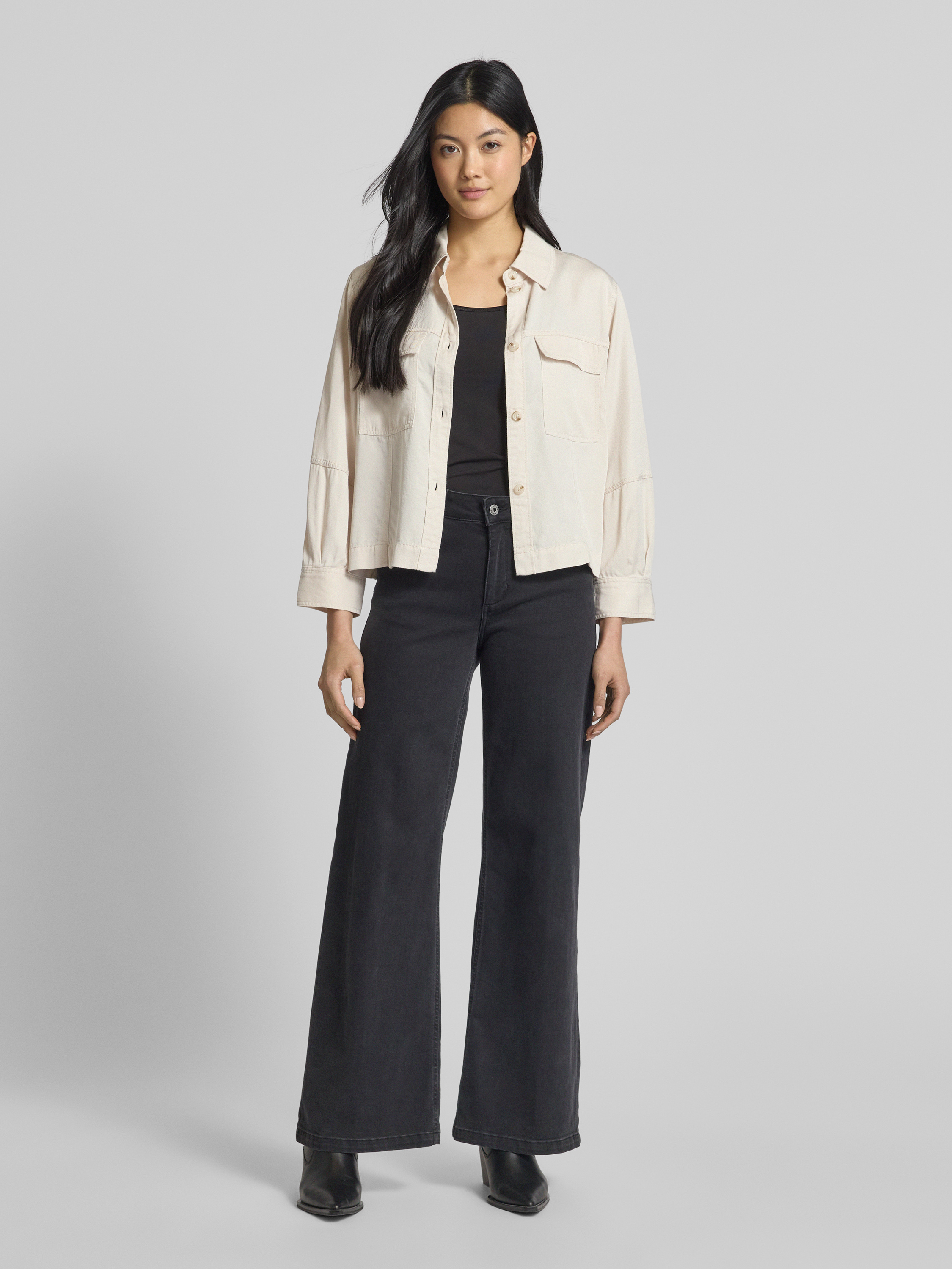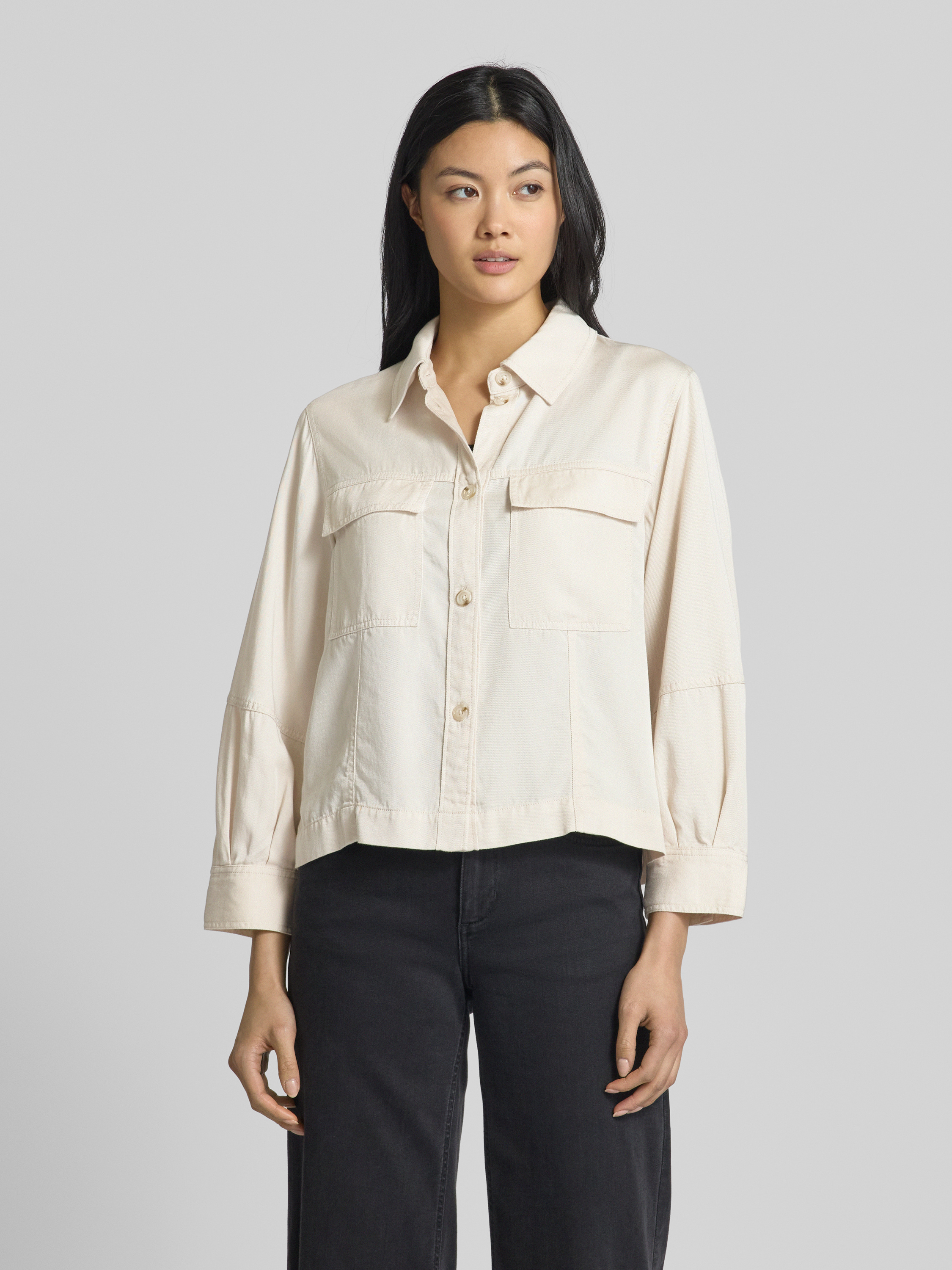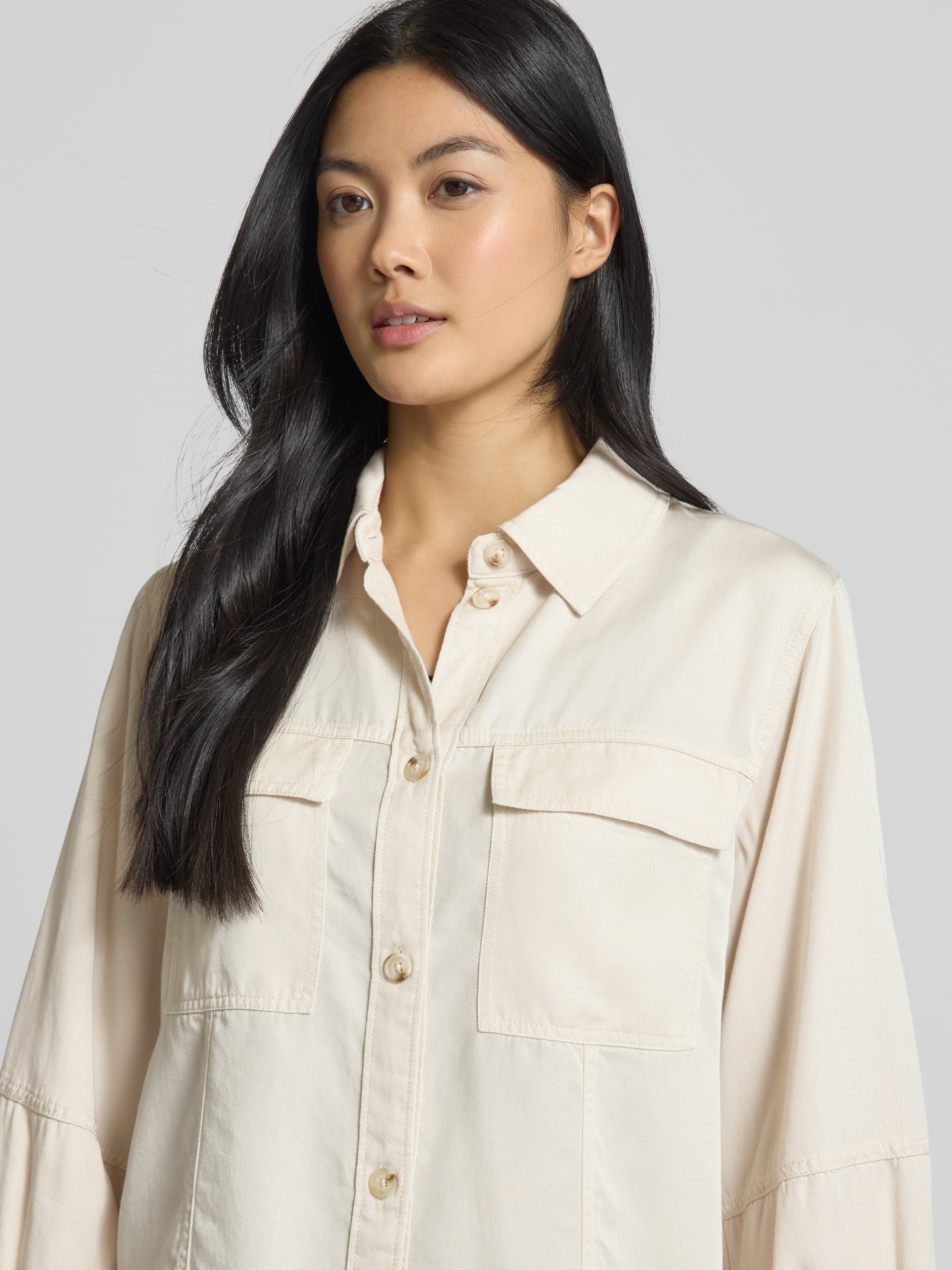 Regular fit overhemdblouse met paspelzakken op de borst, model 'Fadelia' in beige