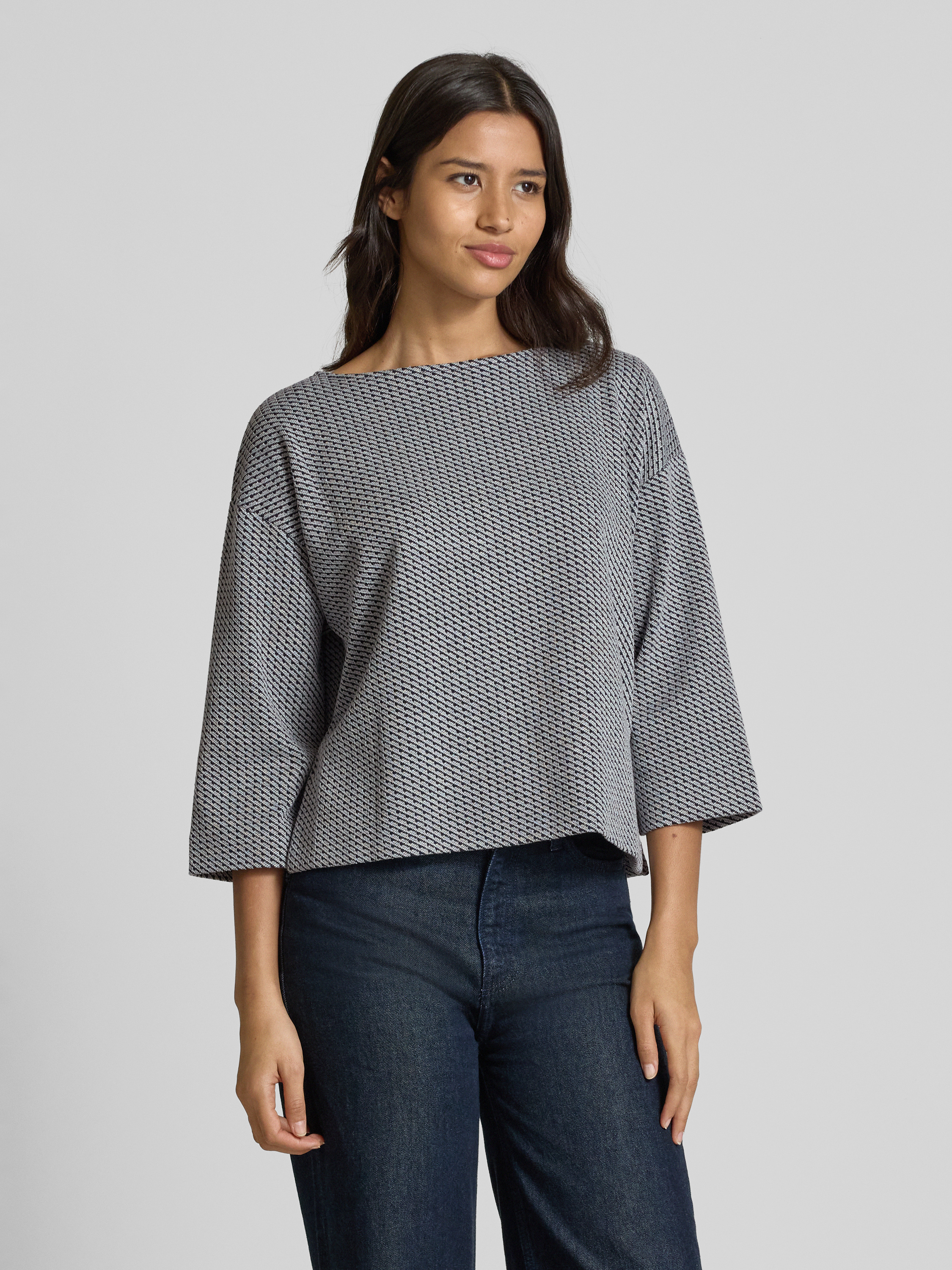 Sweatshirt met 3/4-mouwen, model 'TADITA' in lichtgrijs