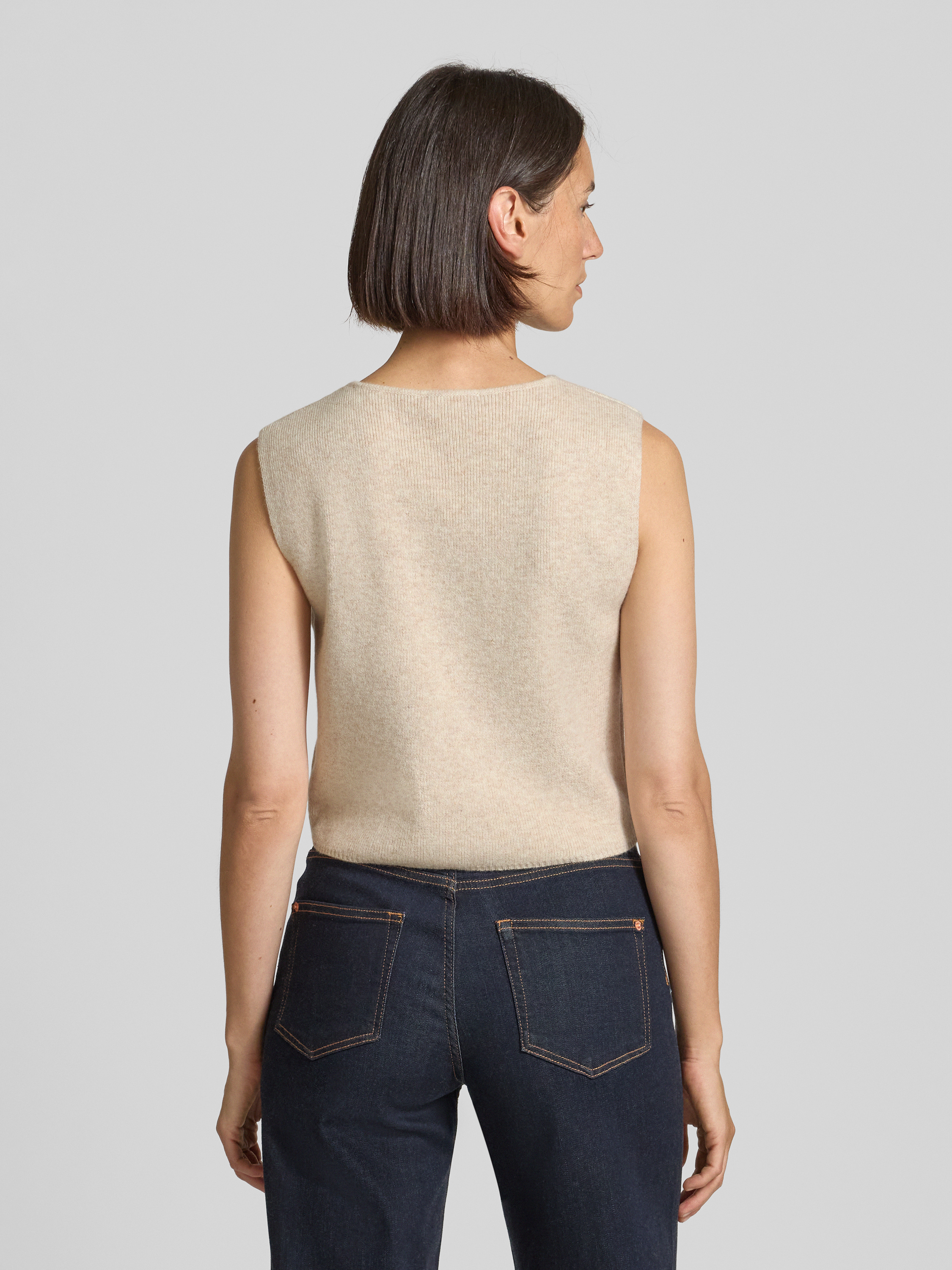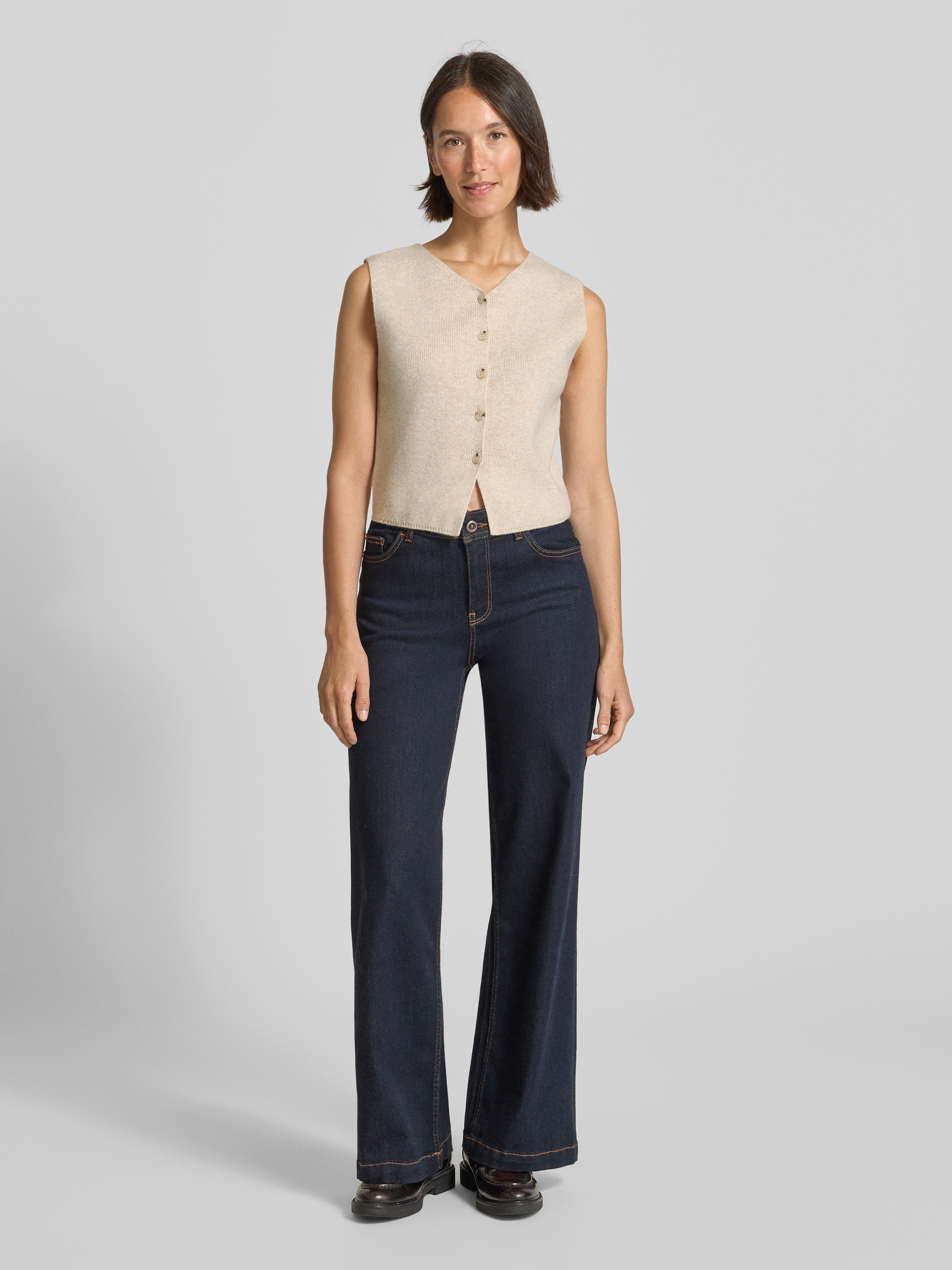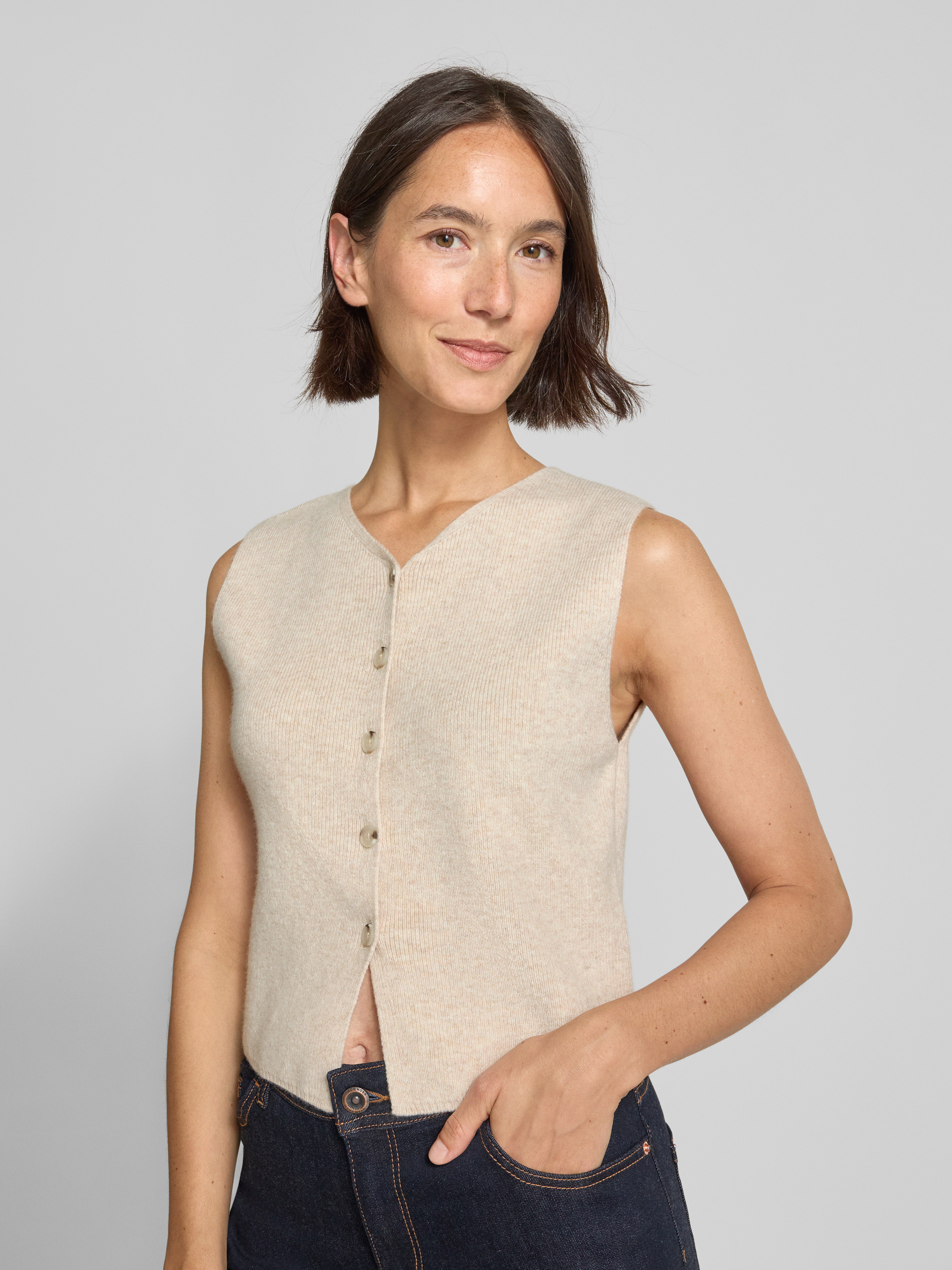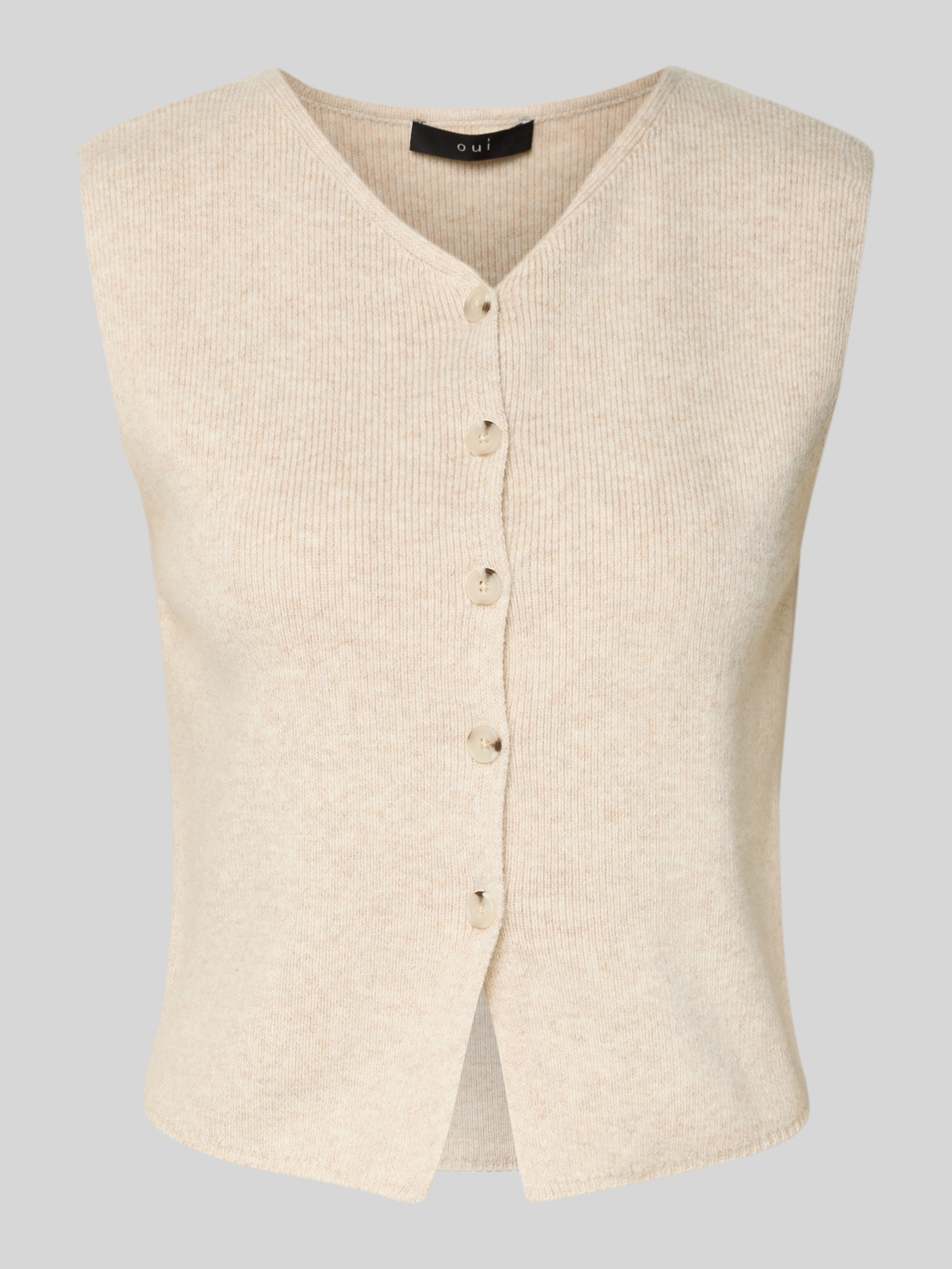 OuiGebreid gilet met V-hals in beige gemêleerd