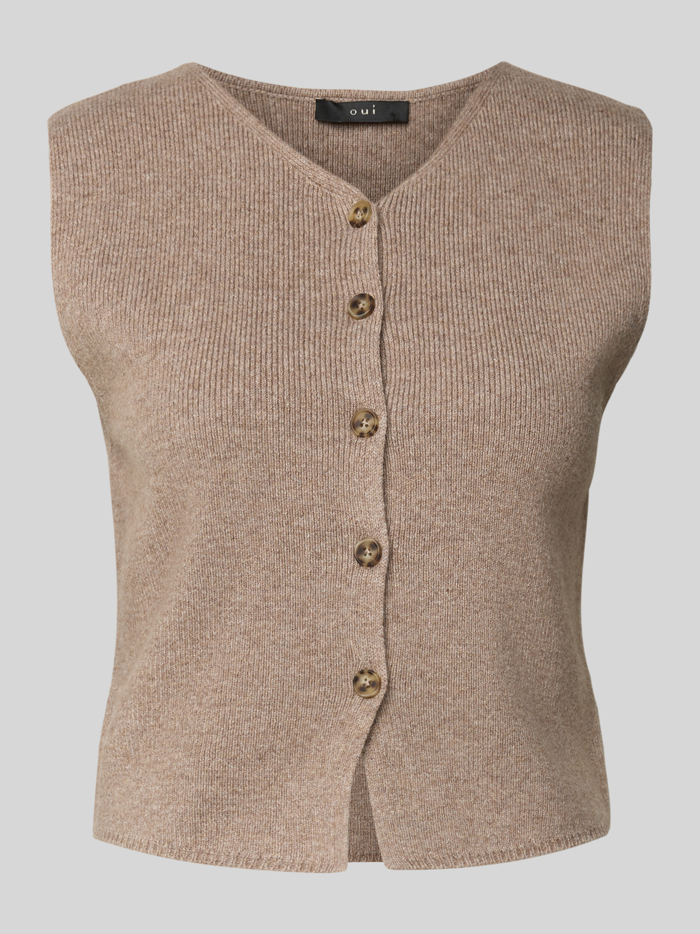 • Oui Gebreid gilet met V-hals Lichtgrijs gemêleerd