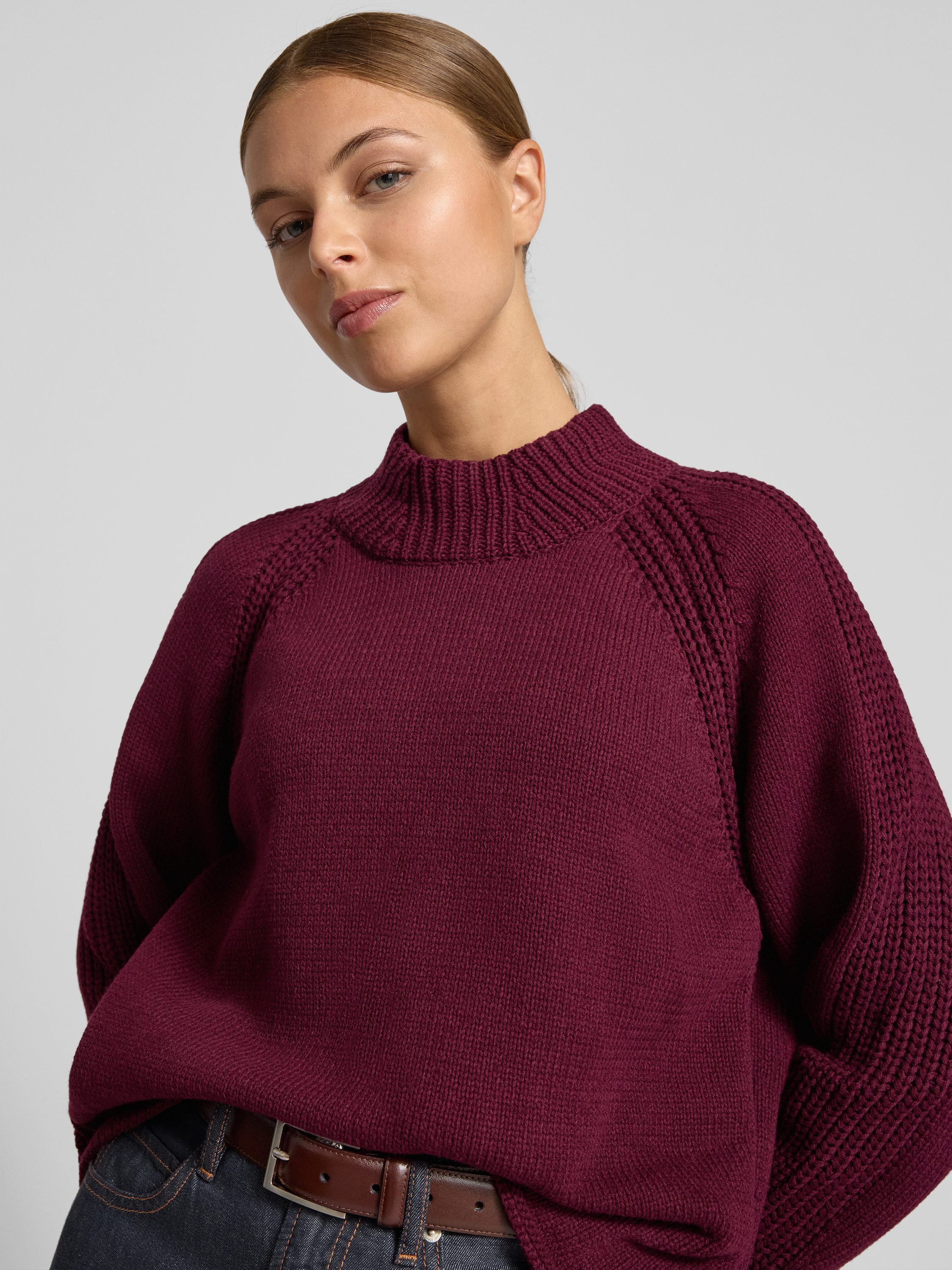 OuiGebreide pullover met opstaande kraag in bordeaux