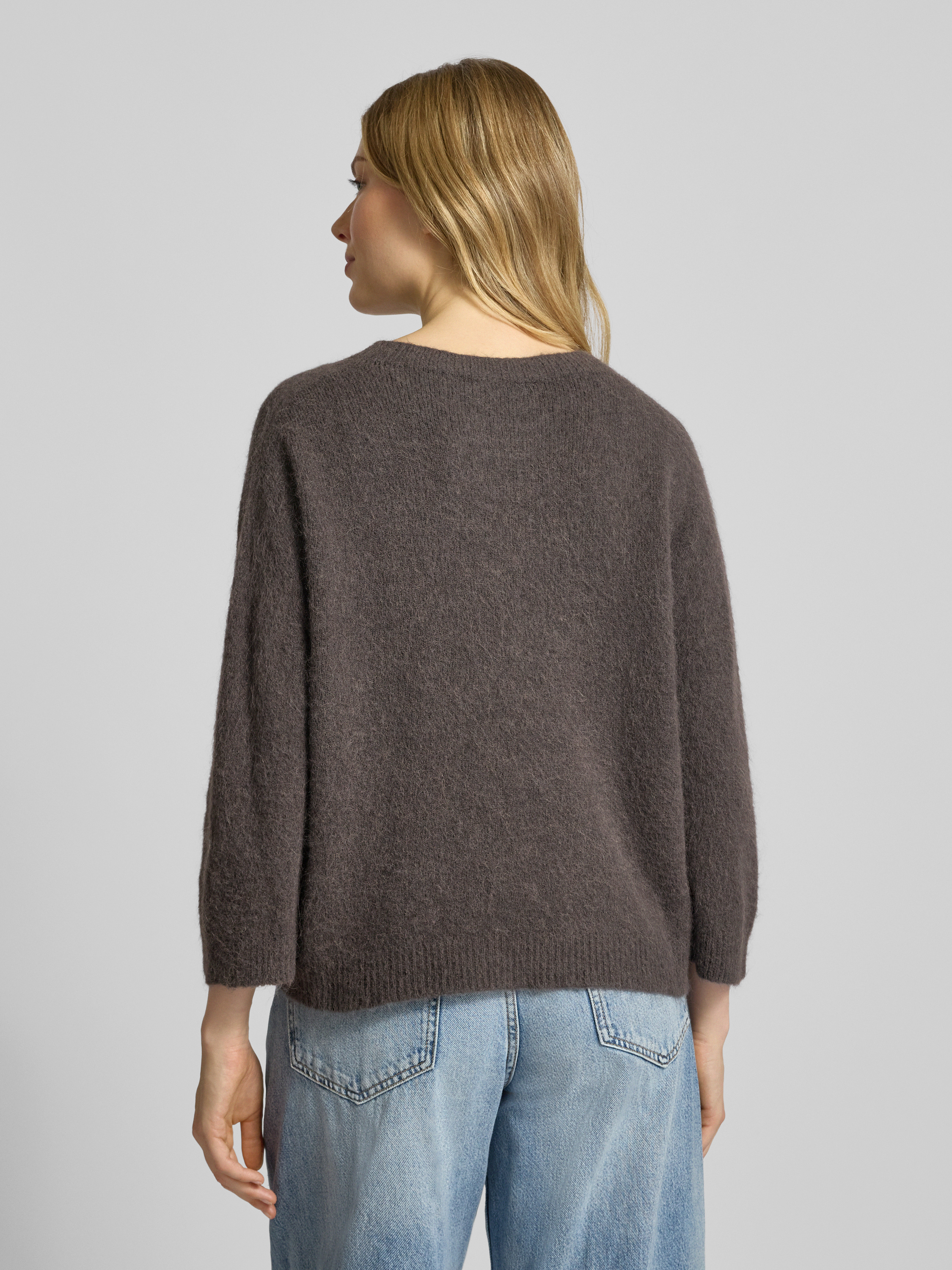 OuiRelaxed fit pullover met alpaca in gebreide look in donkerbruin