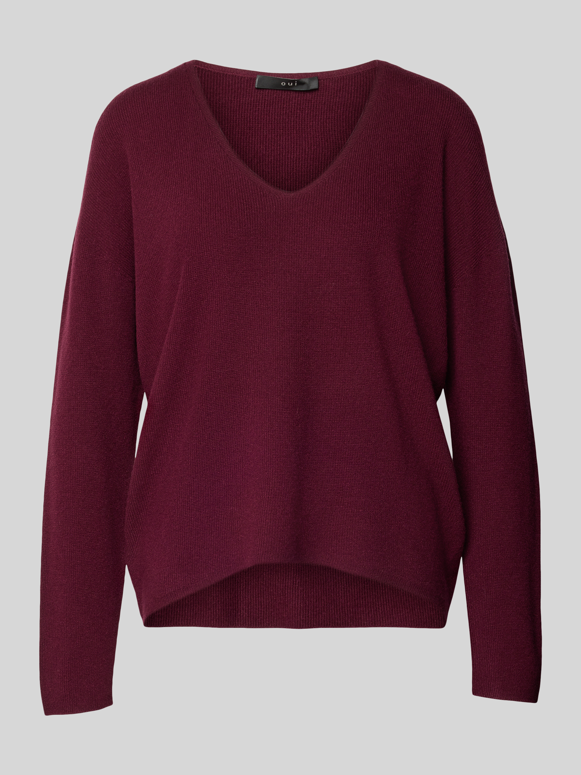 OuiRelaxed fit pullover van viscosemix in gebreide look in bordeaux