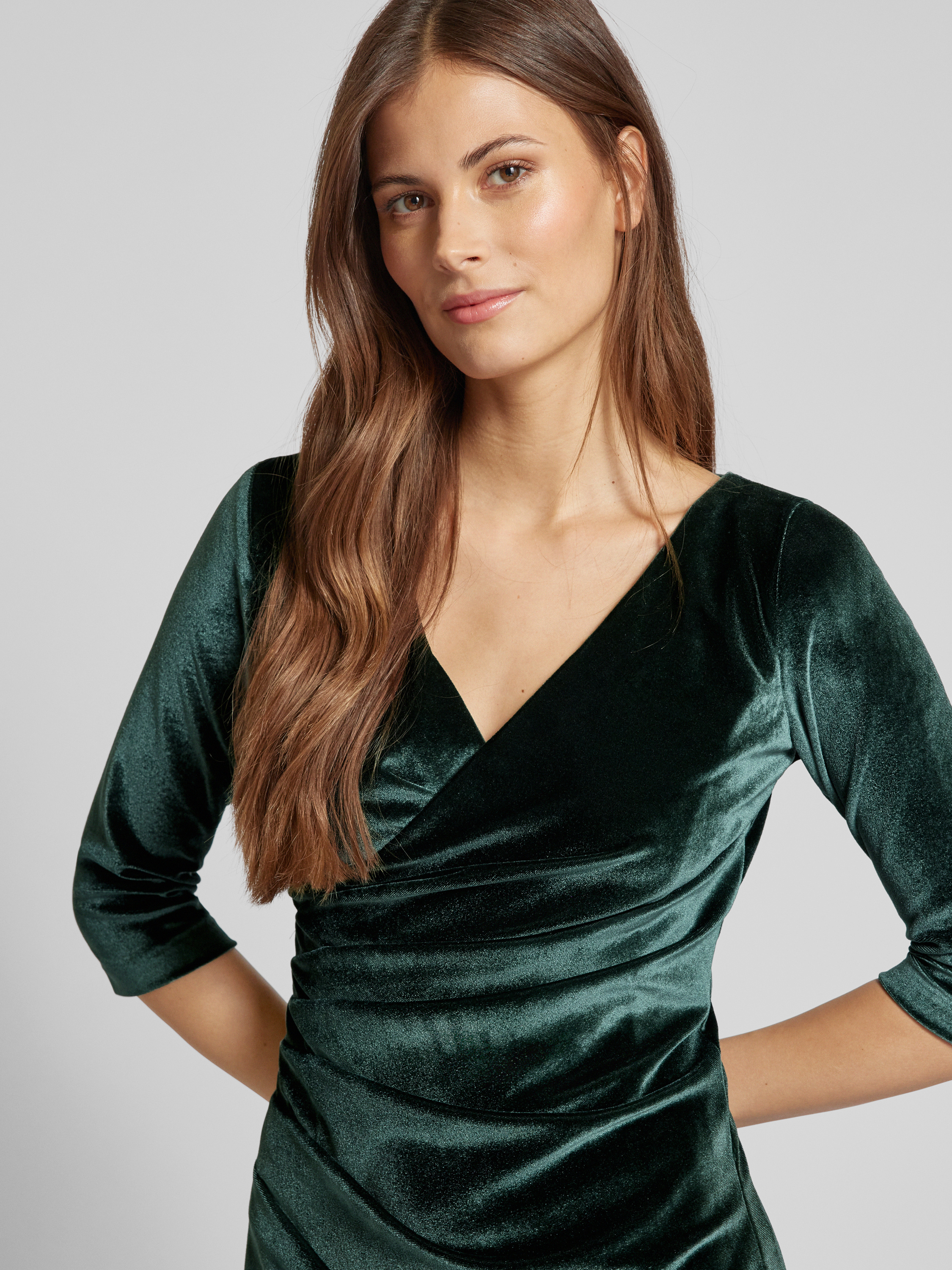 ParadiKnielange cocktailjurk in wikkellook in donkergroen