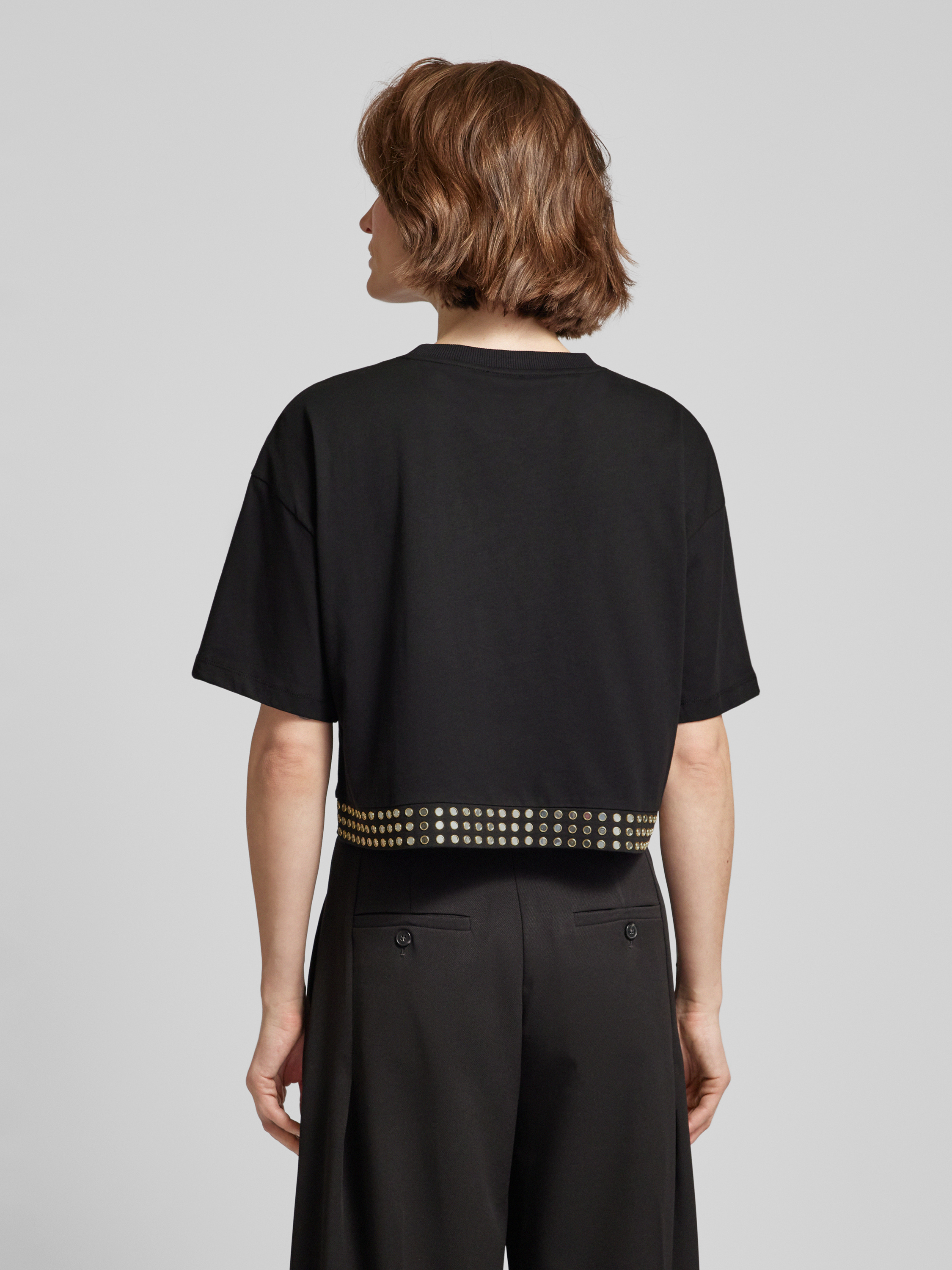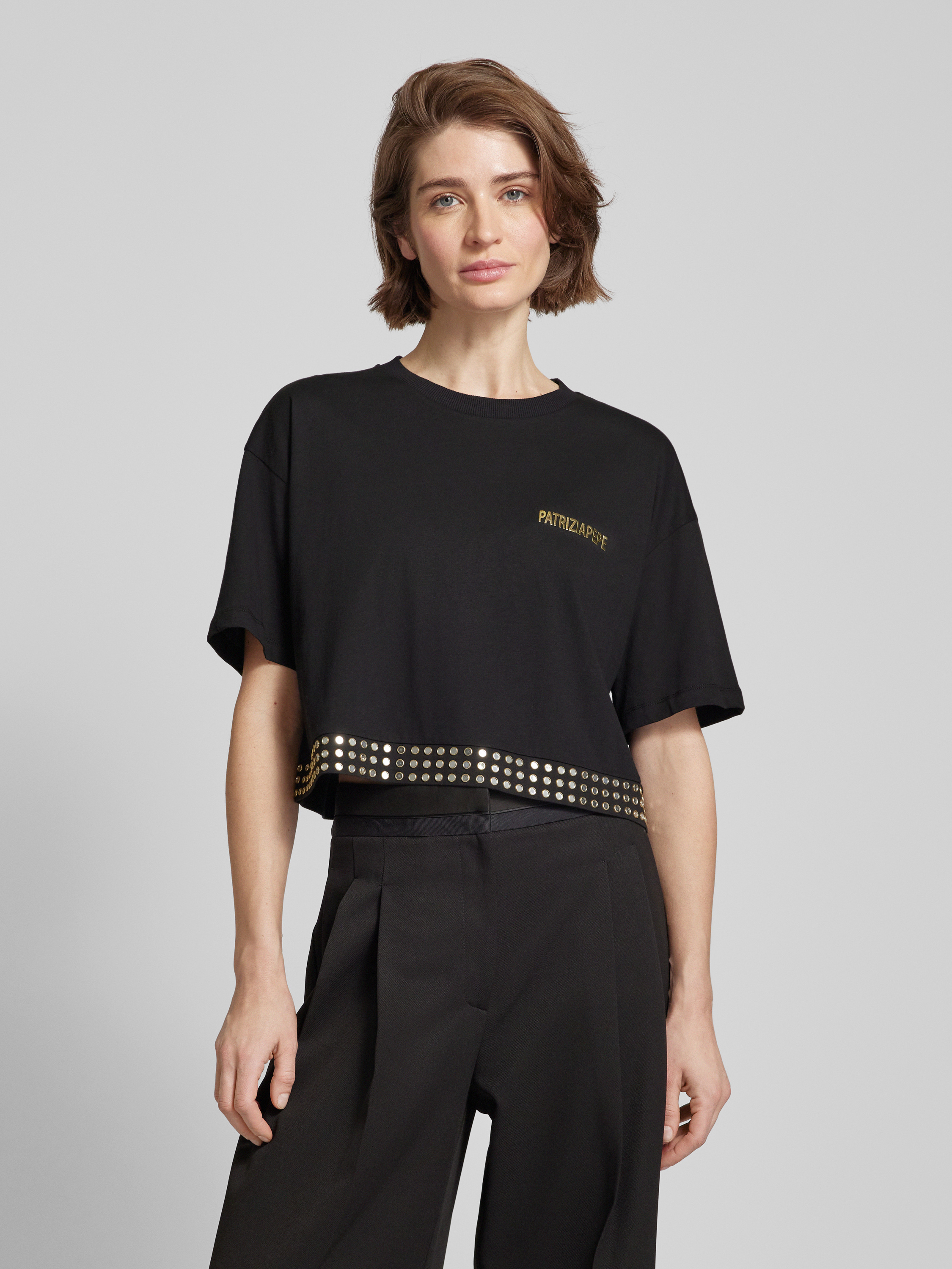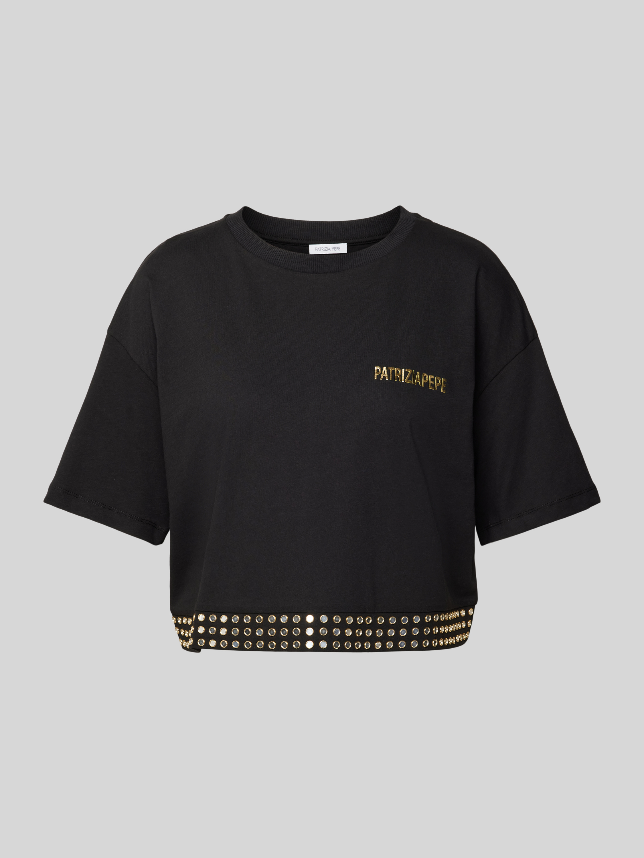 Kort T-shirt met labelprint en studs in zwart