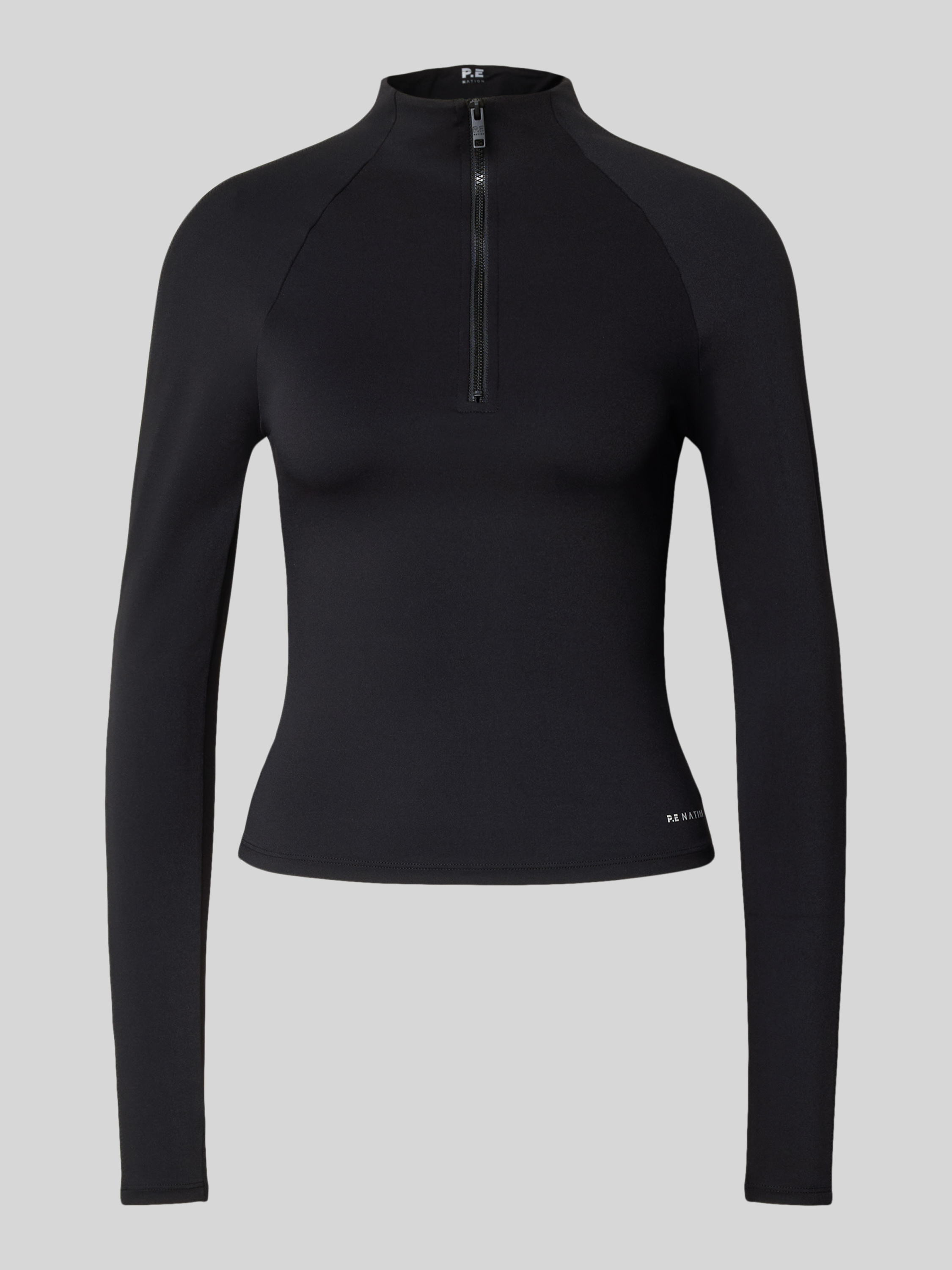 Shirt met lange mouwen, opstaande kraag en ritssluiting, model 'NIGHTFALL' in zwart