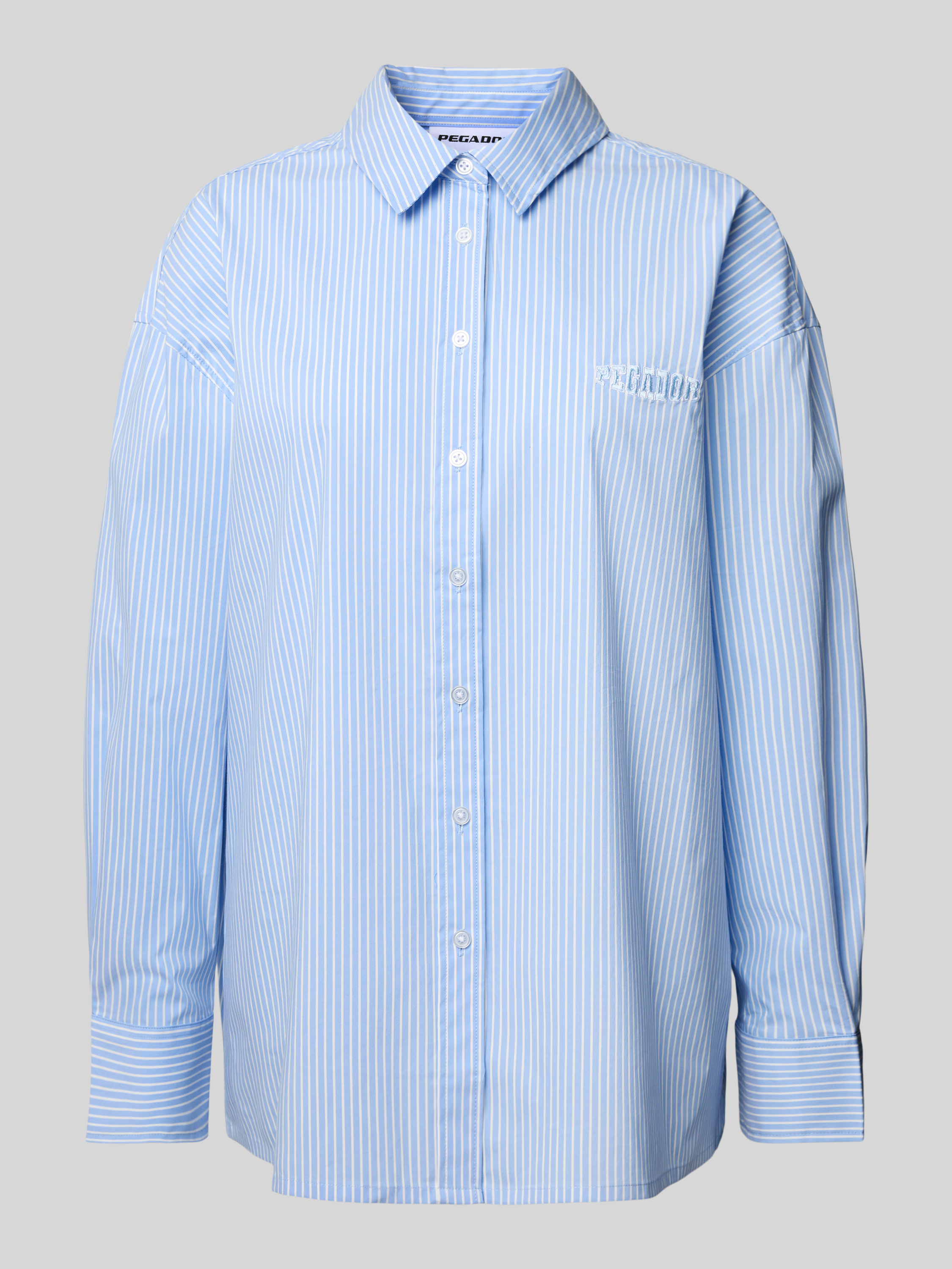 Oversized blouse met labelstitching, model 'EVA' in lichtblauw