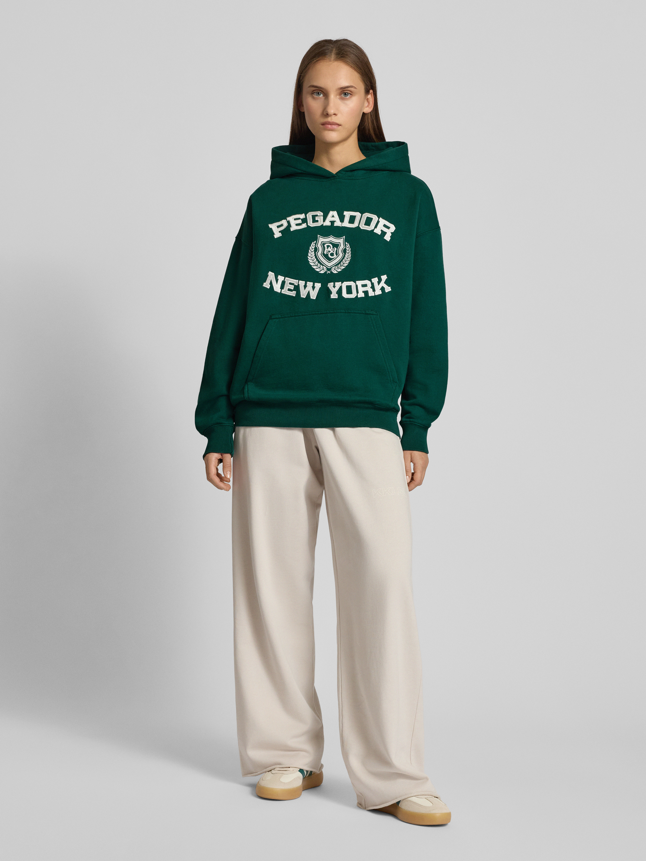Oversized hoodie met logostitching, model 'Frieda' in donkergroen