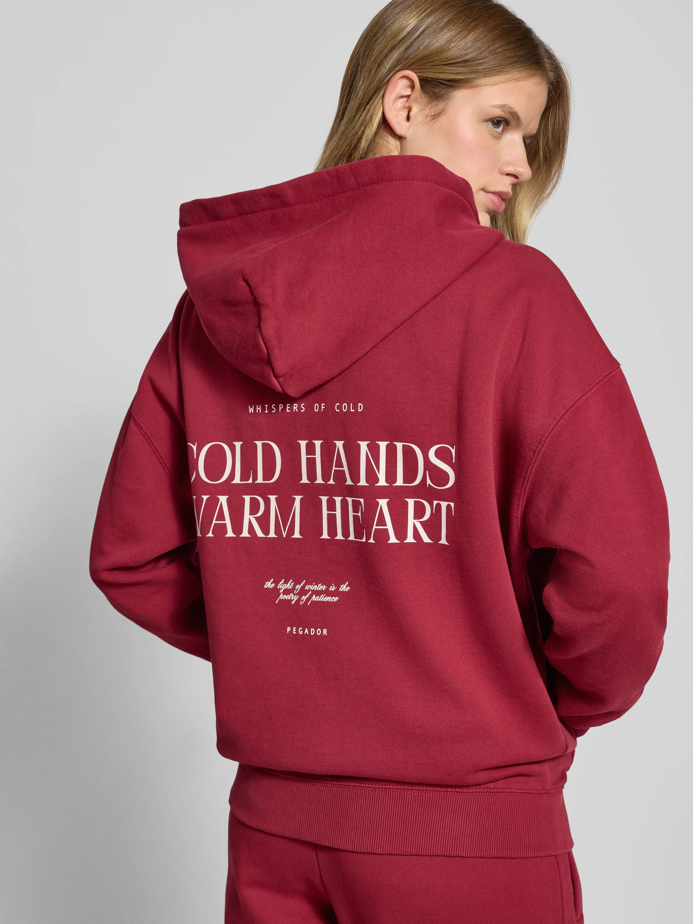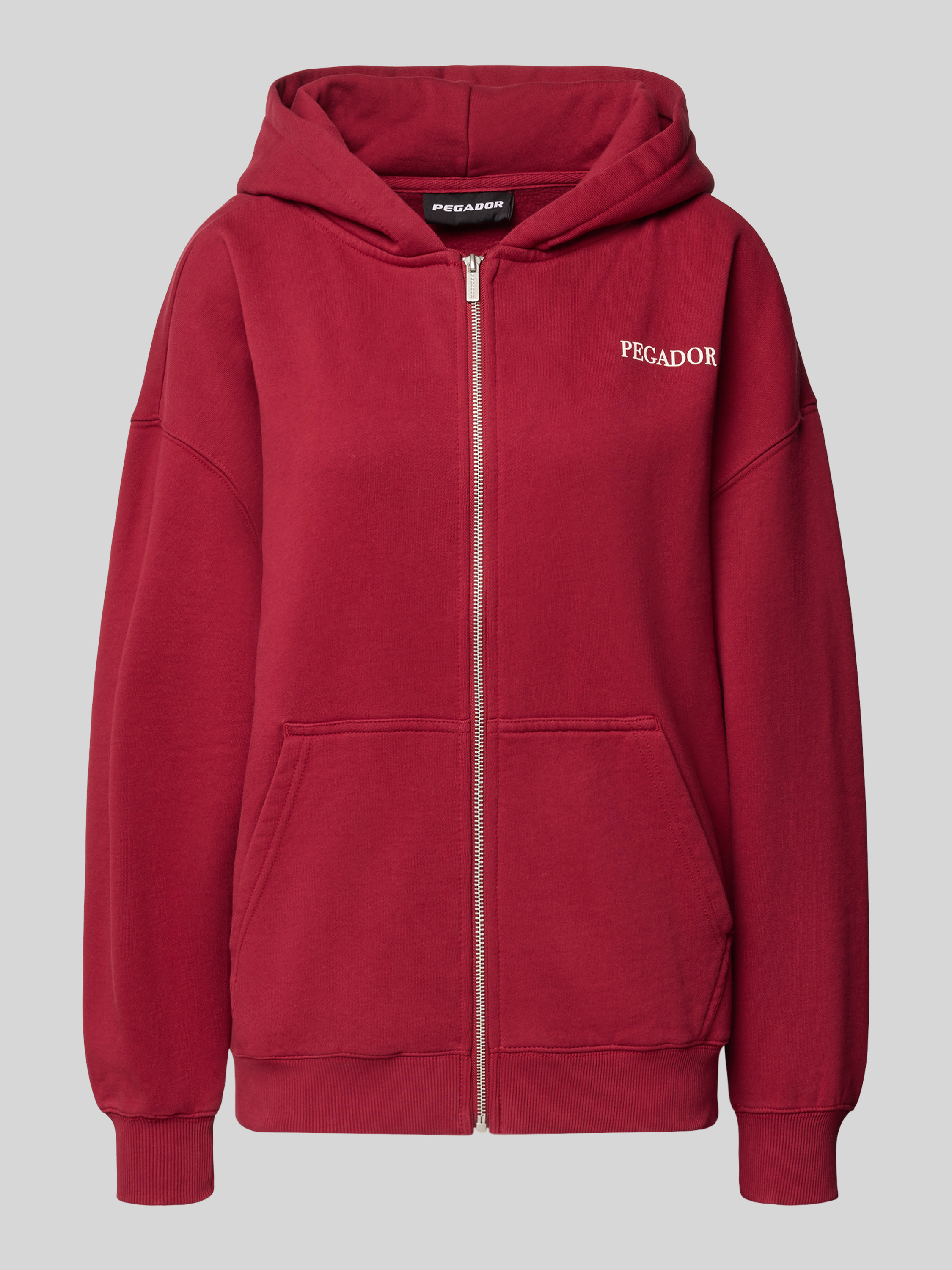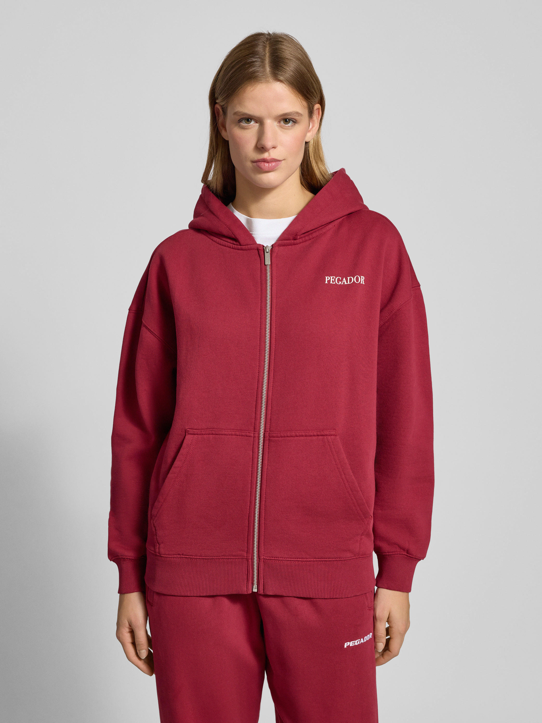 Oversized sweatjack met capuchon, model 'LANCY' in bordeaux