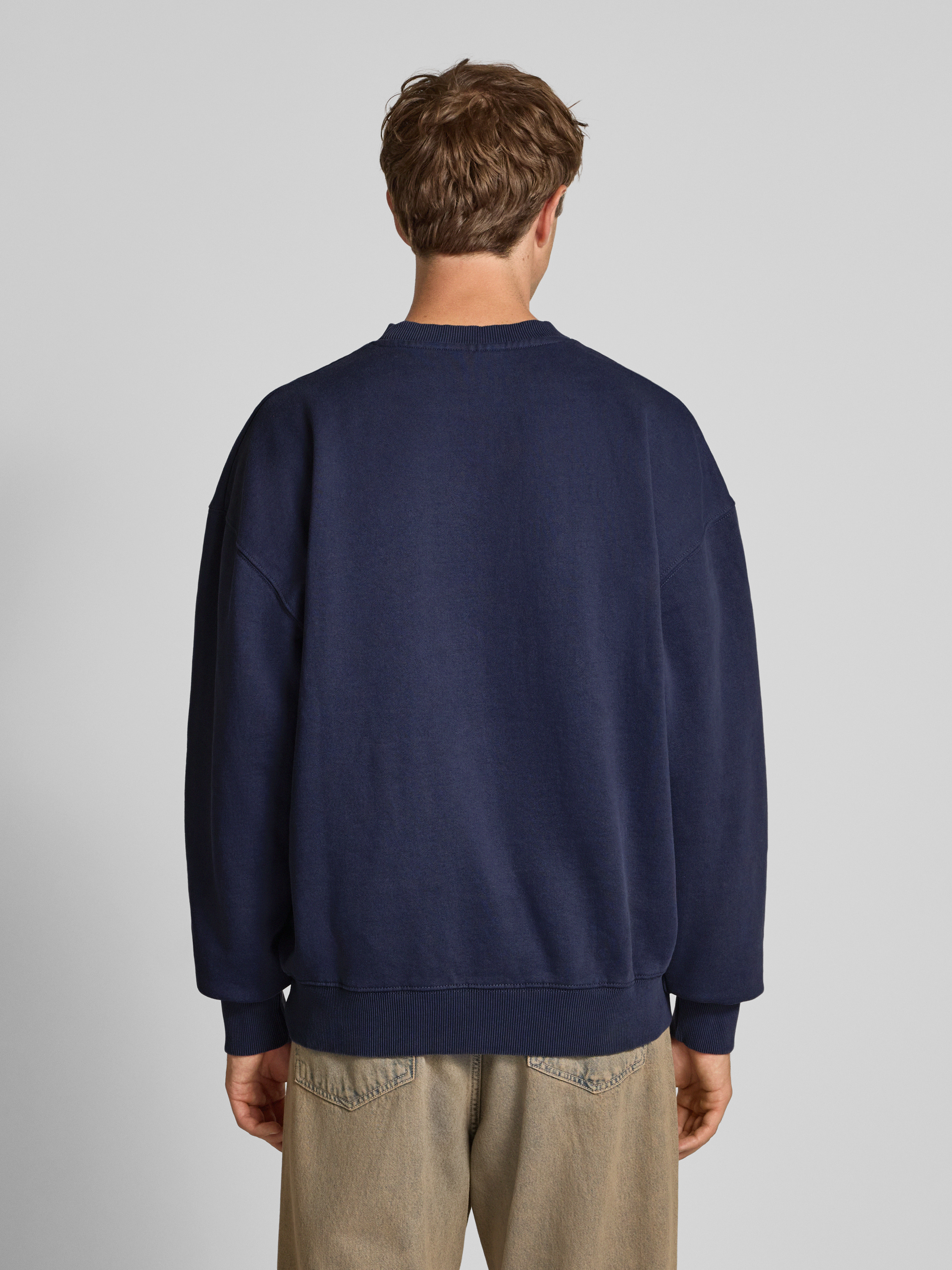 Oversized sweatshirt met logostitching en ronde hals in marineblauw