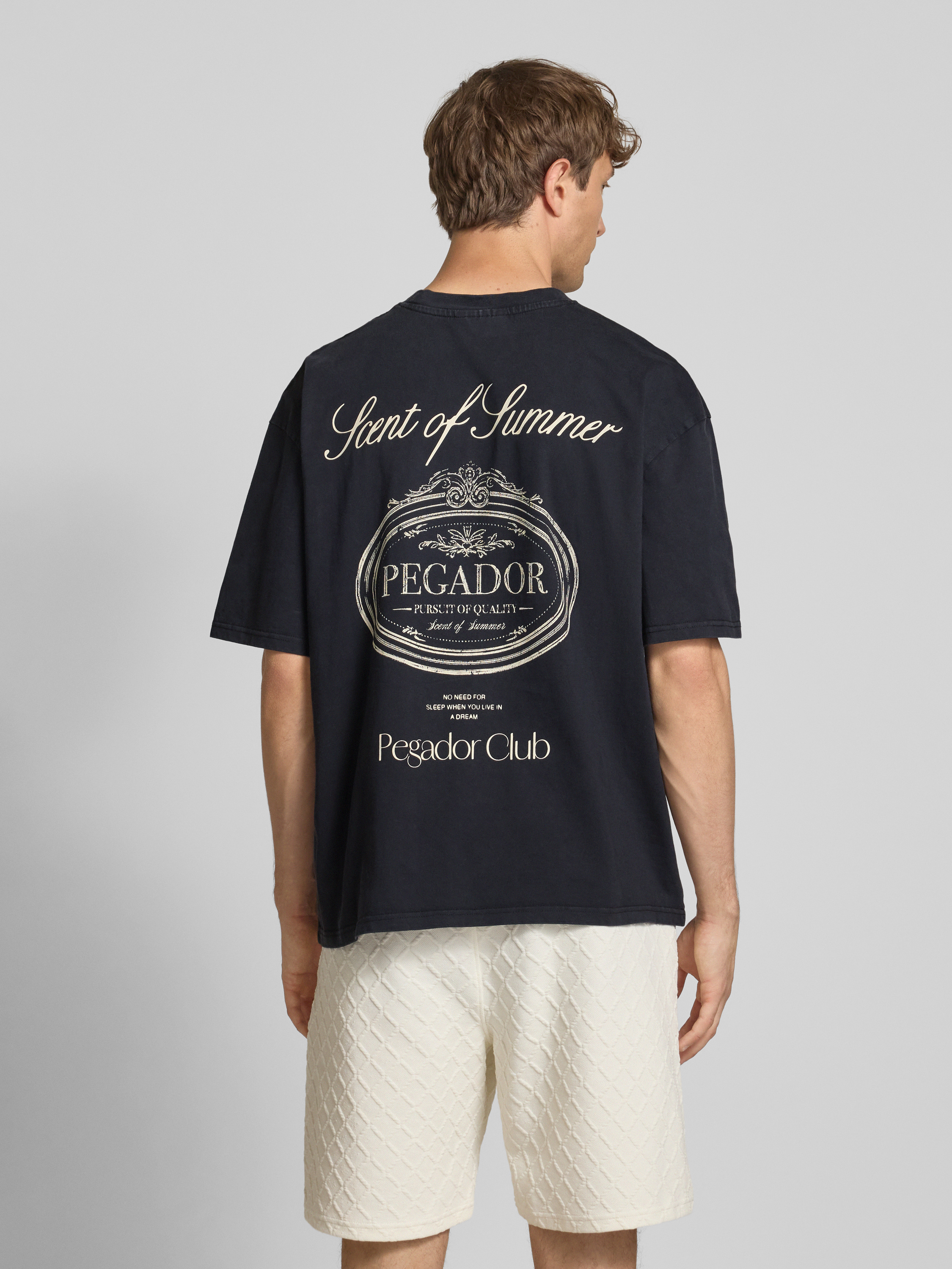 Oversized T-shirt met label- en statementprint, model 'Ramon' in zwart