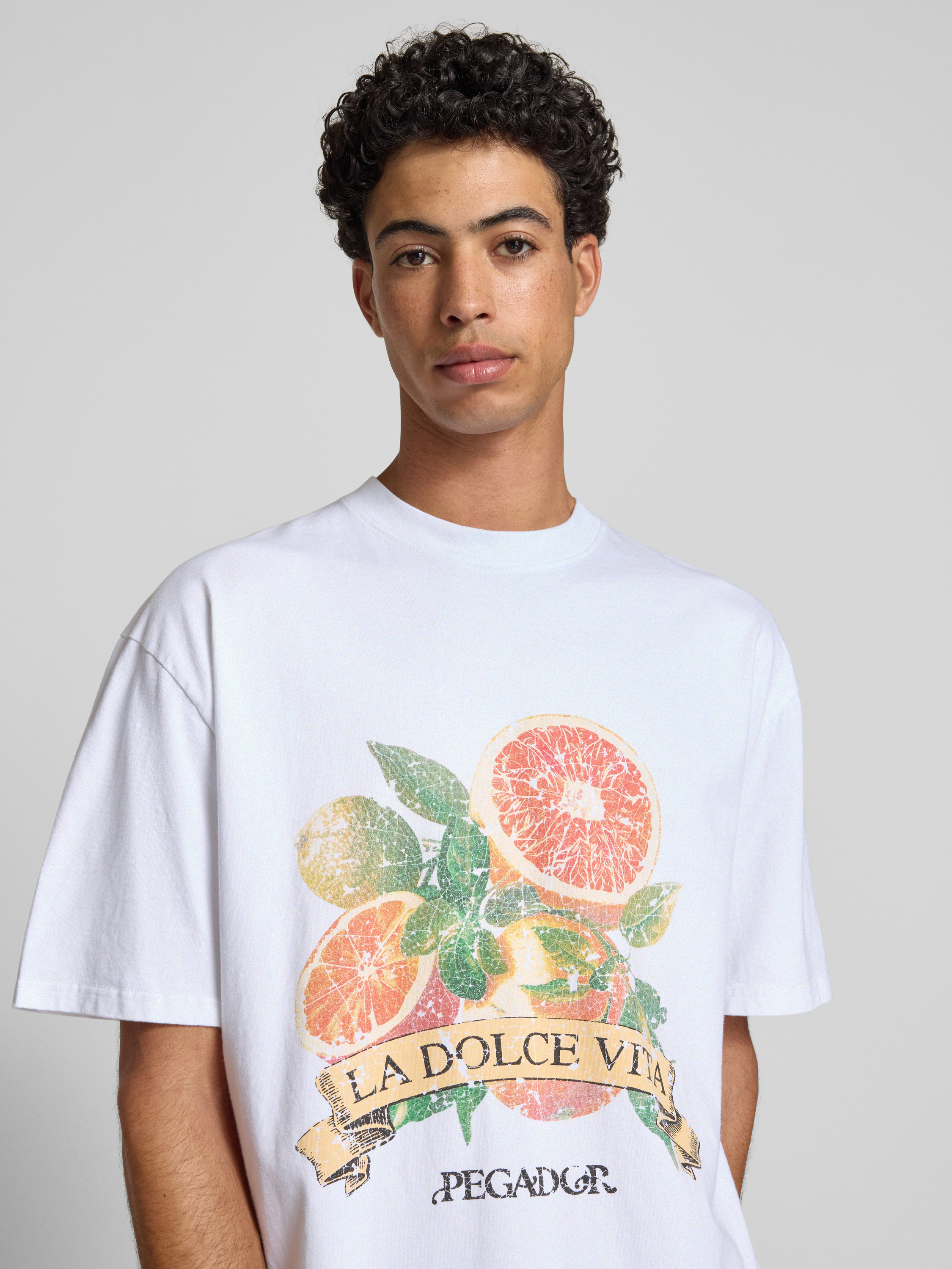 Oversized T-shirt met labelprint, model 'HULE' in wit