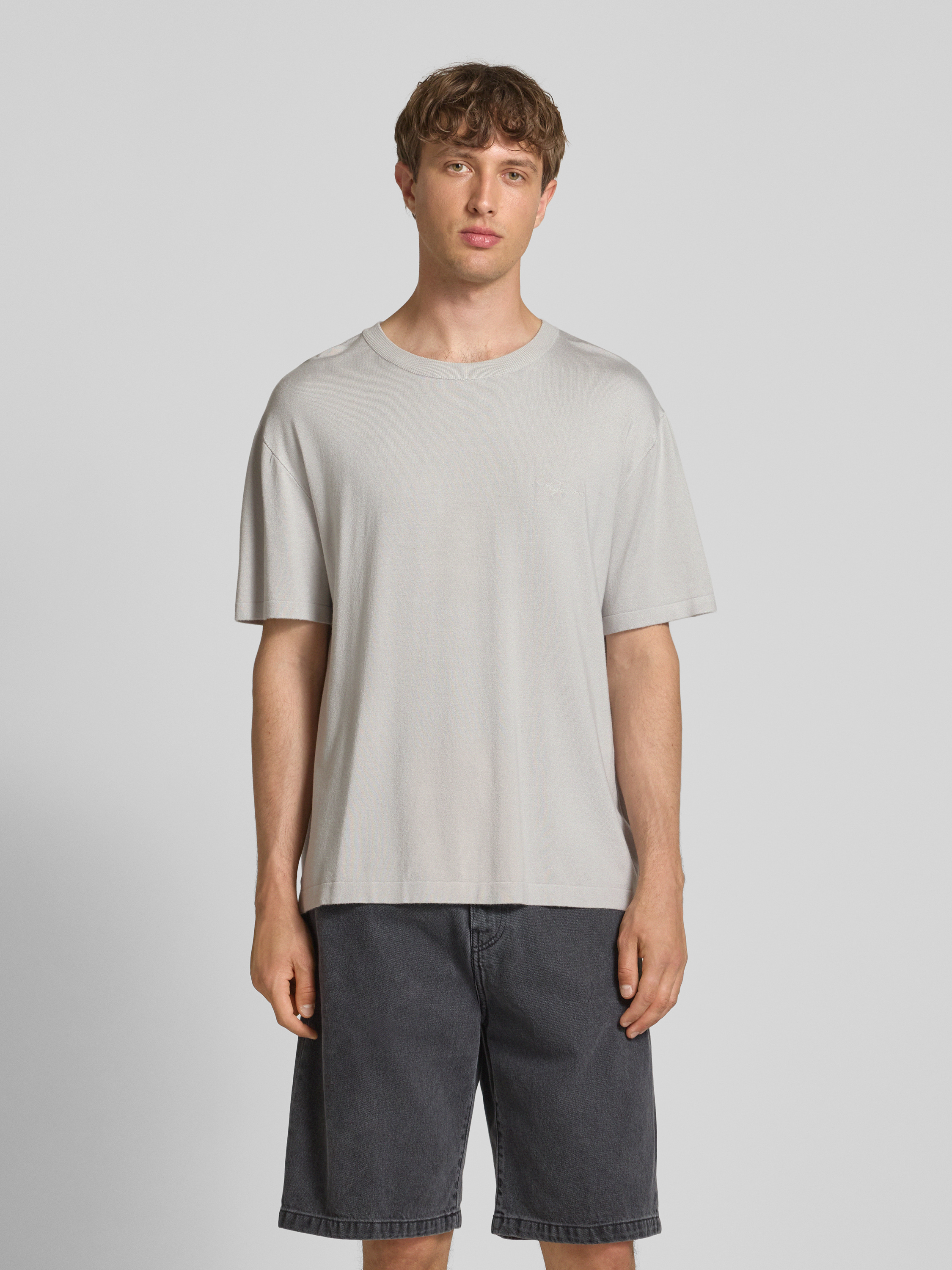 Oversized T-shirt met labelstitching, model 'Casan' in lichtgrijs