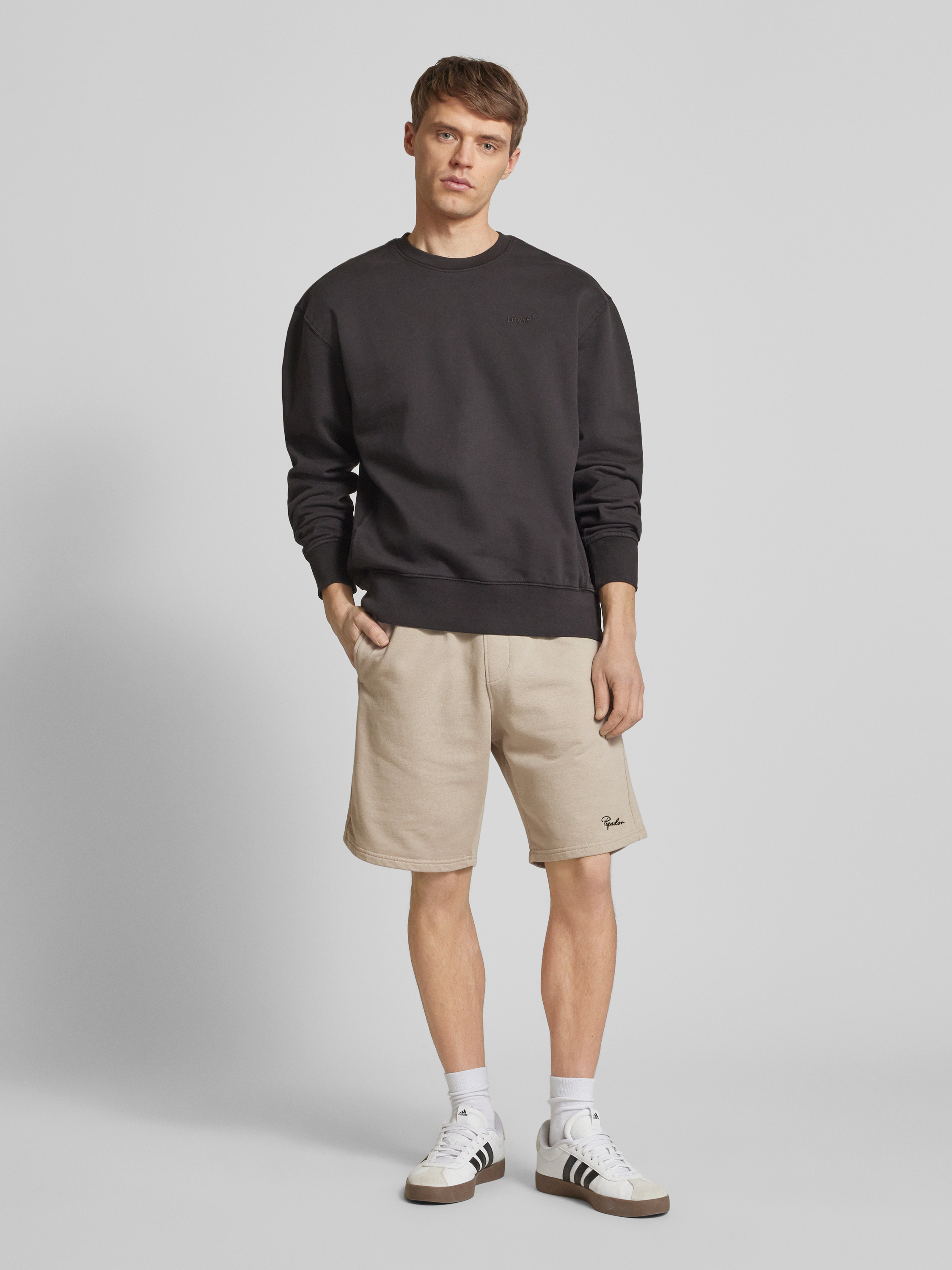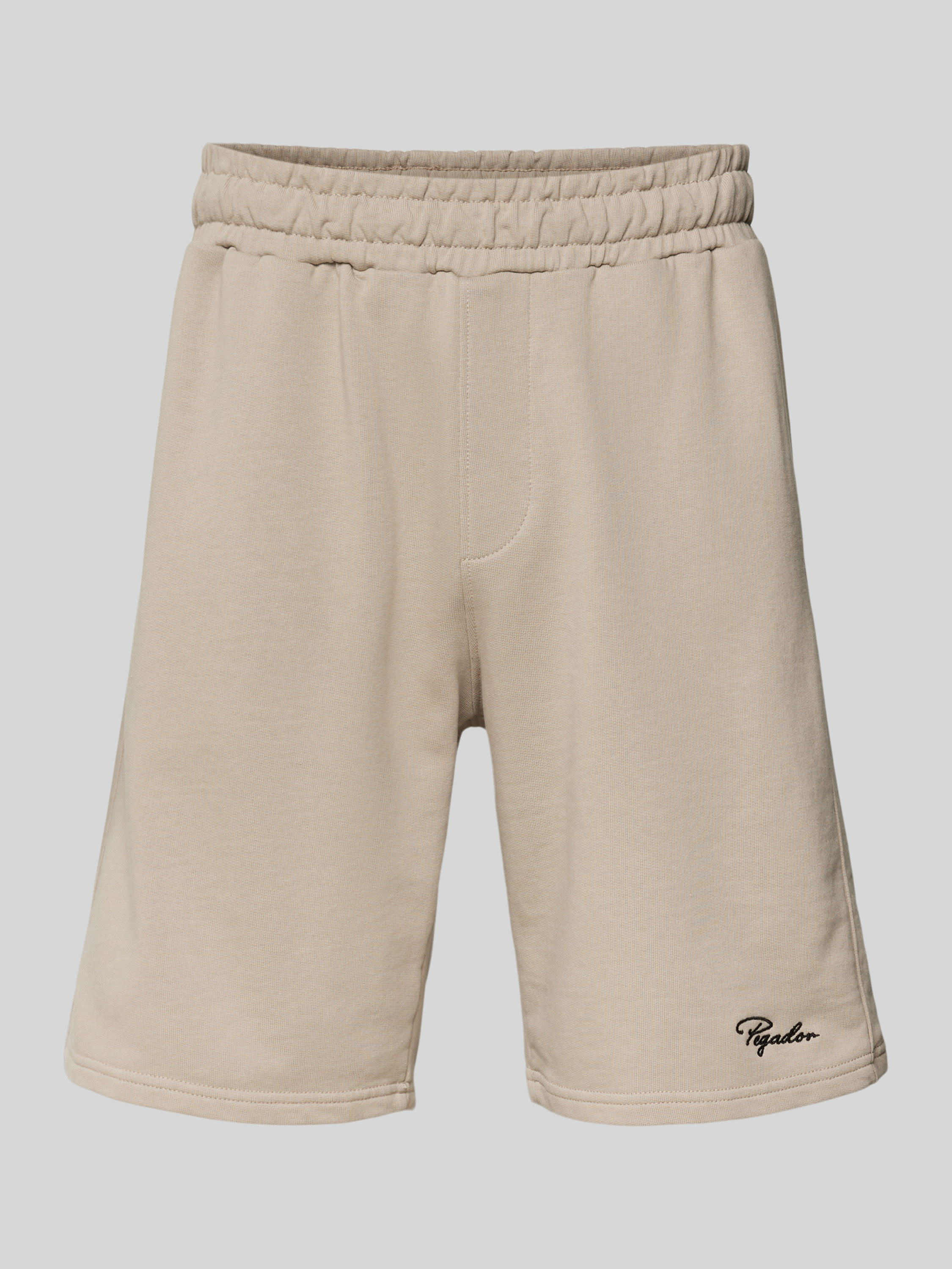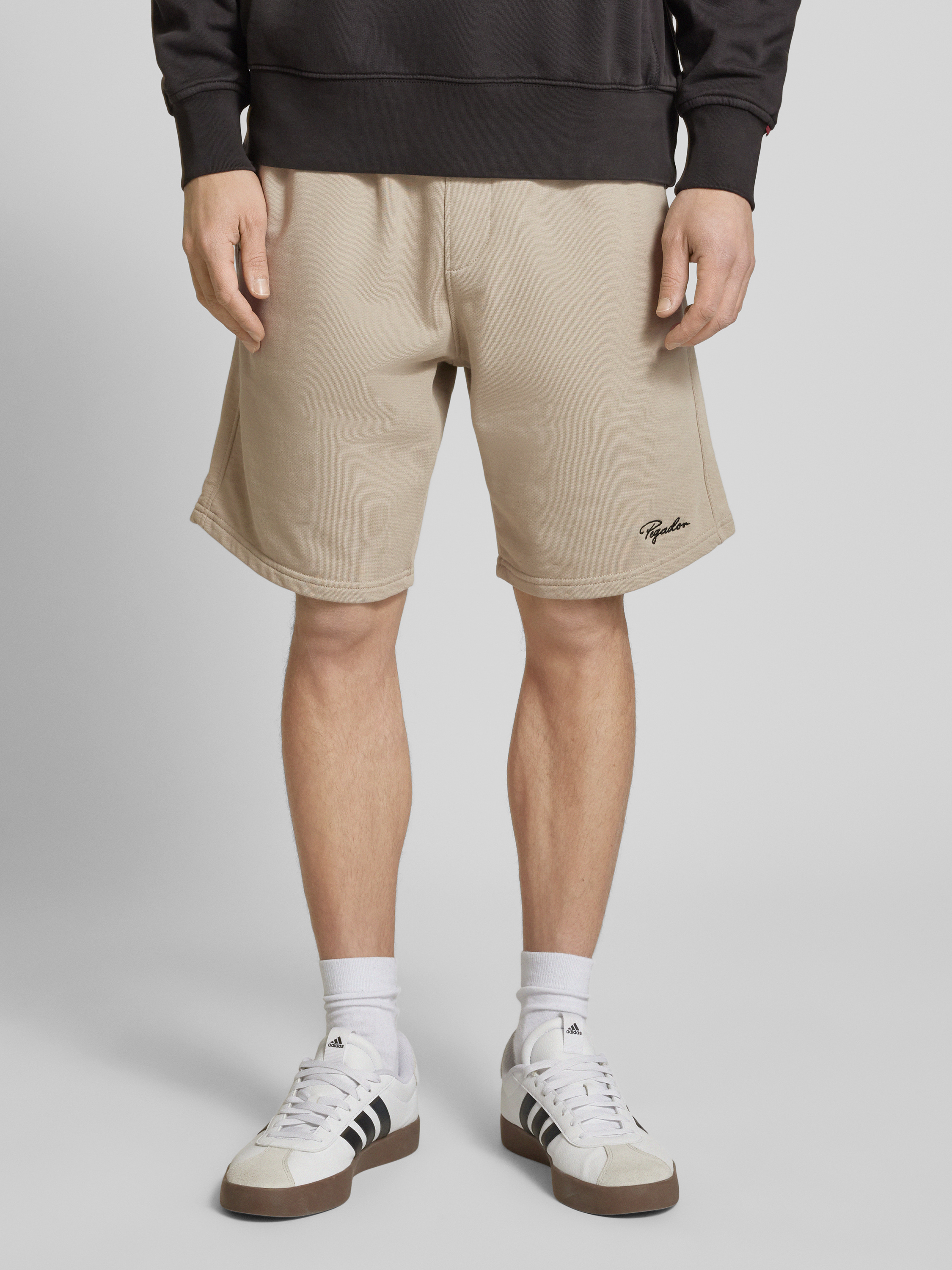 Regular fit sweatshorts met labelstitching, model 'TERRY' in taupe