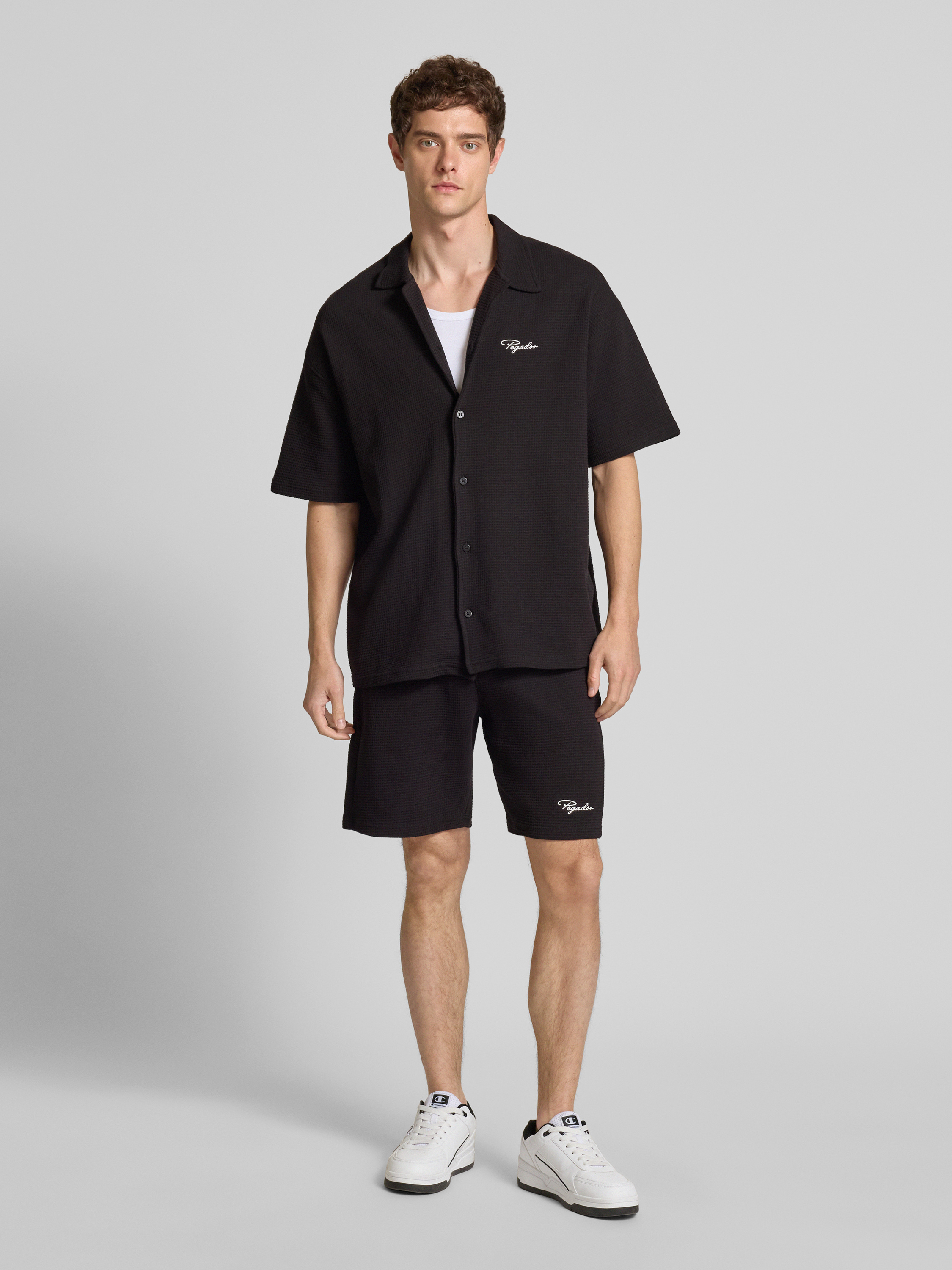 Regular fit sweatshorts met structuurmotief, model 'Signar' in zwart