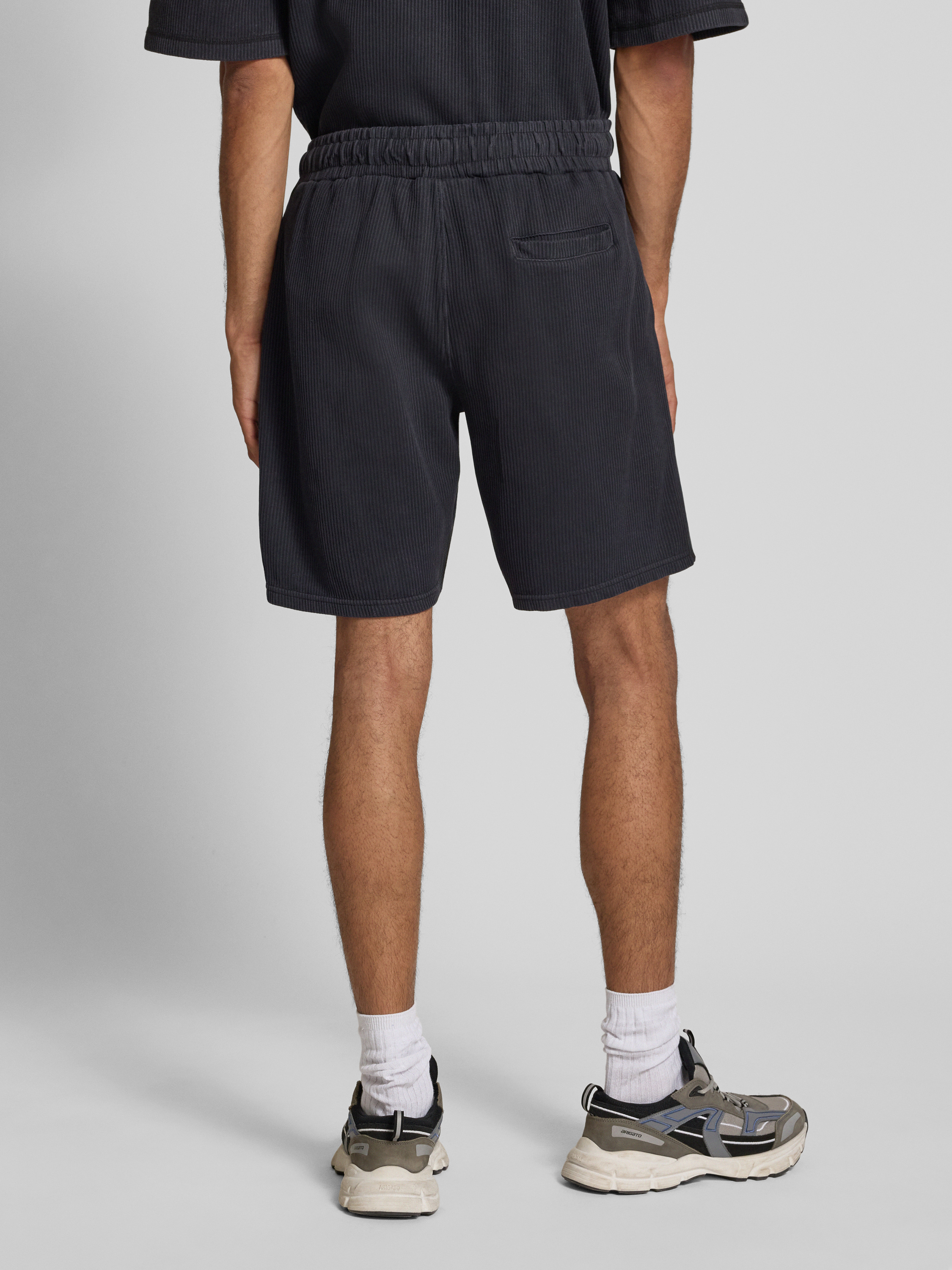 Relaxed fit korte broek in riblook, model 'SIGNAR' in zwart