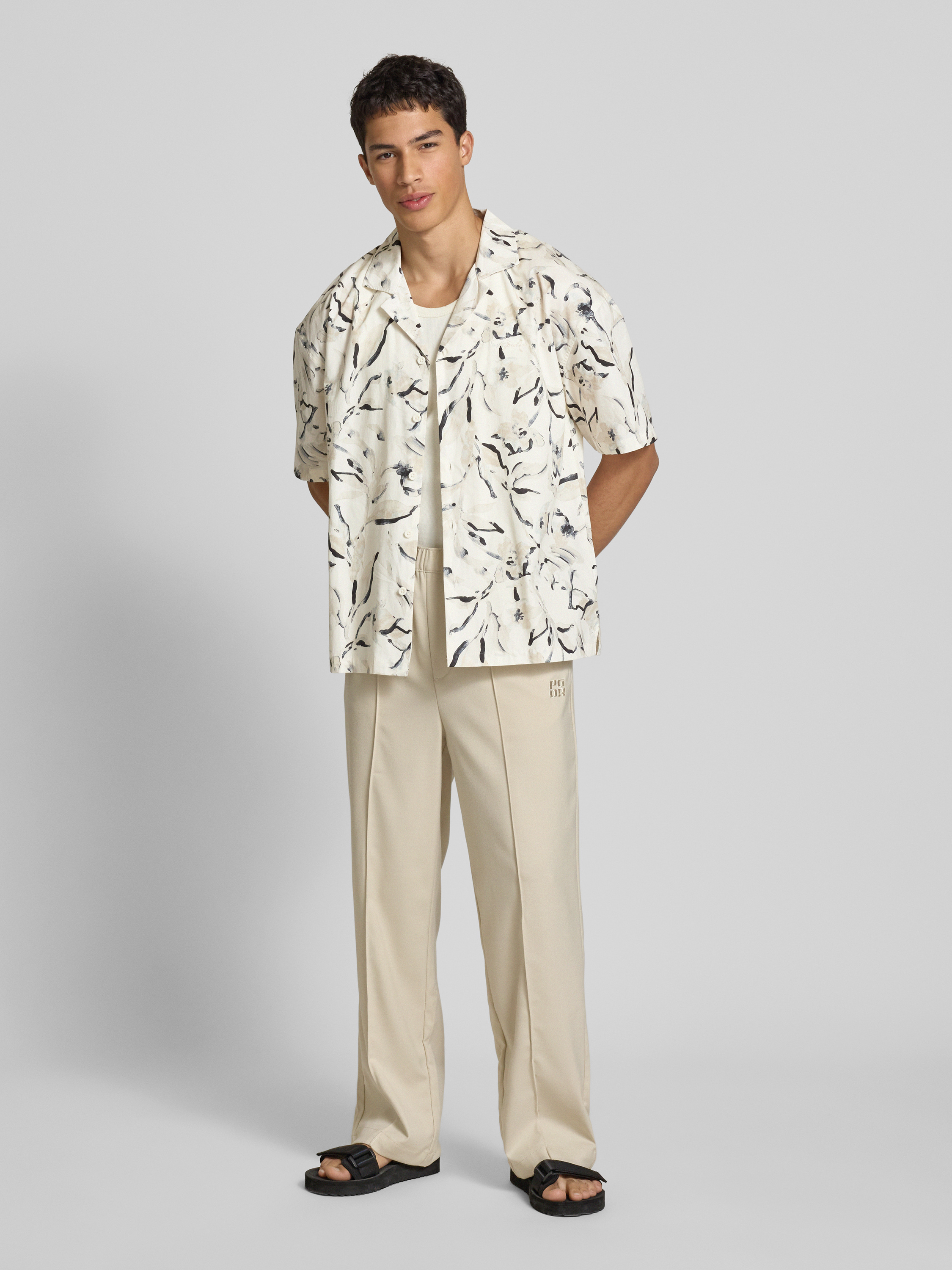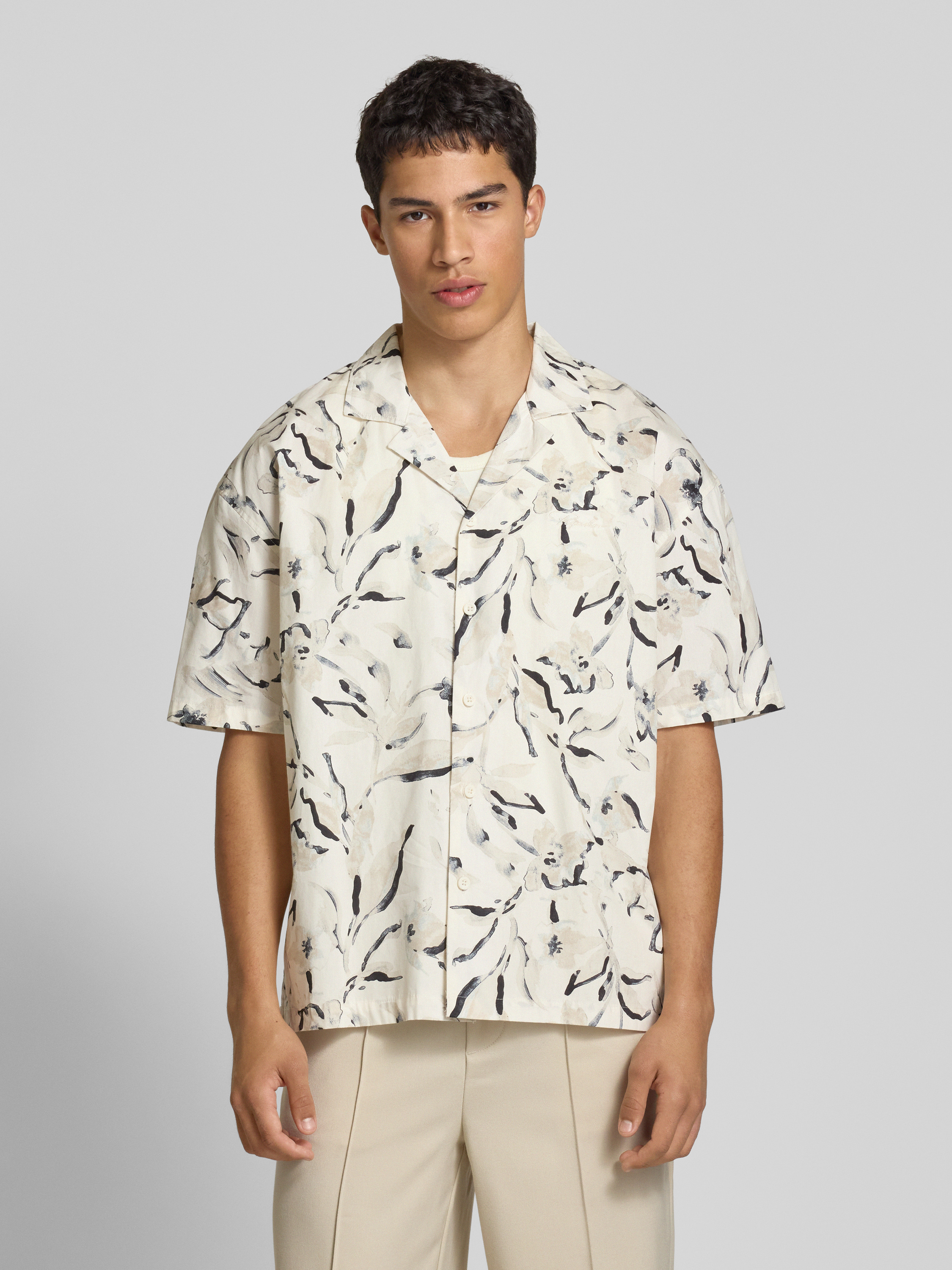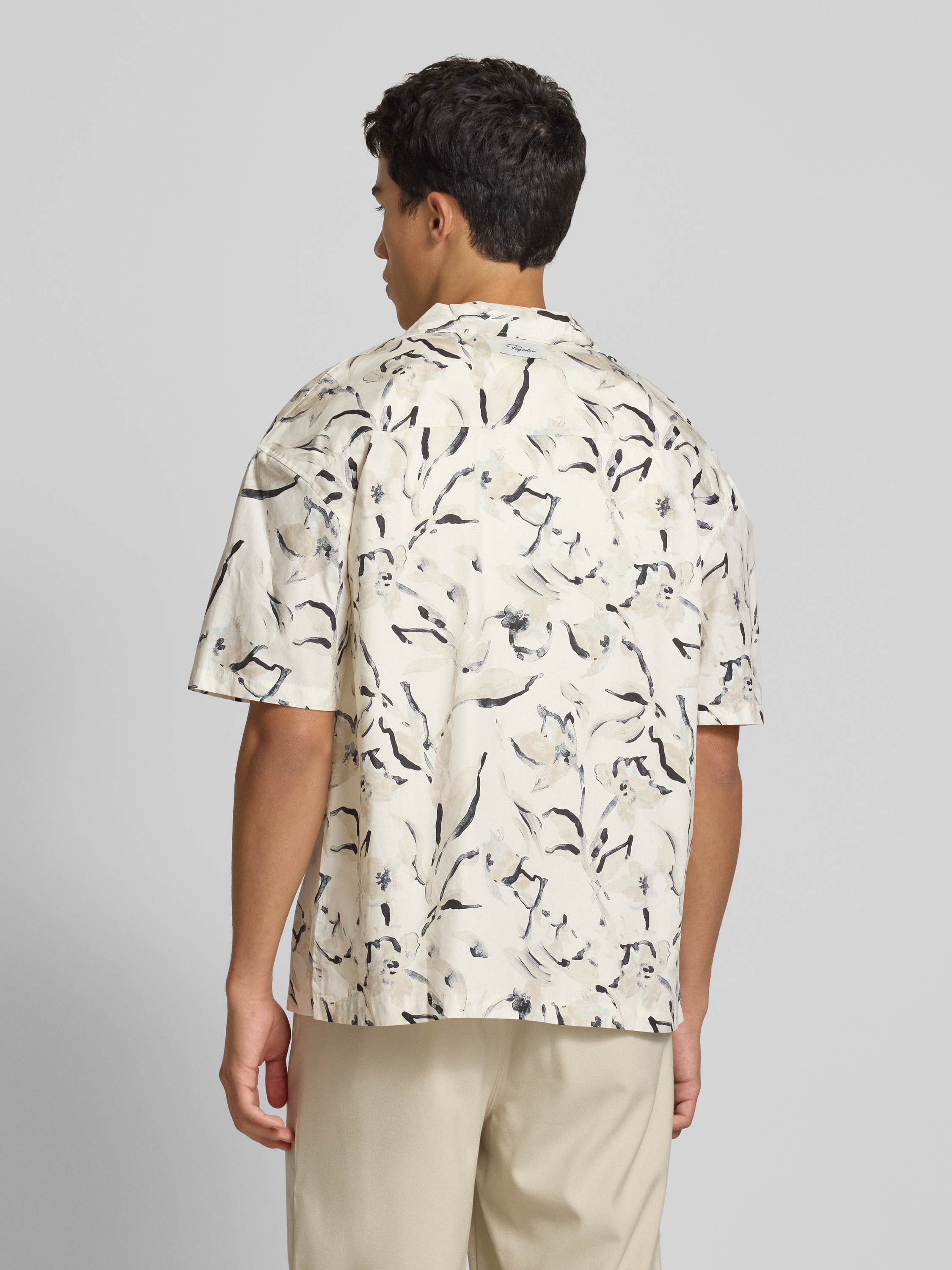Relaxed fit vrijetijdsoverhemd met labelstitching, model 'Novo' in ecru